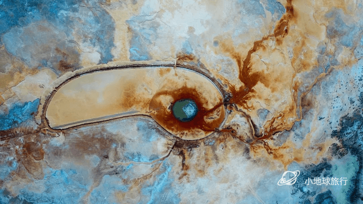 接着我们继续前往小地球挖掘的小众热泉。因为没有开发,所以呈现的是最最原始的状态,泉眼与喷涌而出的泉水因长期蒸发,泉水里的含硫物质在土地上沉淀,围绕着带状的边界,形成了红褐色的“天眼”。