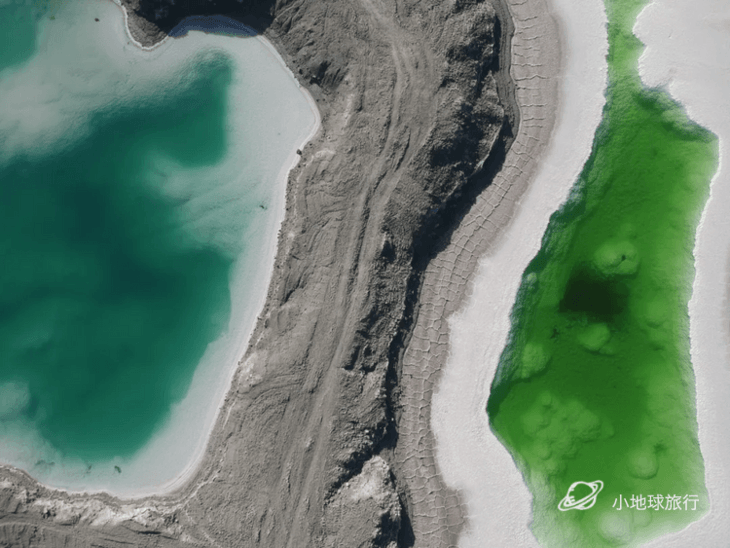 想必看过水上雅丹的你会赞叹大自然的鬼斧神工,那么接下来的景色会更加让你对大西北的美景流连忘返!【双色河】它的神奇之处在于一条公路把湖水分开成两种颜色不同的湖,一半是蓝色,一半是绿色。