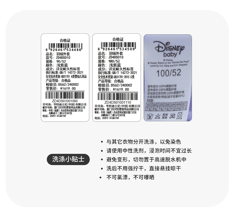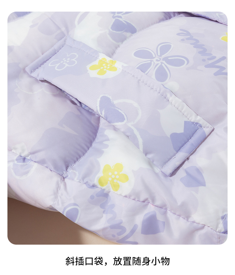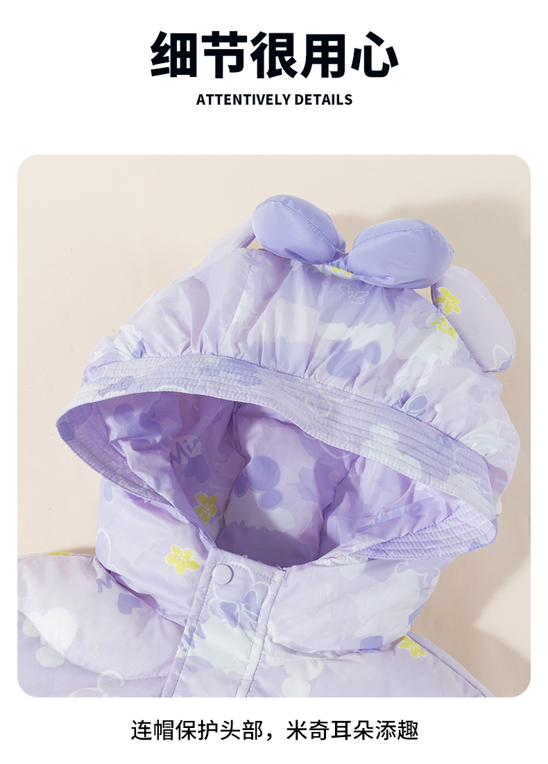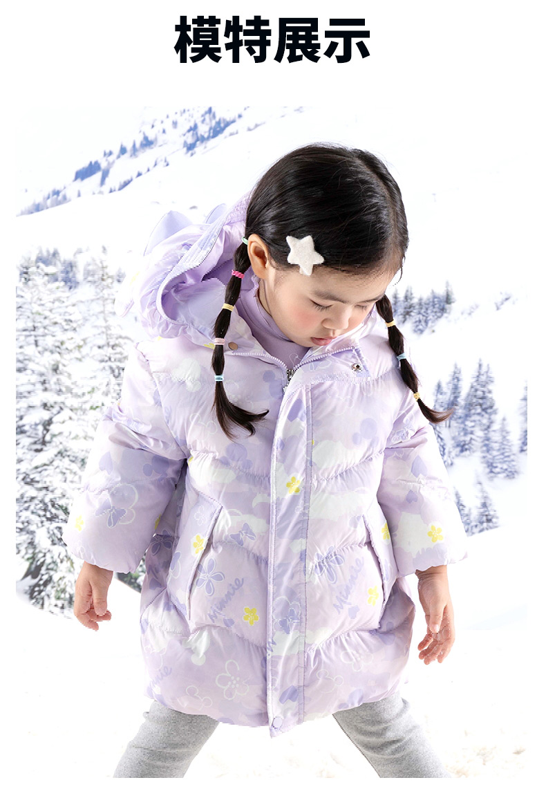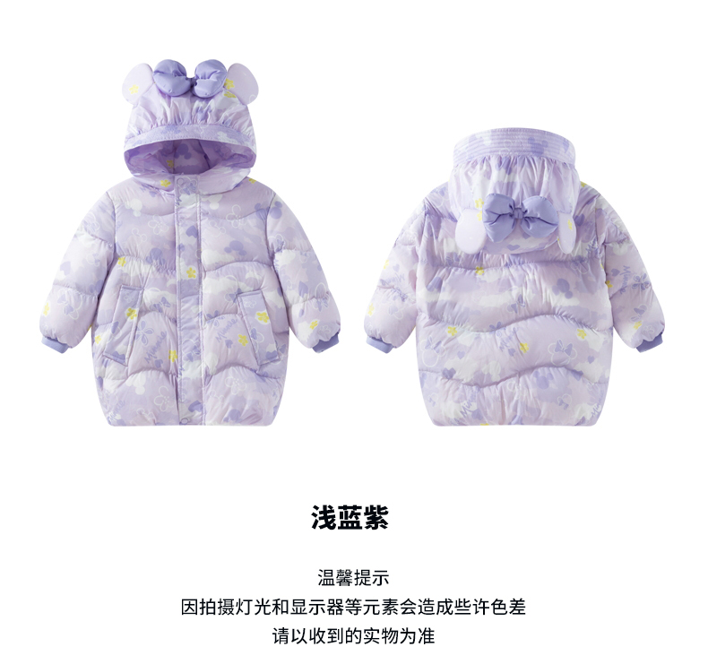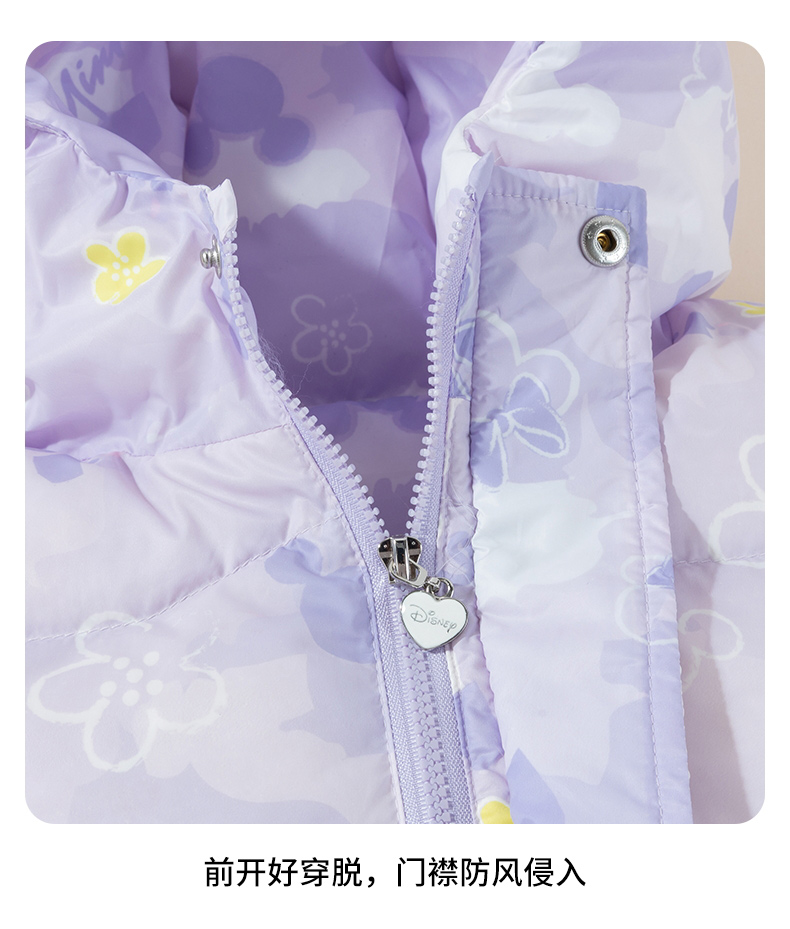 迪士尼【柔软蓬松】女童羽绒服24秋冬保暖儿童印花连帽防风保暖羽绒服ZD4DS010