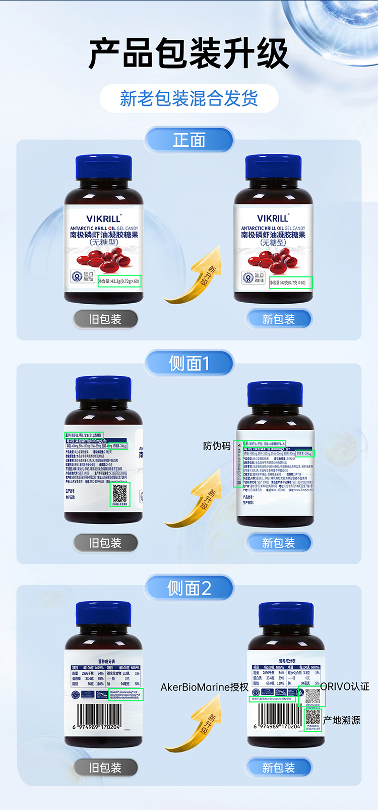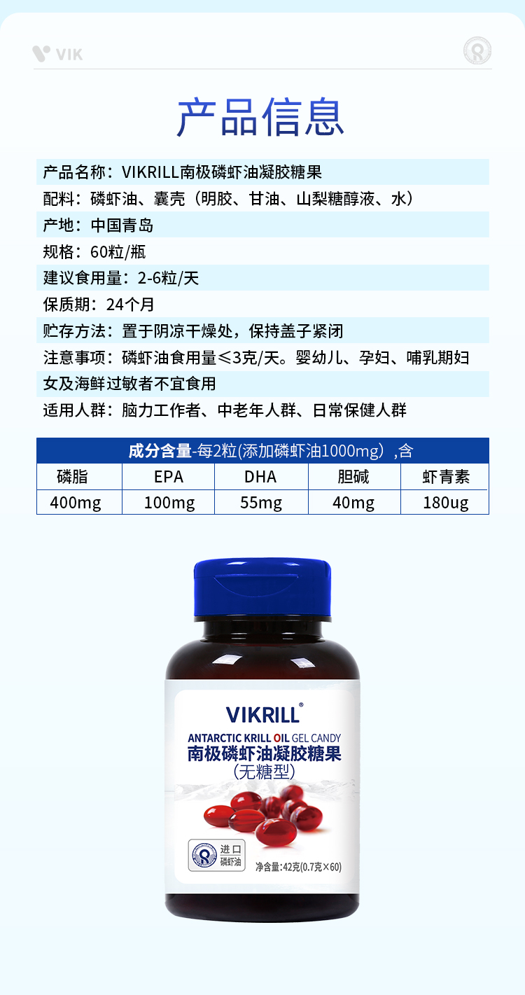 【进口原料】VIKRILL磷虾油凝胶糖果60粒国产版