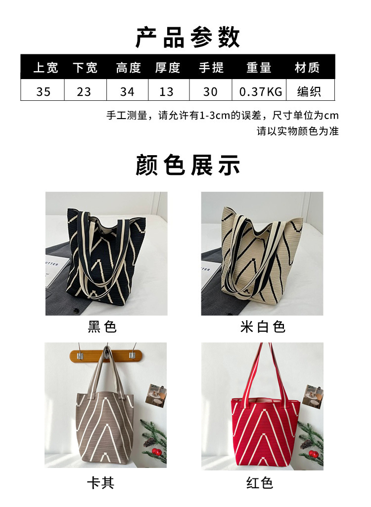 【品名】UYOKU 波浪纹针织单肩包 百搭大容量 手提通勤水桶女包 4色可选 【规格】黑色、米色、卡其、红色 【产地】国内 【材质】聚酯纤维100% 【发货包装】独立包装 【发货地】浙江 【发货快递】中通 【不发货区域】新疆、西藏、港澳台 【发货时效】48-72小时,周末节假日顺延 |