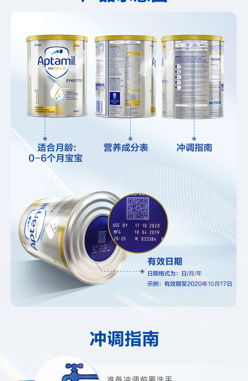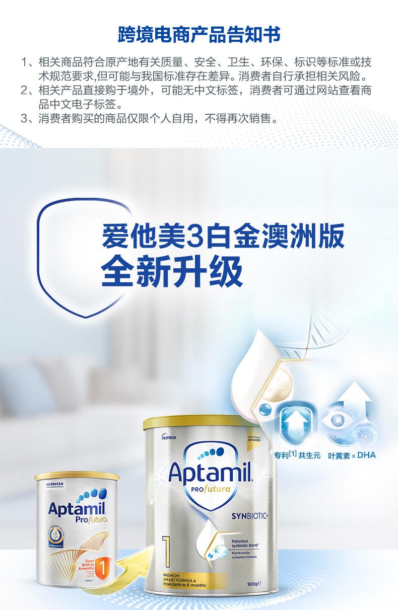 【保税仓】澳洲爱他美 Aptmil 白金1段 900g 新包装