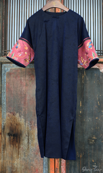 盛唐牡丹| 真丝罗底香云纱手绣斜襟长袍-黑色