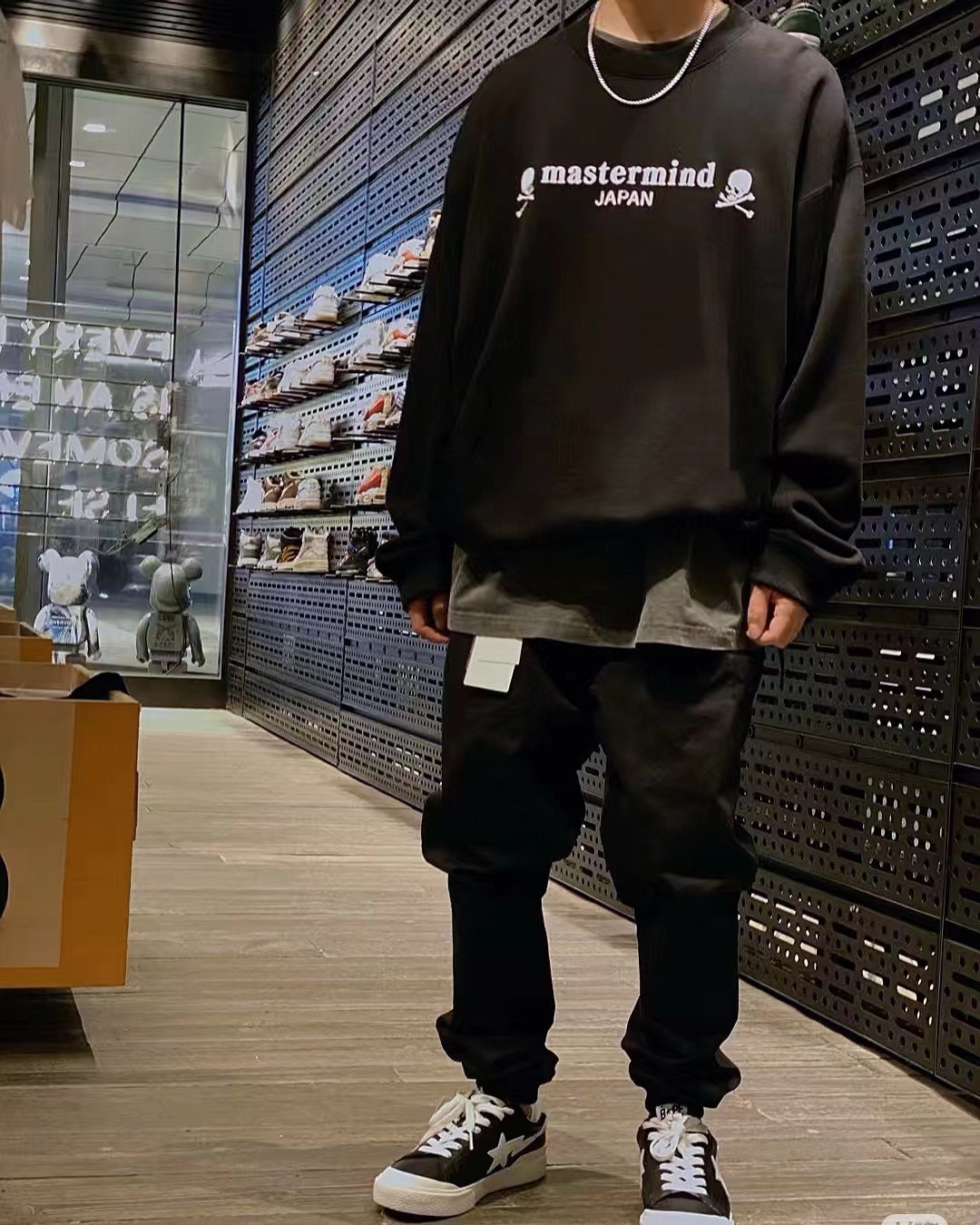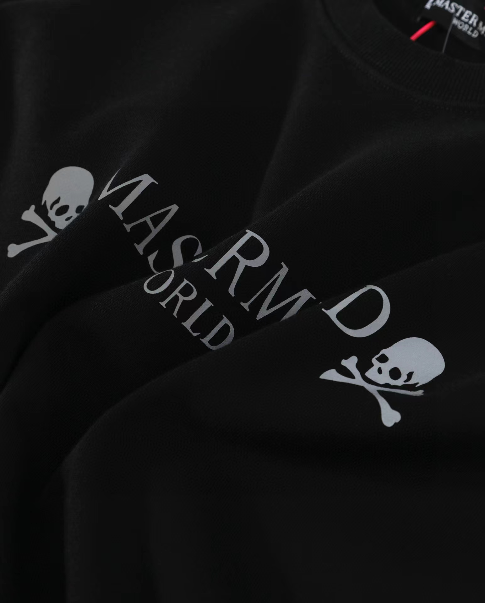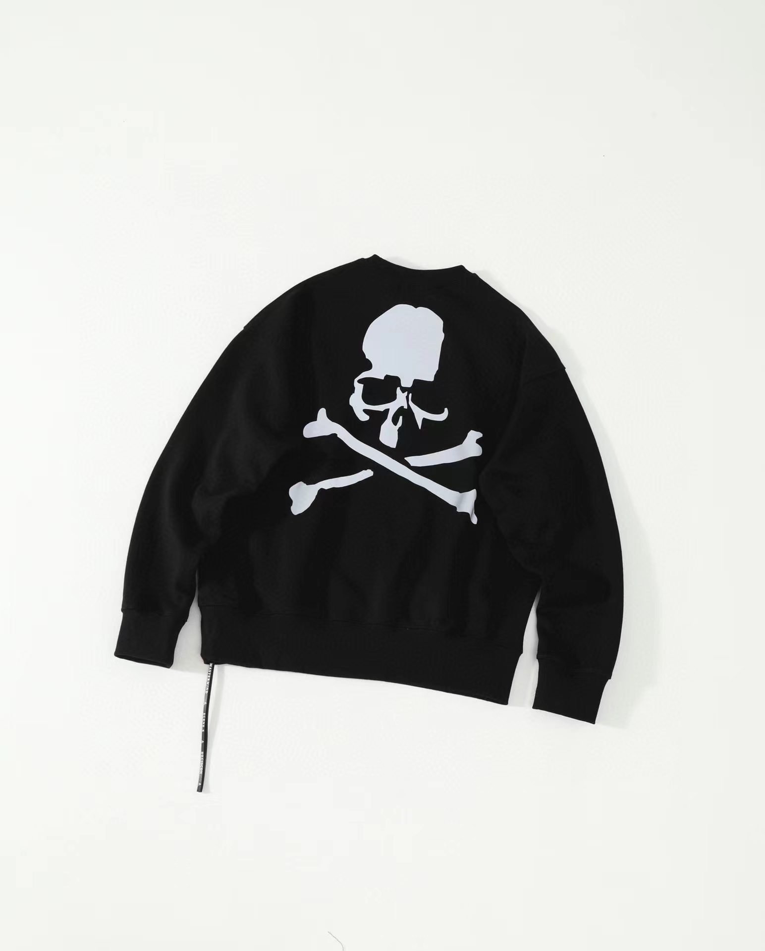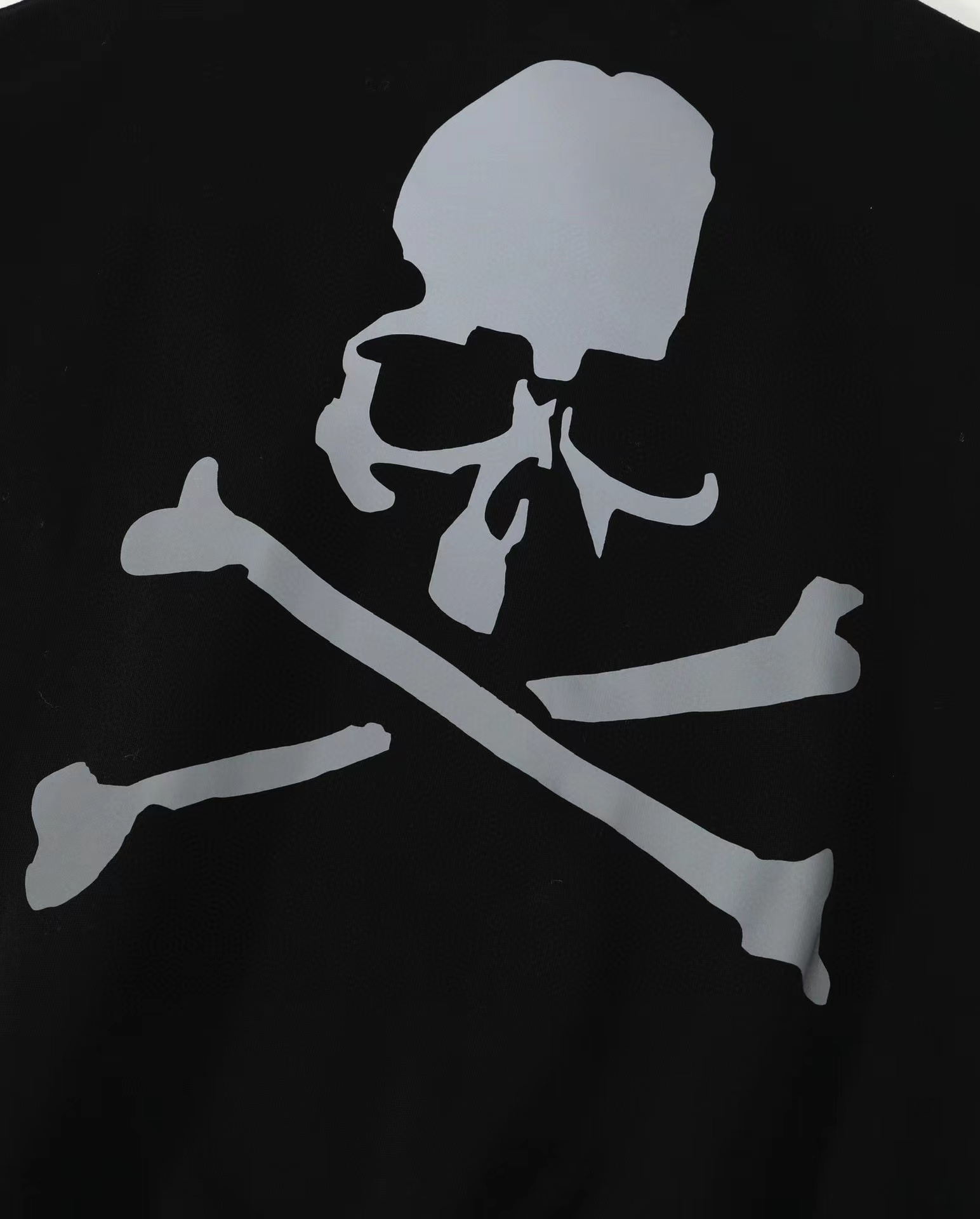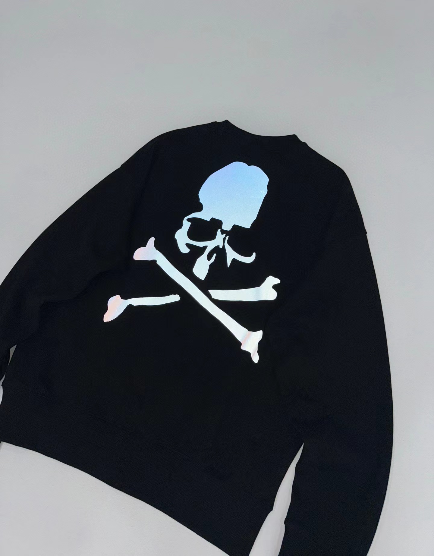 骷髅反光字母印花重磅高街圆领卫衣男女同款「暗黑鼻祖,潮流先锋」450g纯棉小毛圈,前后进口反光字母logo印花,下摆牛皮飘带设计,潮咖男女上身超j帅!定制450g重磅精梳纯棉小毛圈,搭配同缸定染高精密配套螺纹,好面料自然打造好版型,上身舒适挺阔有型!工艺方面前后反光印花工艺,胸口标志性的mmj标语搭配后背大骷髅印花,暗黑高街感十足!精g立体裁剪,宽松高街的版型,百搭任何身材!