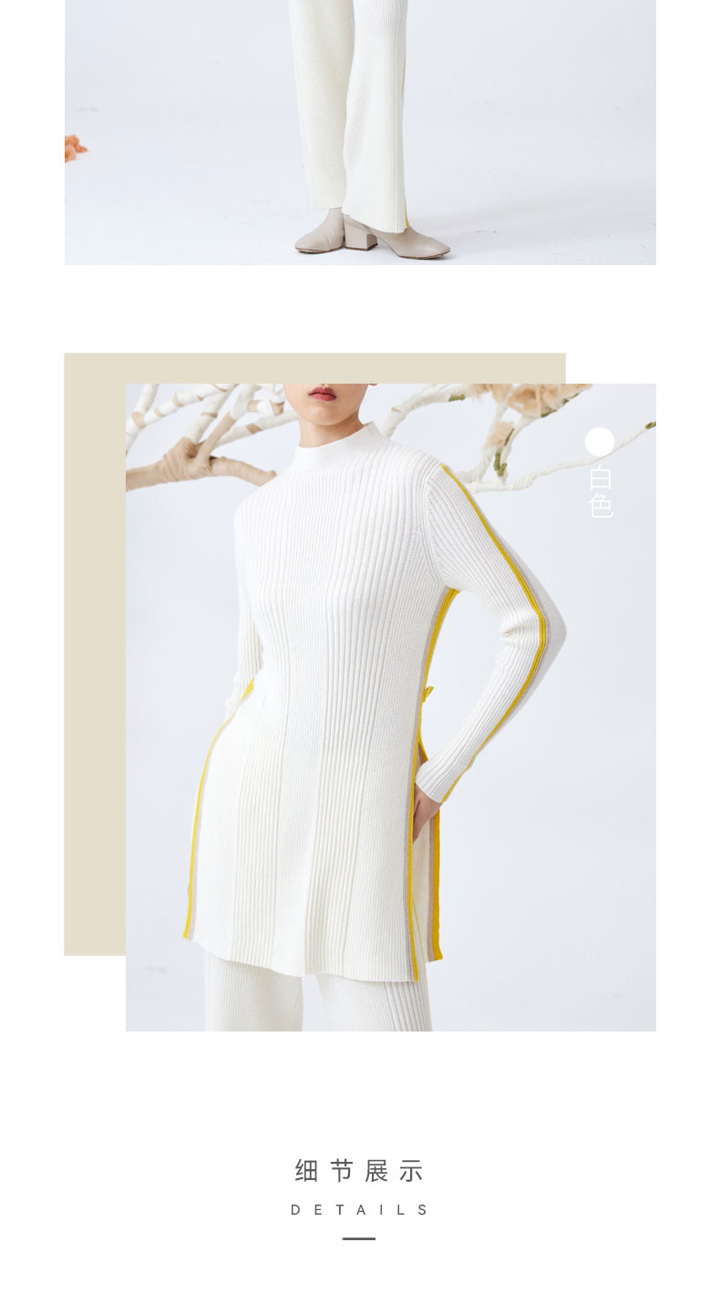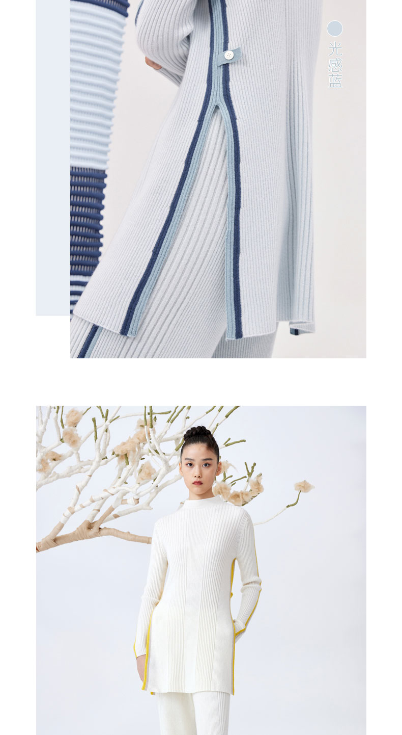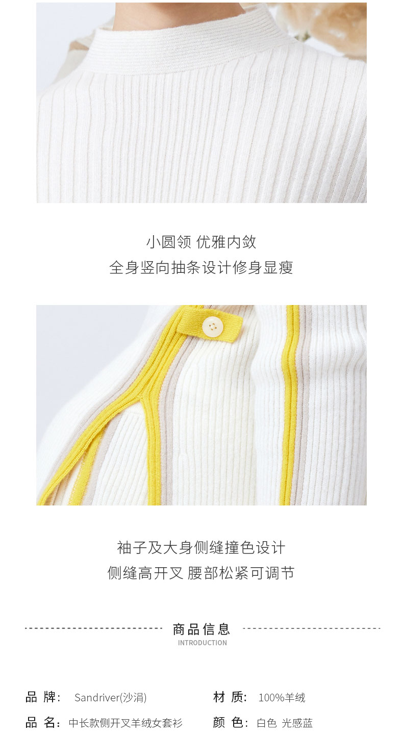 自带领中长款侧开叉羊绒女套衫 SJF93W111N