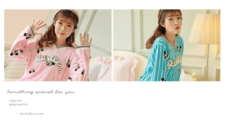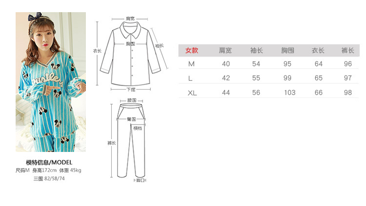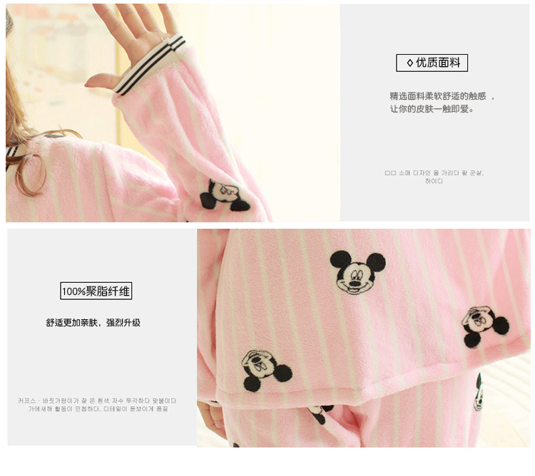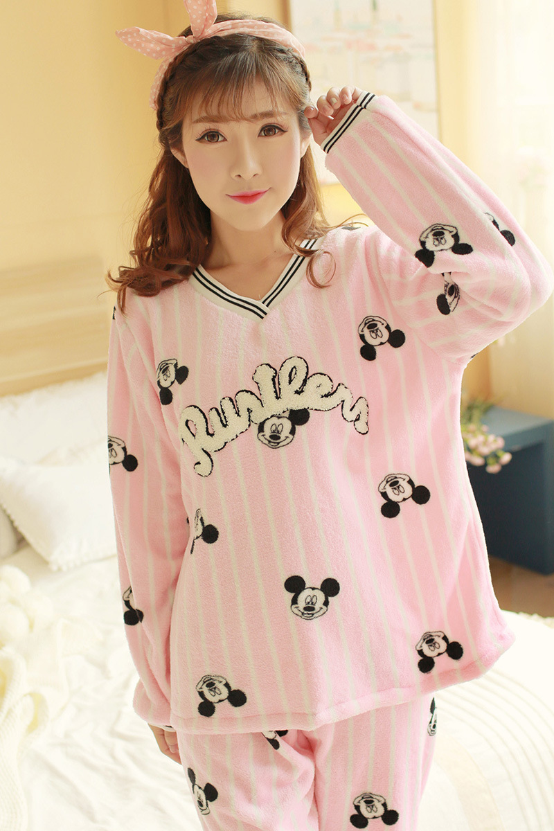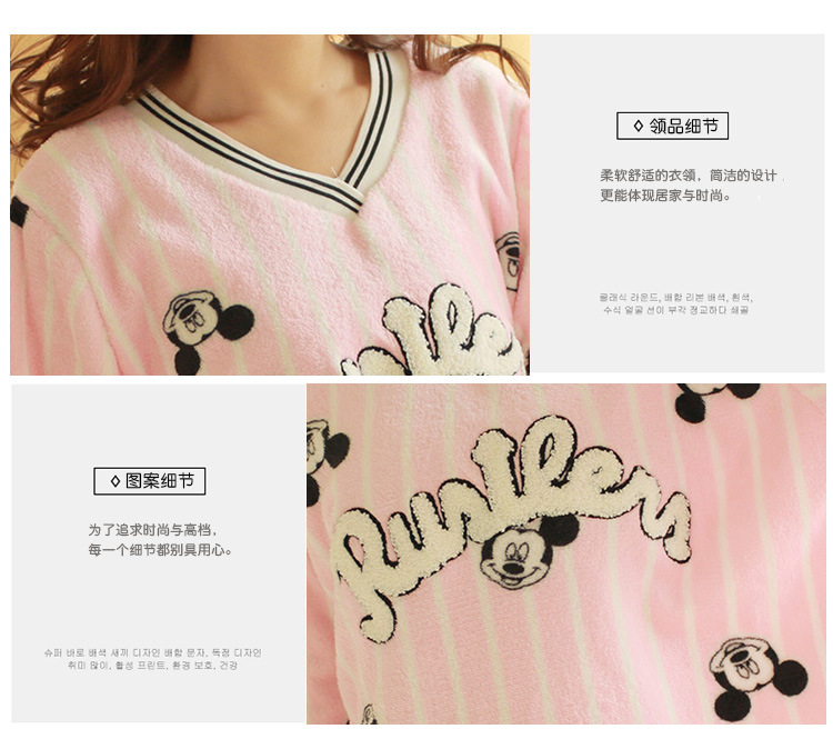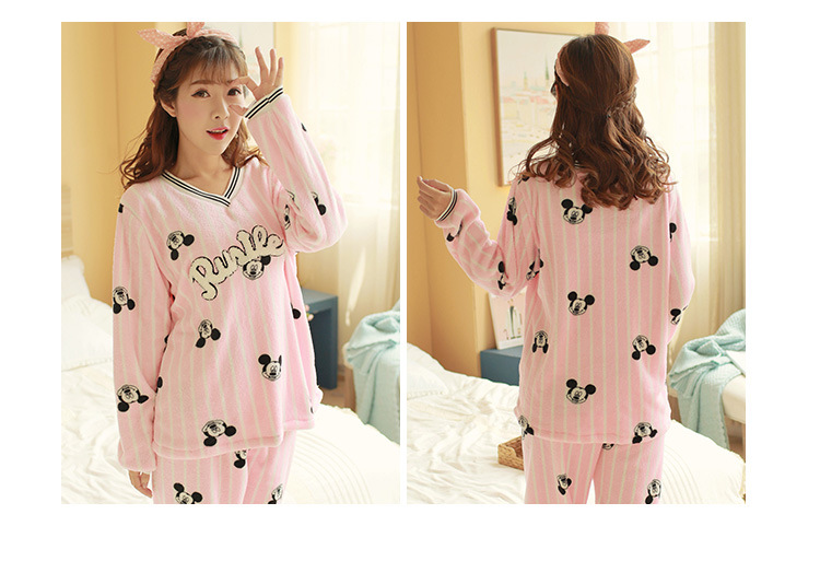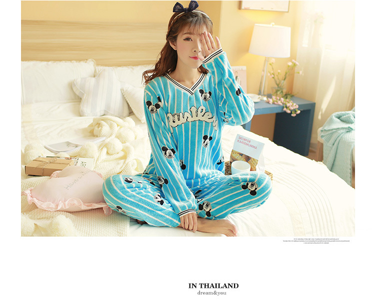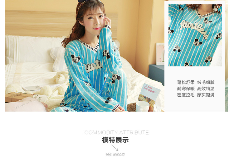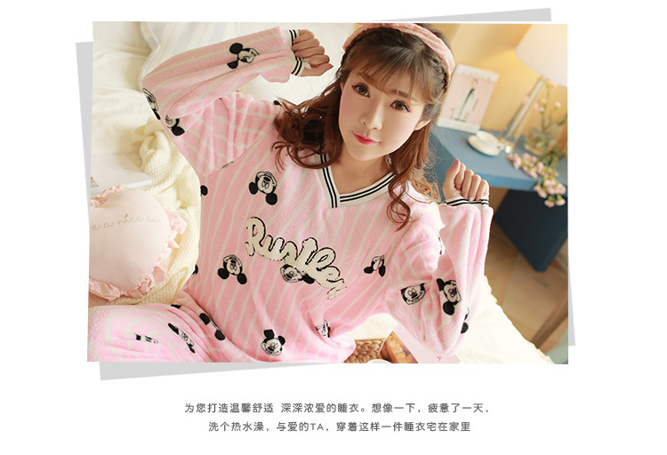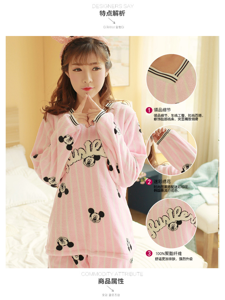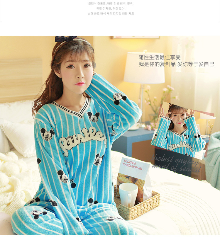 【睡衣女】秋冬季长袖睡衣可爱卡通韩版加厚冬天法兰绒家居服套装女 商品图0