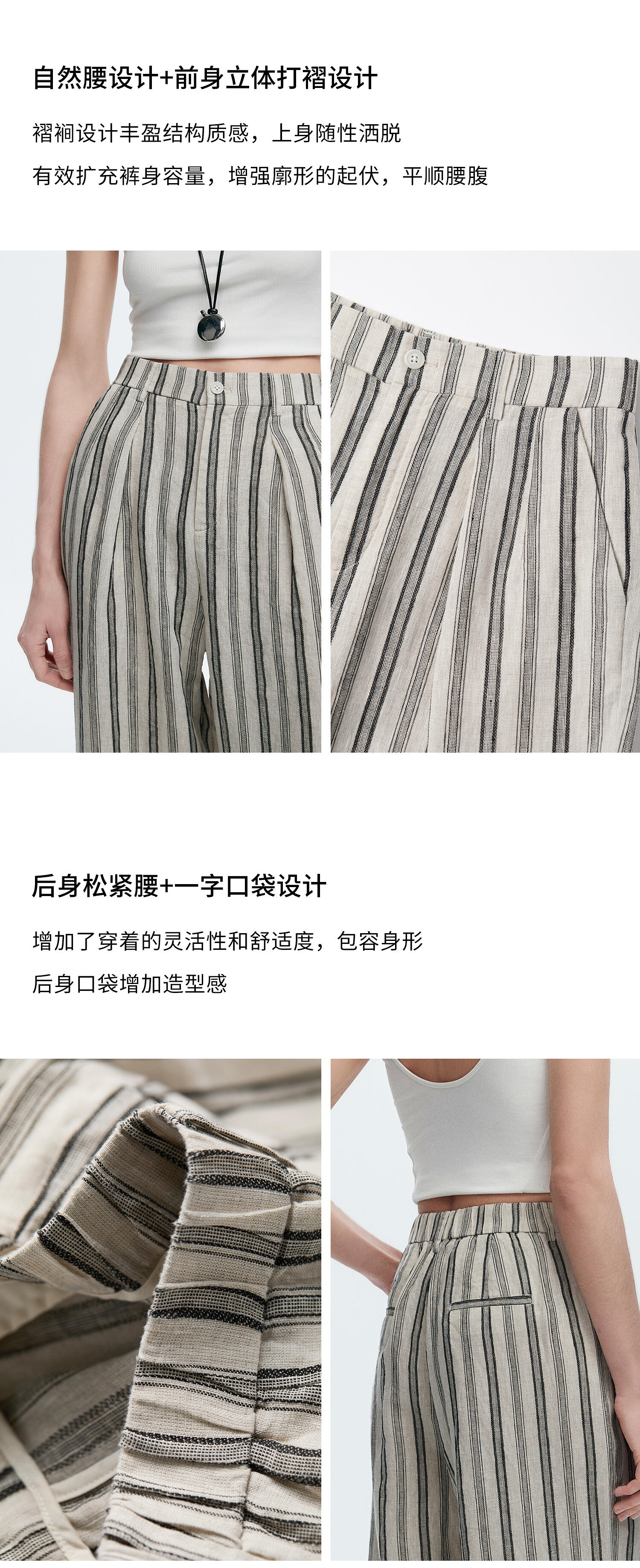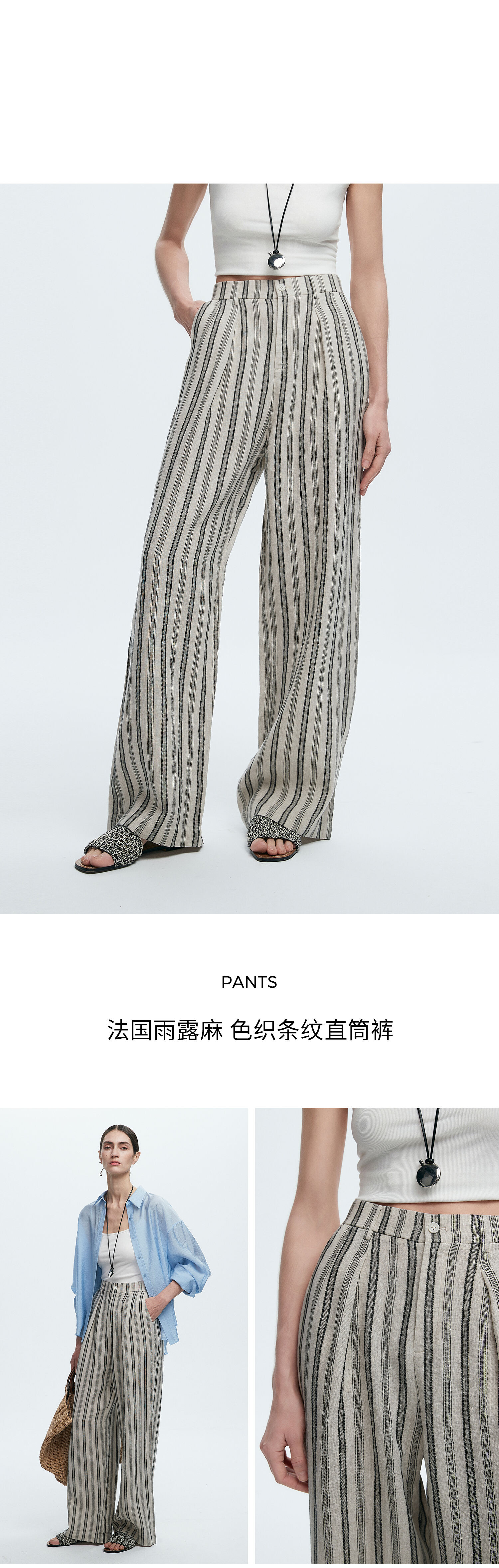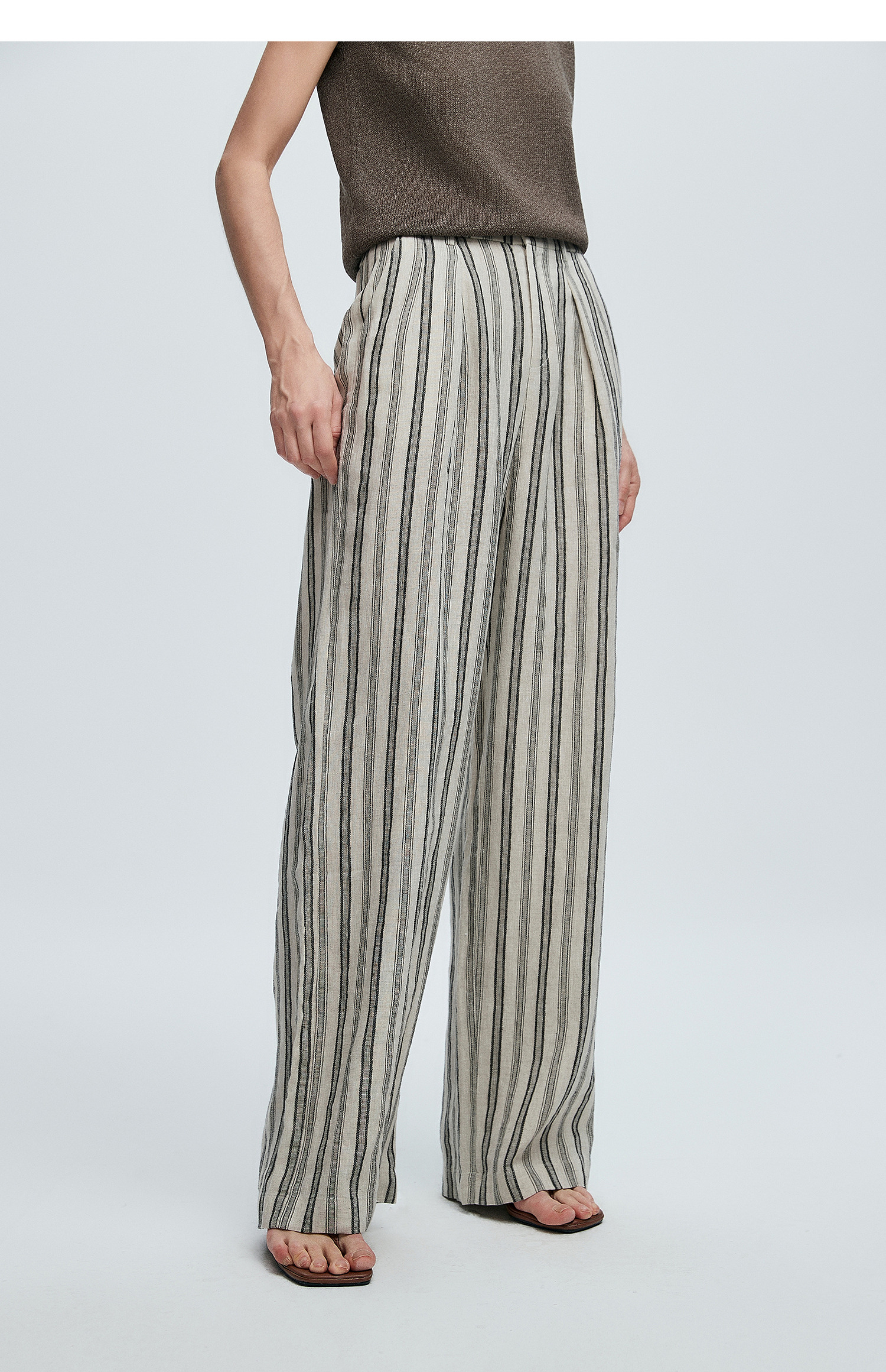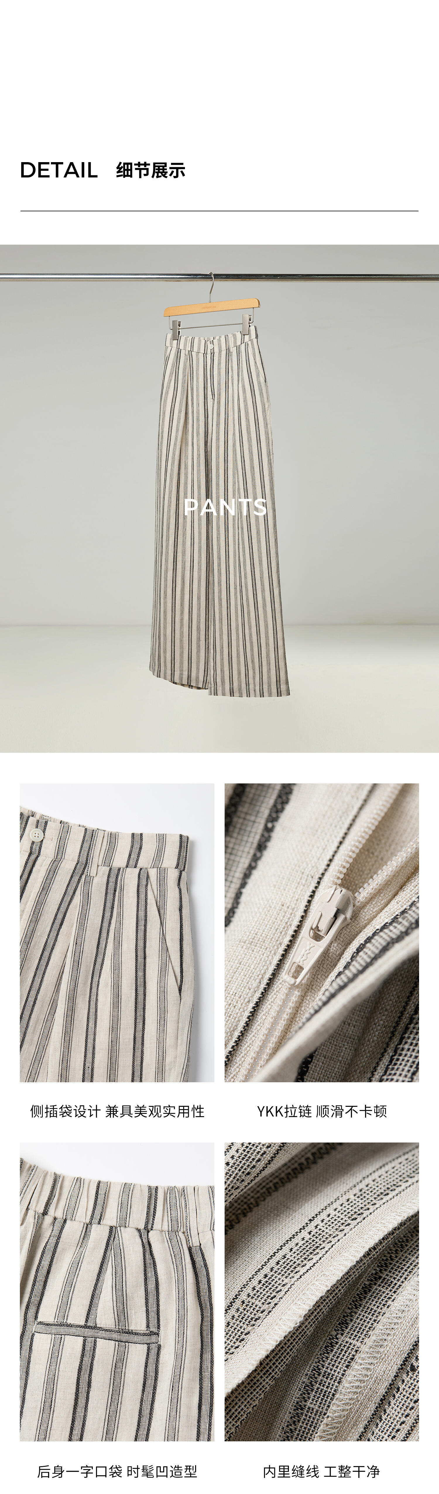 棉仓362618009-初棉雨露麻色织条纹宽松直筒裤