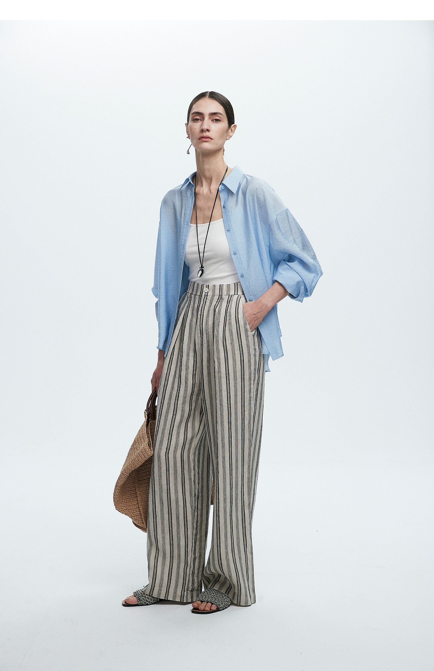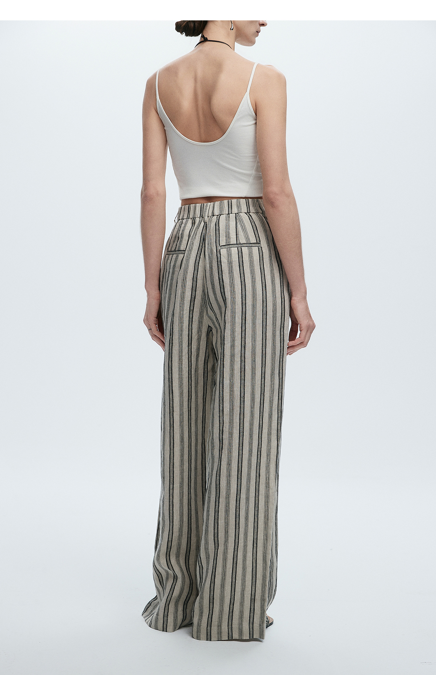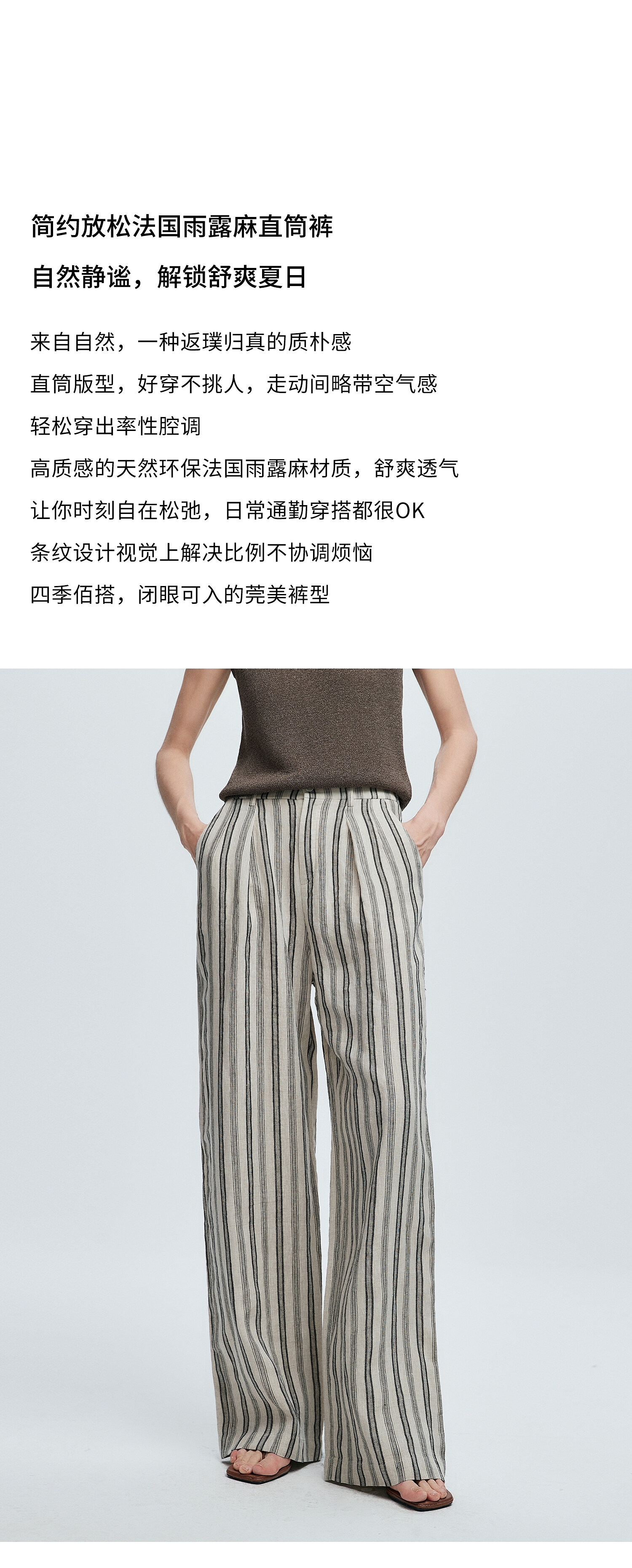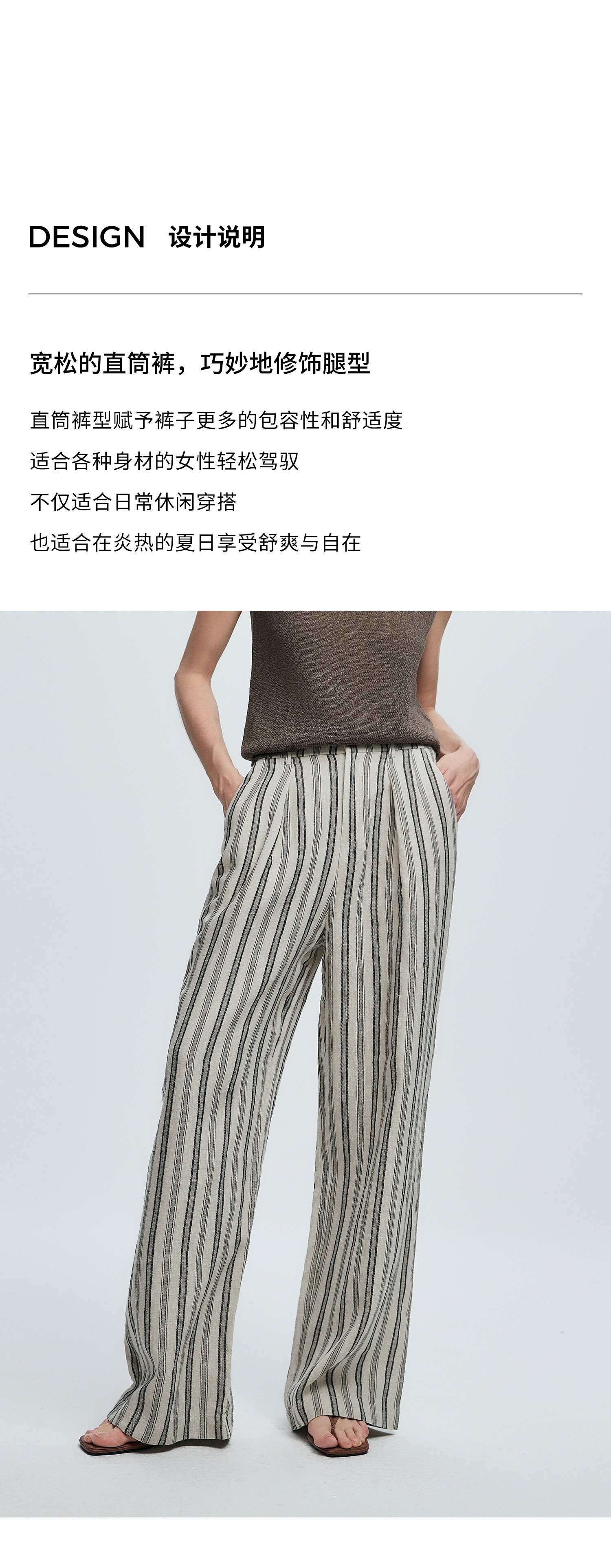 棉仓362618009-初棉雨露麻色织条纹宽松直筒裤