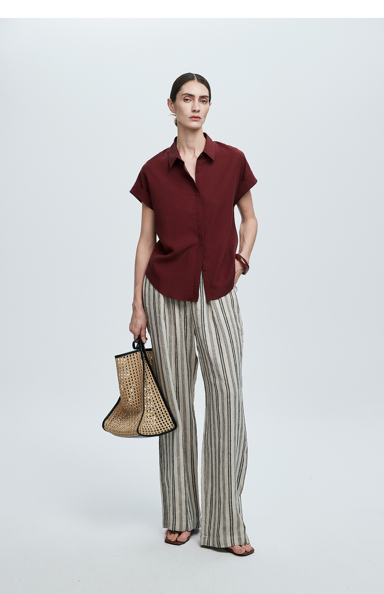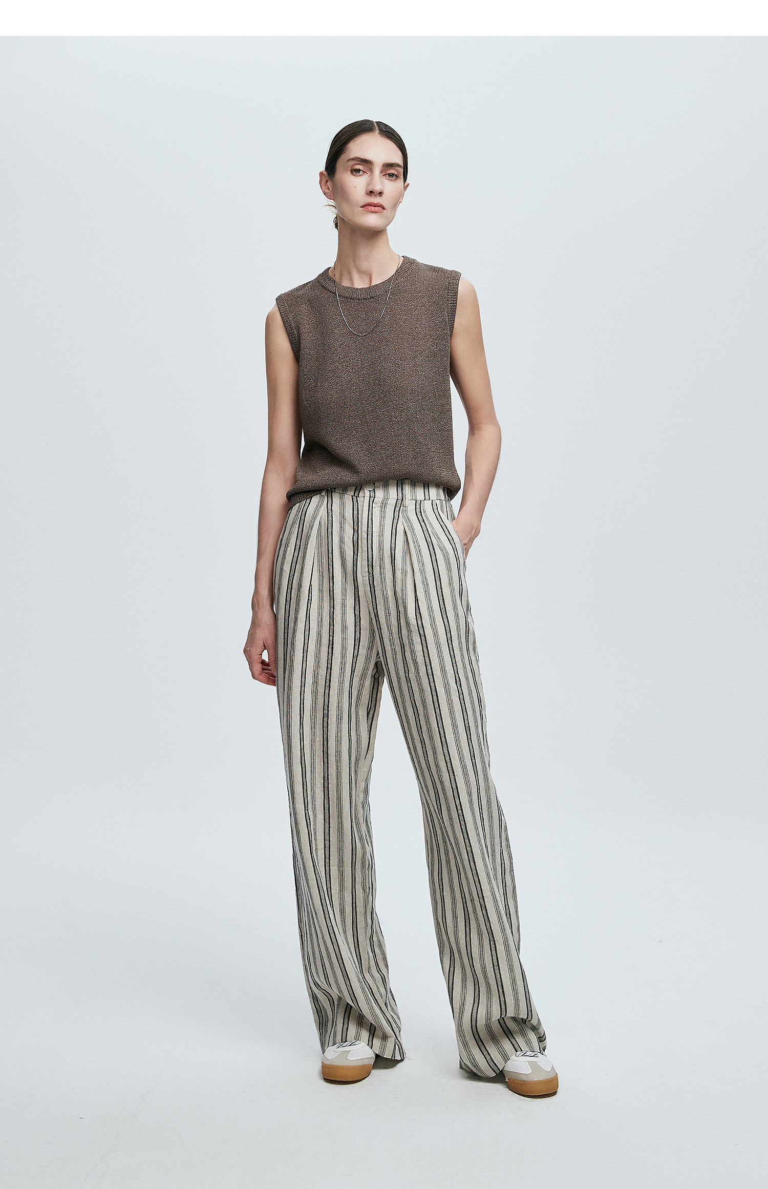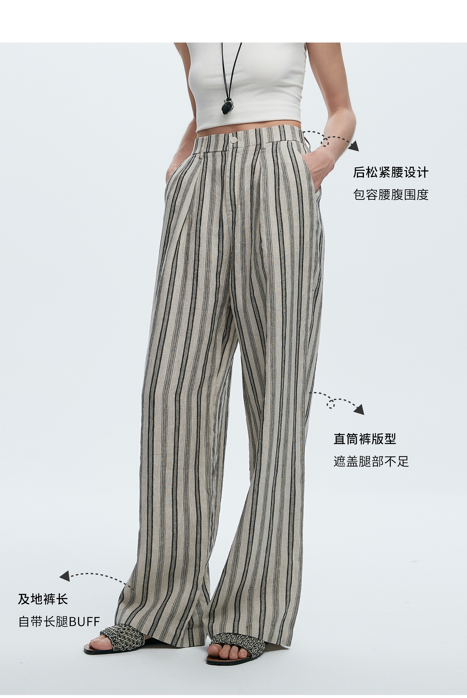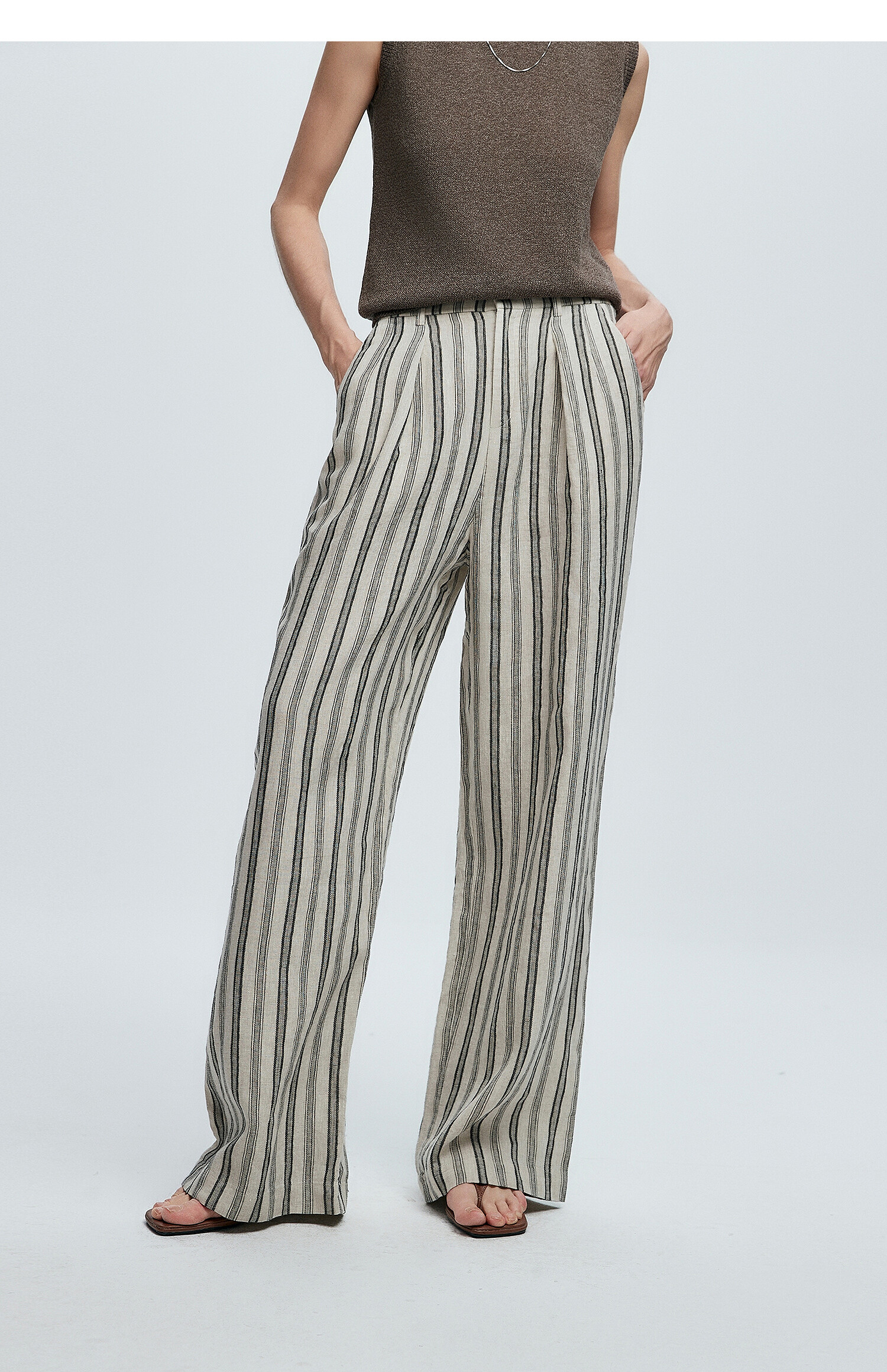 棉仓362618009-初棉雨露麻色织条纹宽松直筒裤