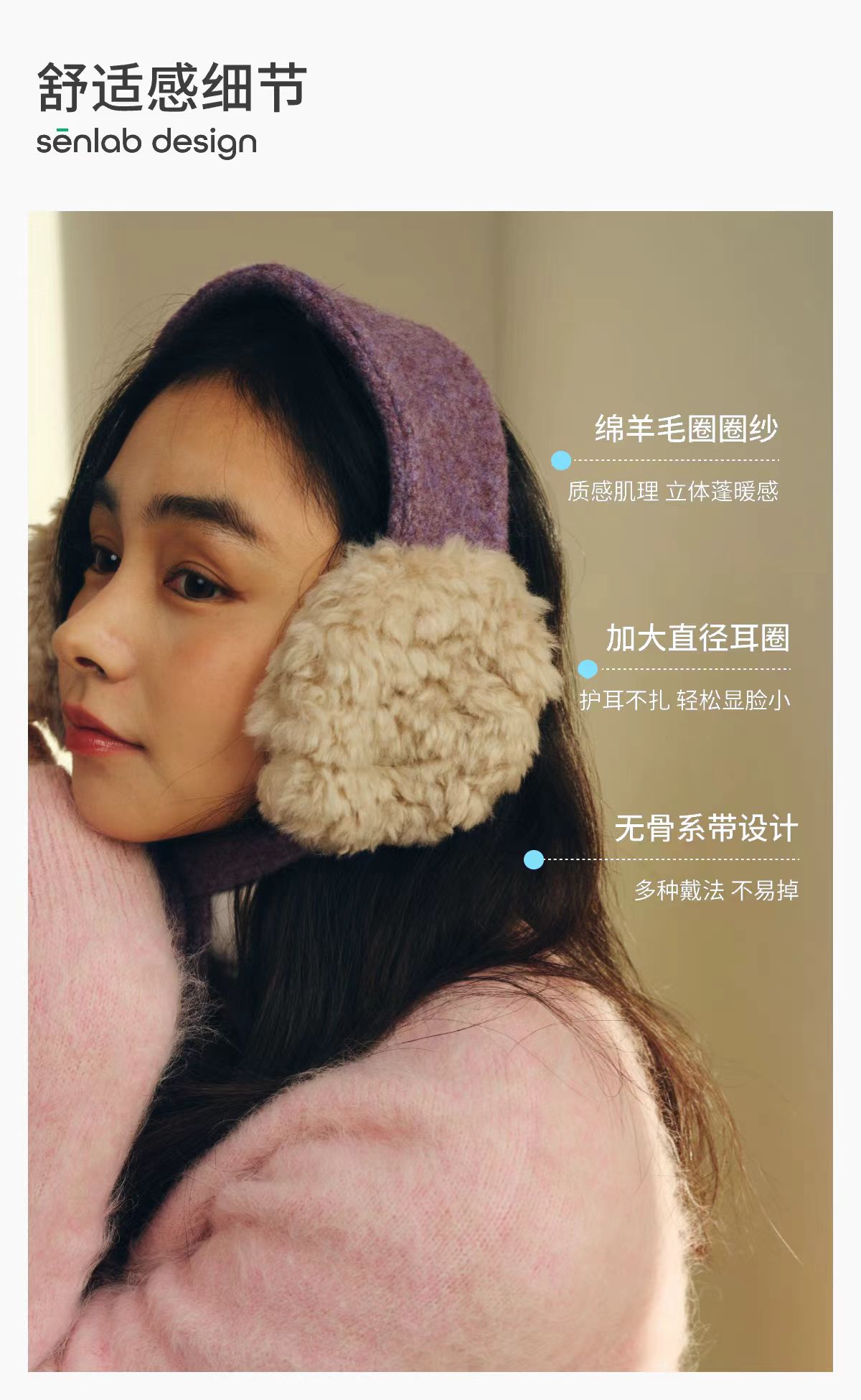 4楼Eubelle欧蓓 上森派系羊毛系带耳罩 冬女 保暖毛绒氛围感护耳朵神器 活动价:249.9元