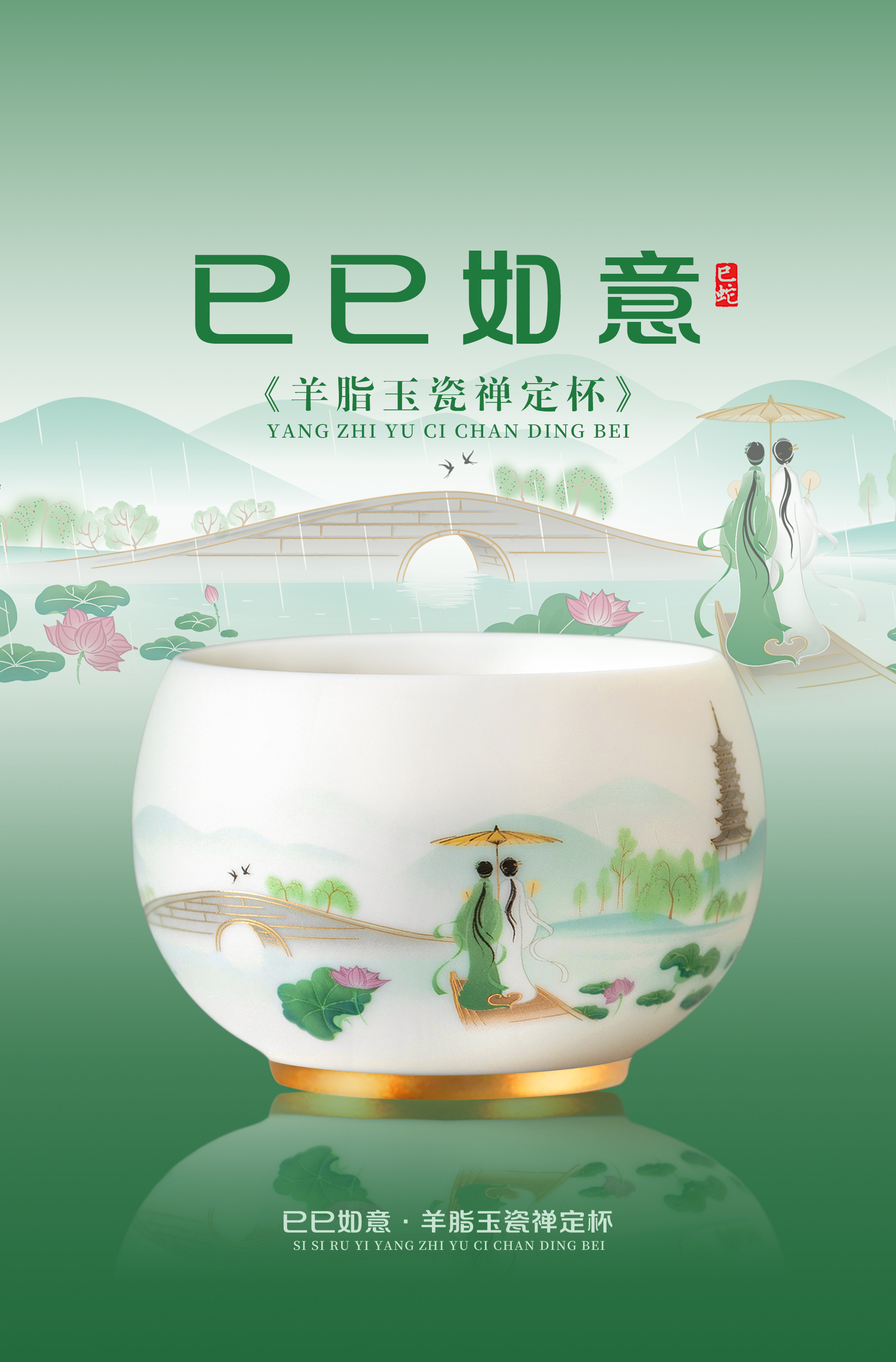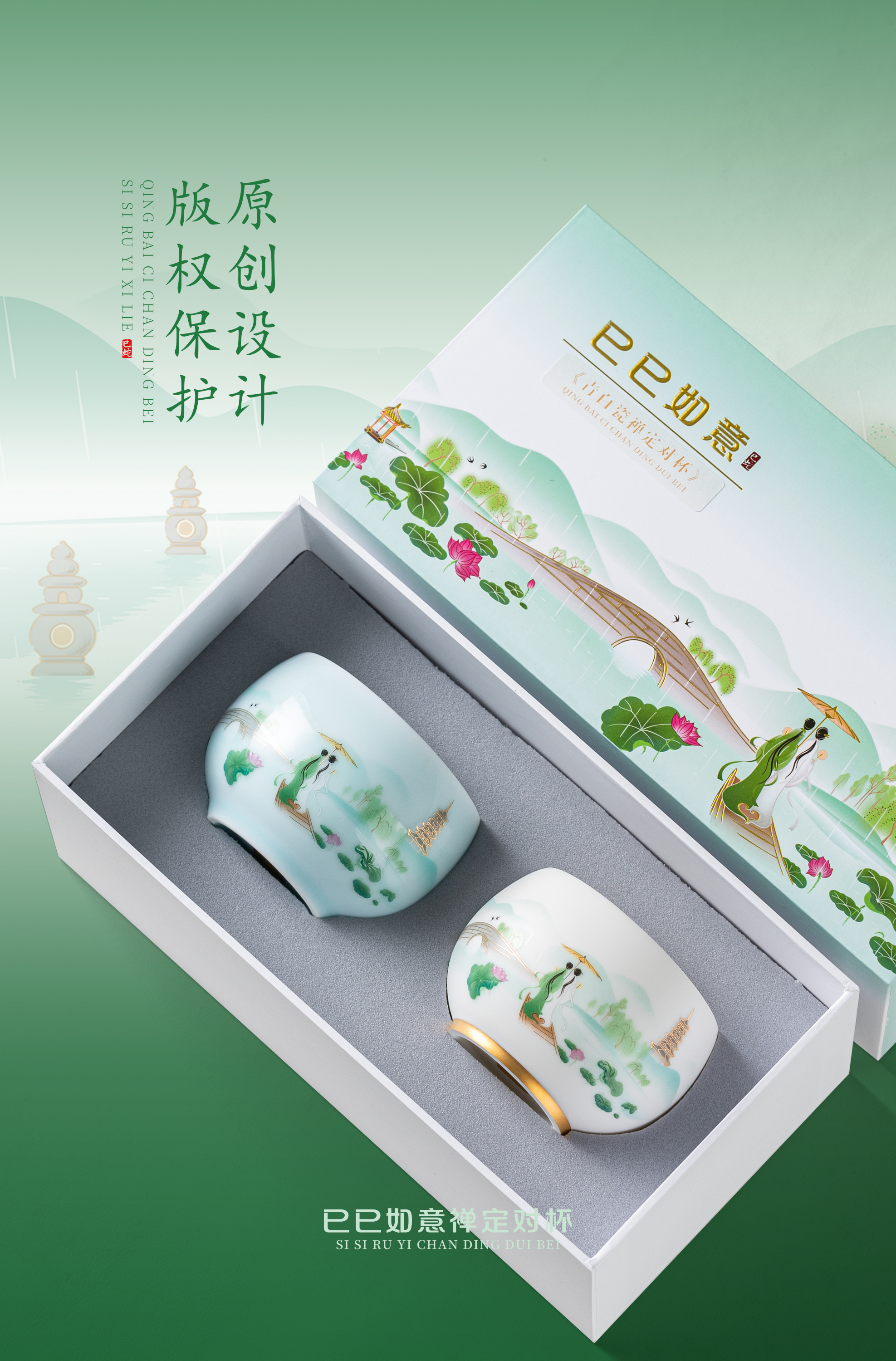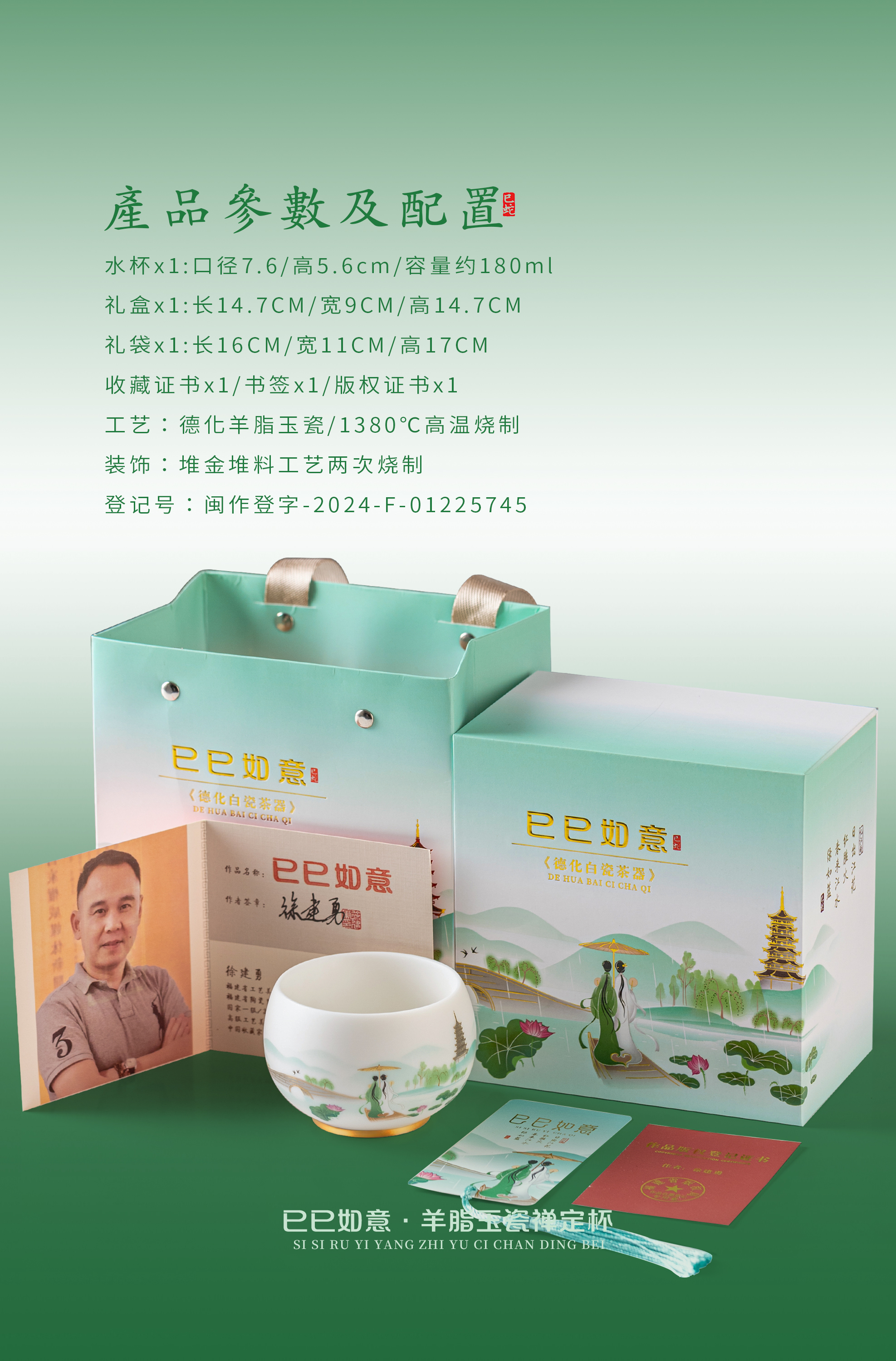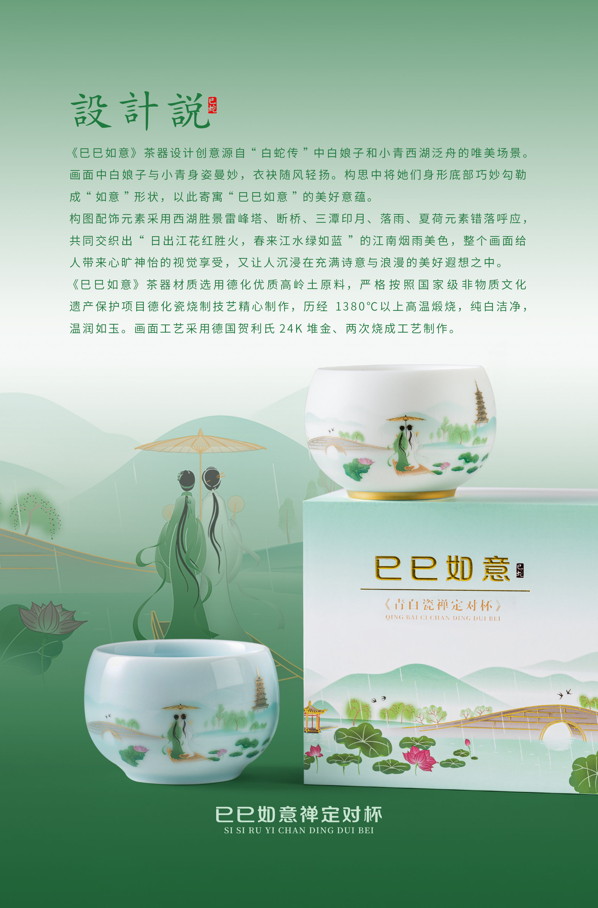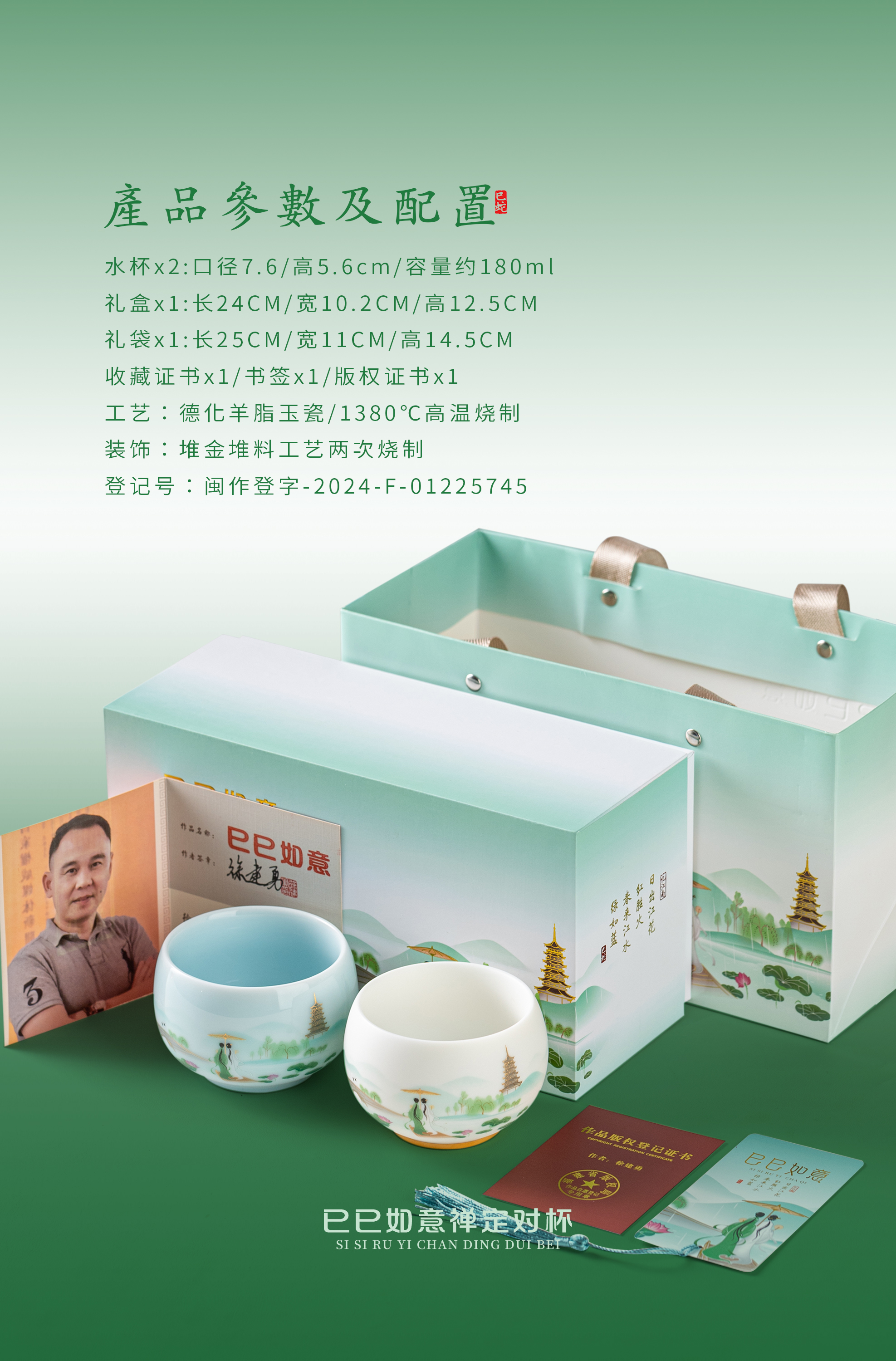 【巳巳如意】青白瓷禅定对杯/旅行茶器套组/羊脂玉瓷禅定杯/德化白瓷茶器 徐建勇大师签章,青蛇逢双春,瑞气满千门,精美包装 gao端豪礼