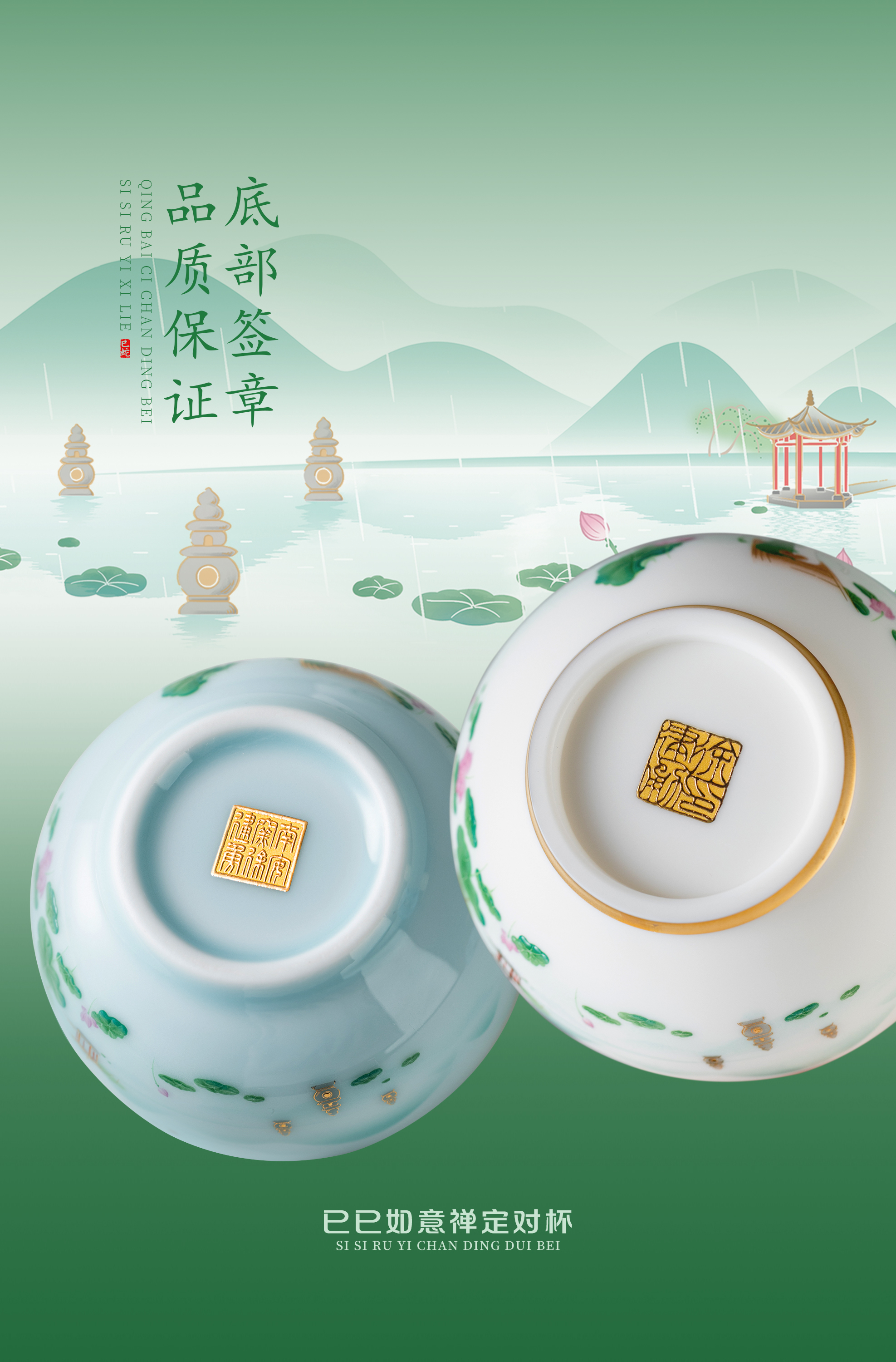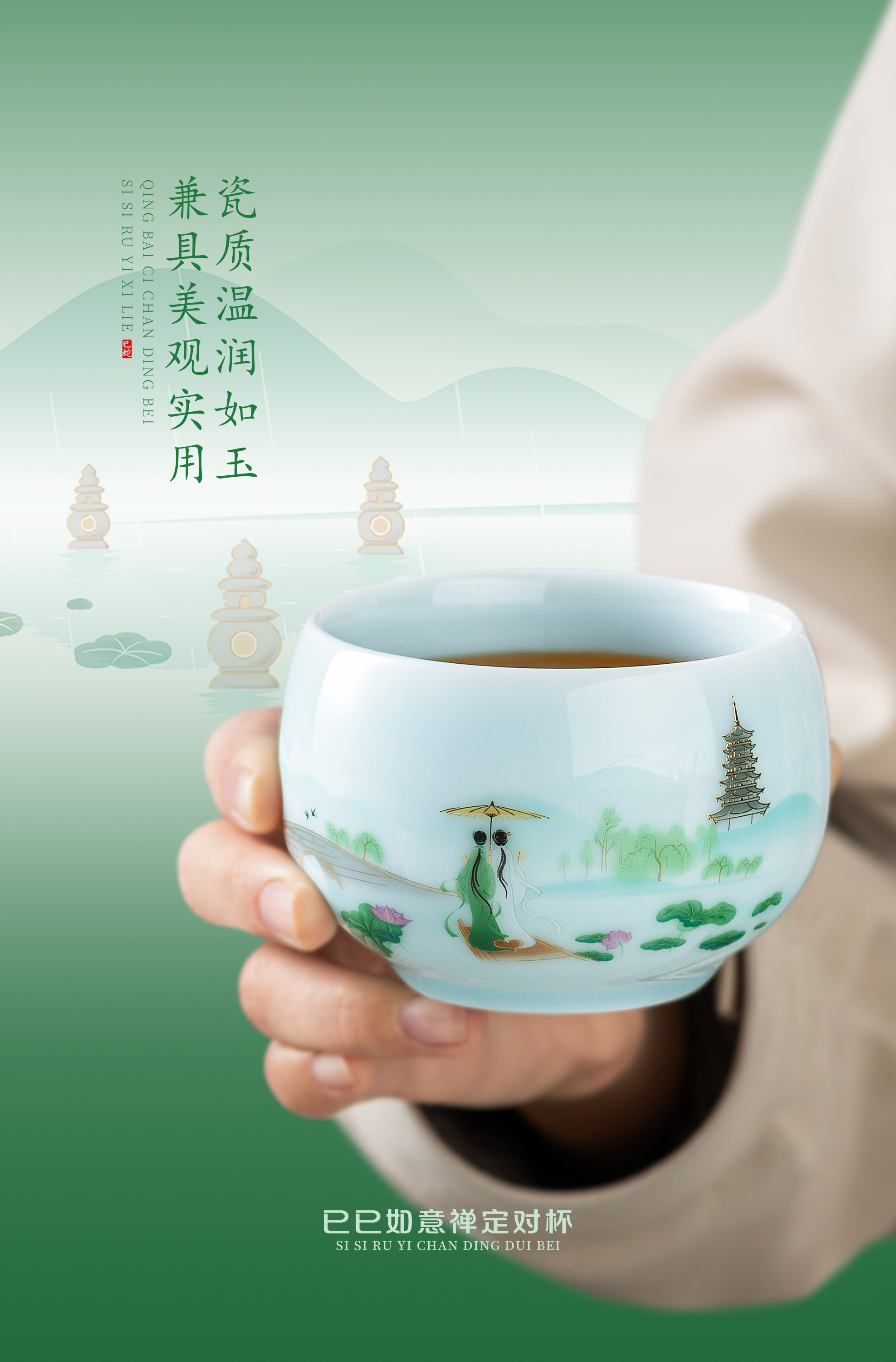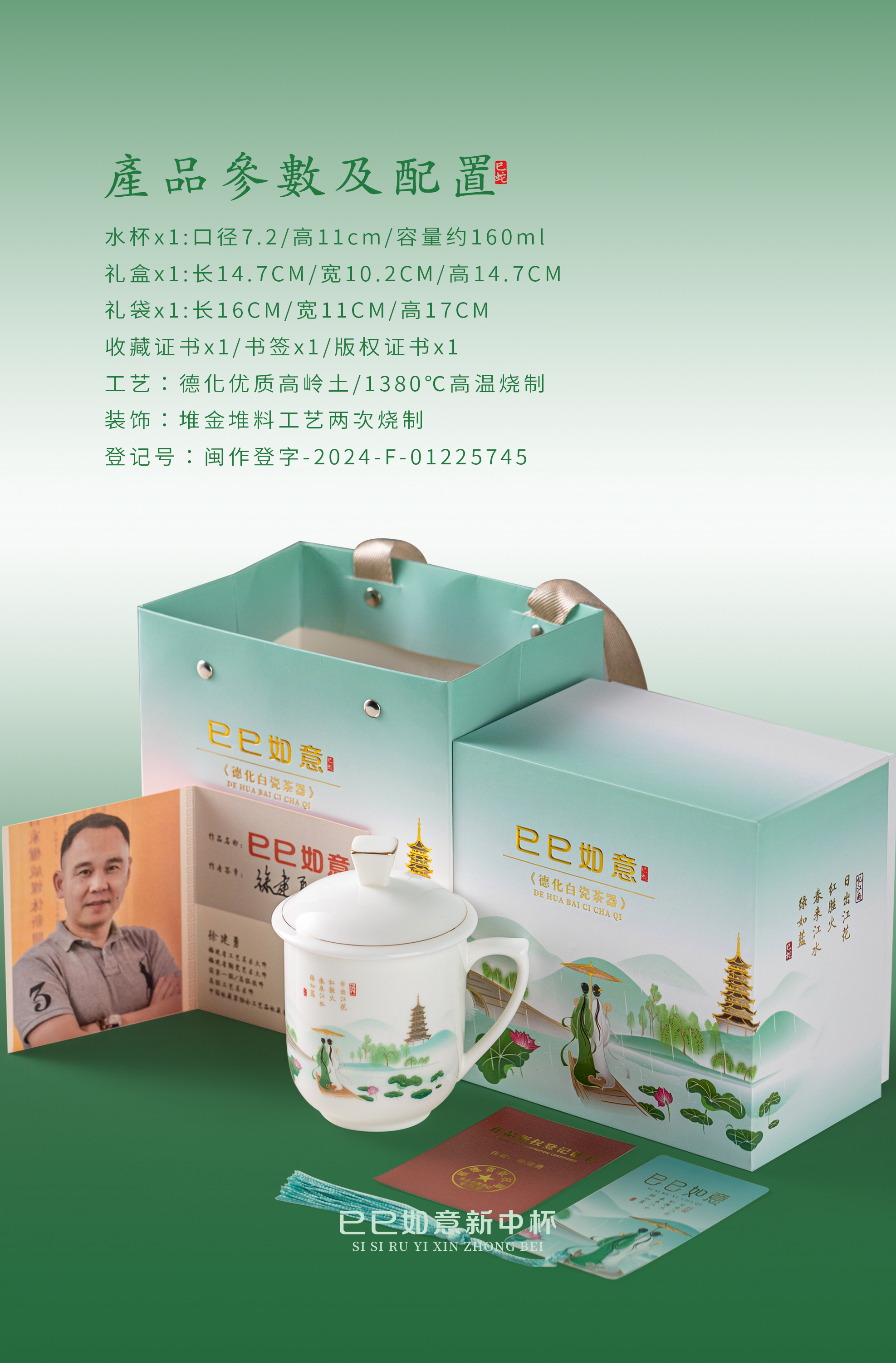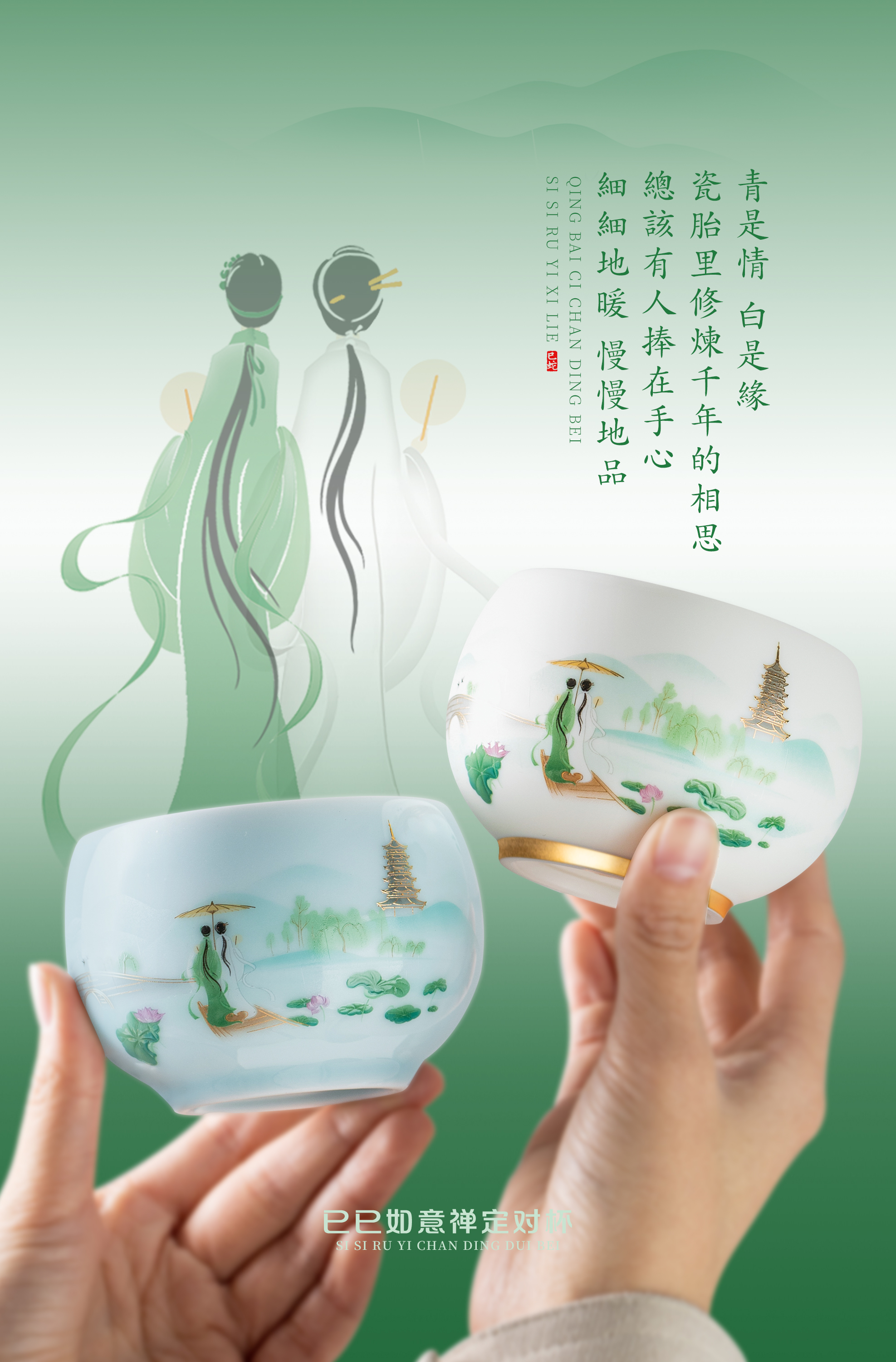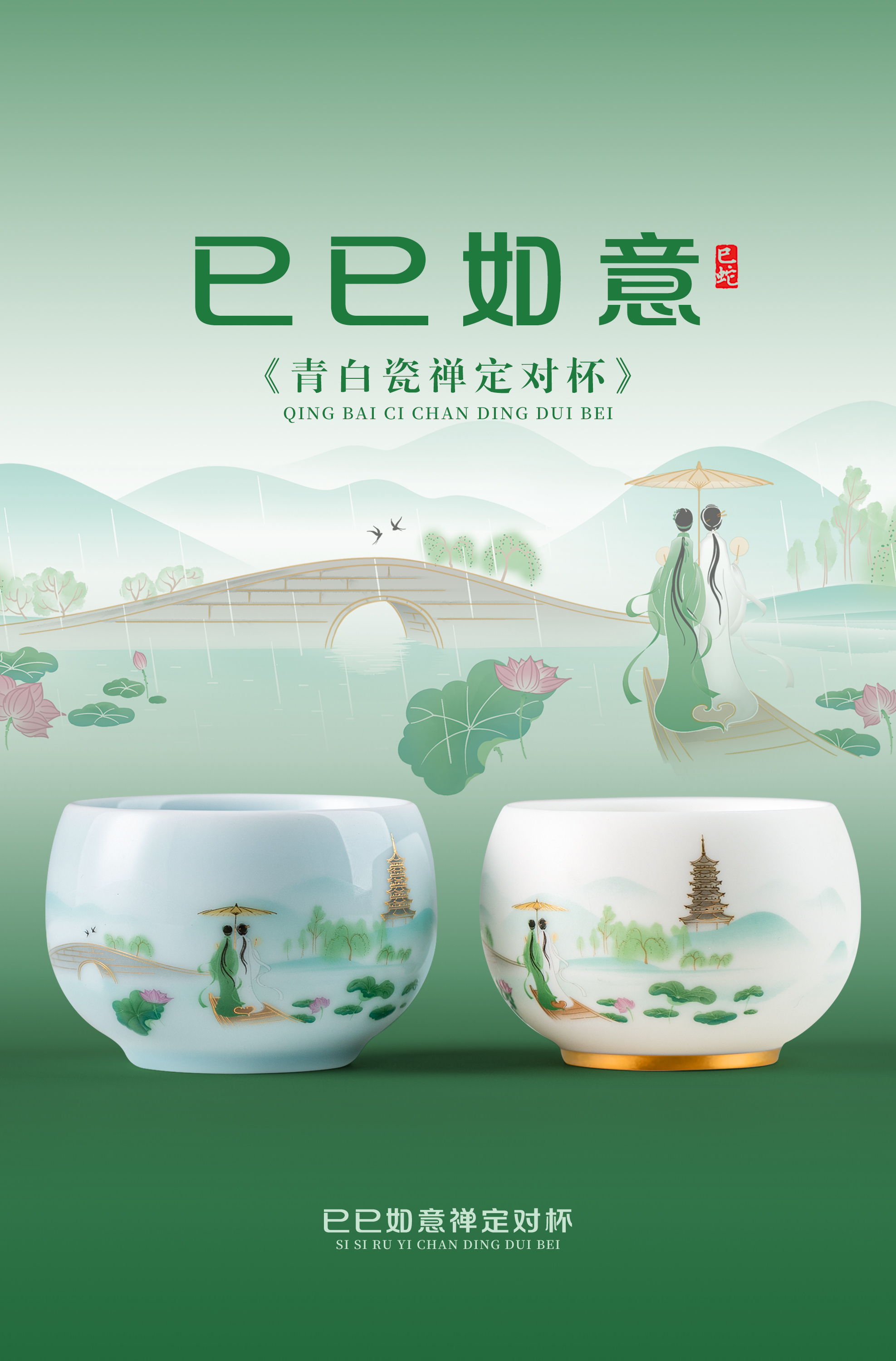 【巳巳如意】青白瓷禅定对杯/旅行茶器套组/羊脂玉瓷禅定杯/德化白瓷茶器 徐建勇大师签章,青蛇逢双春,瑞气满千门,精美包装 gao端豪礼