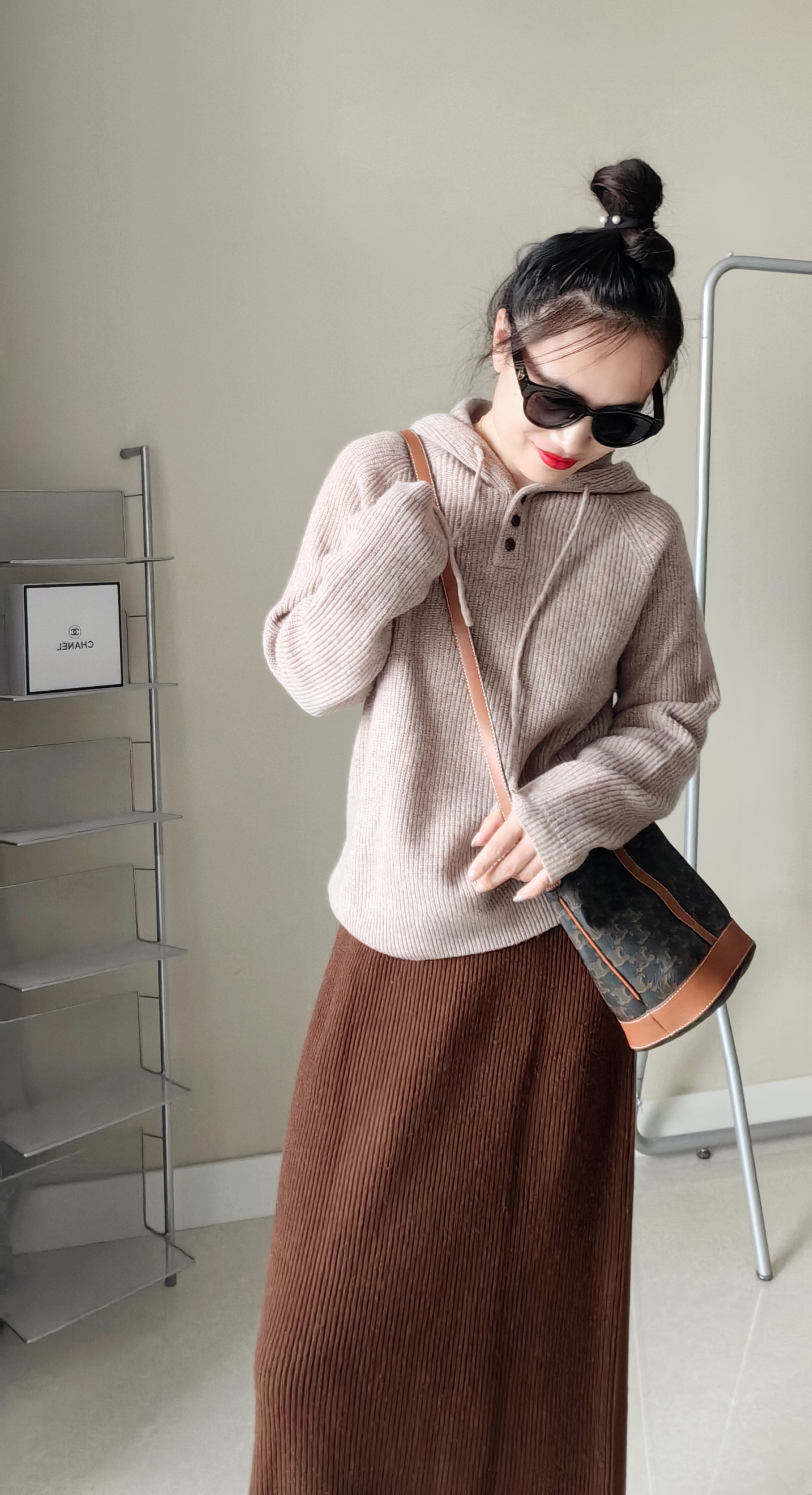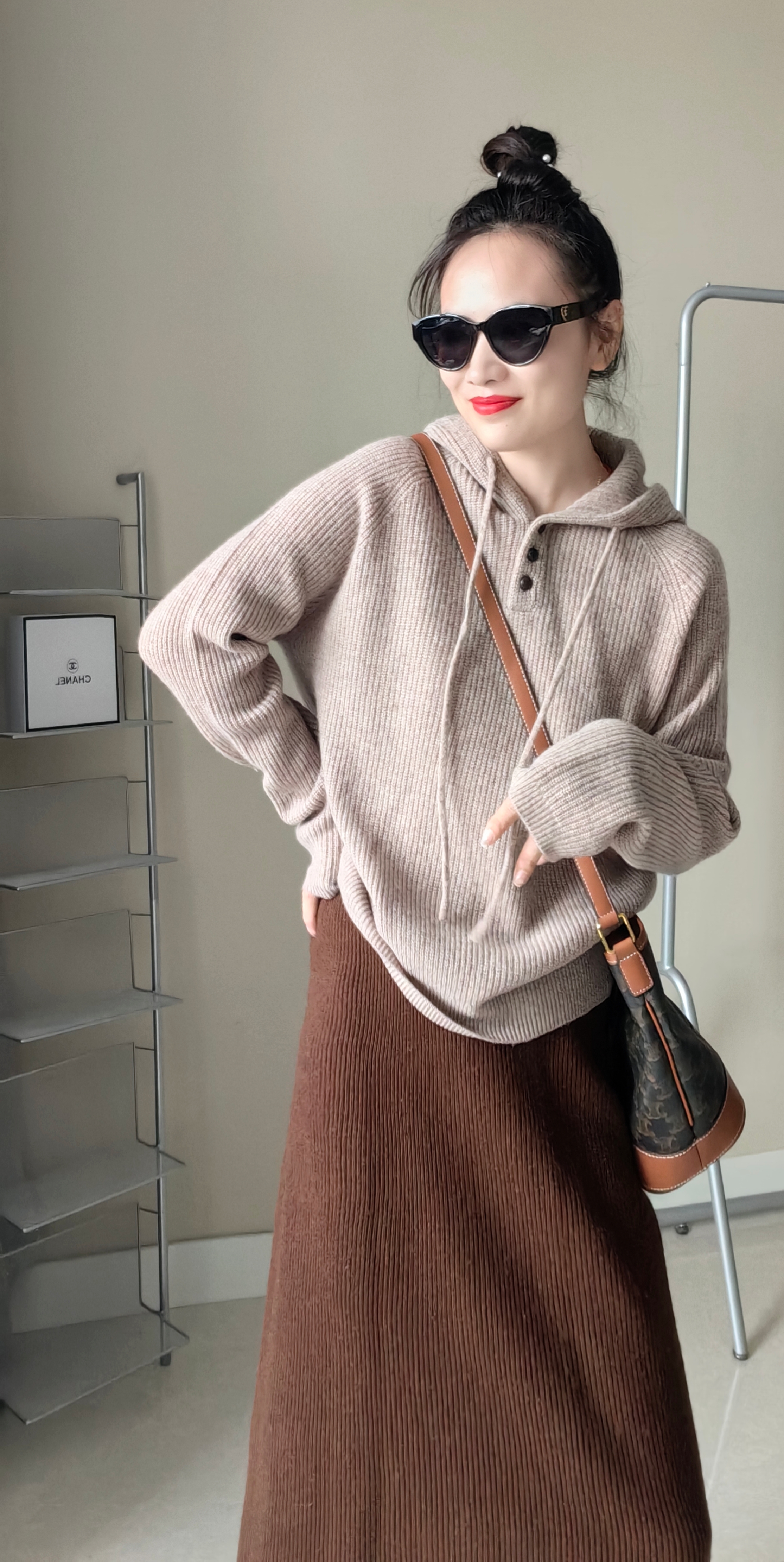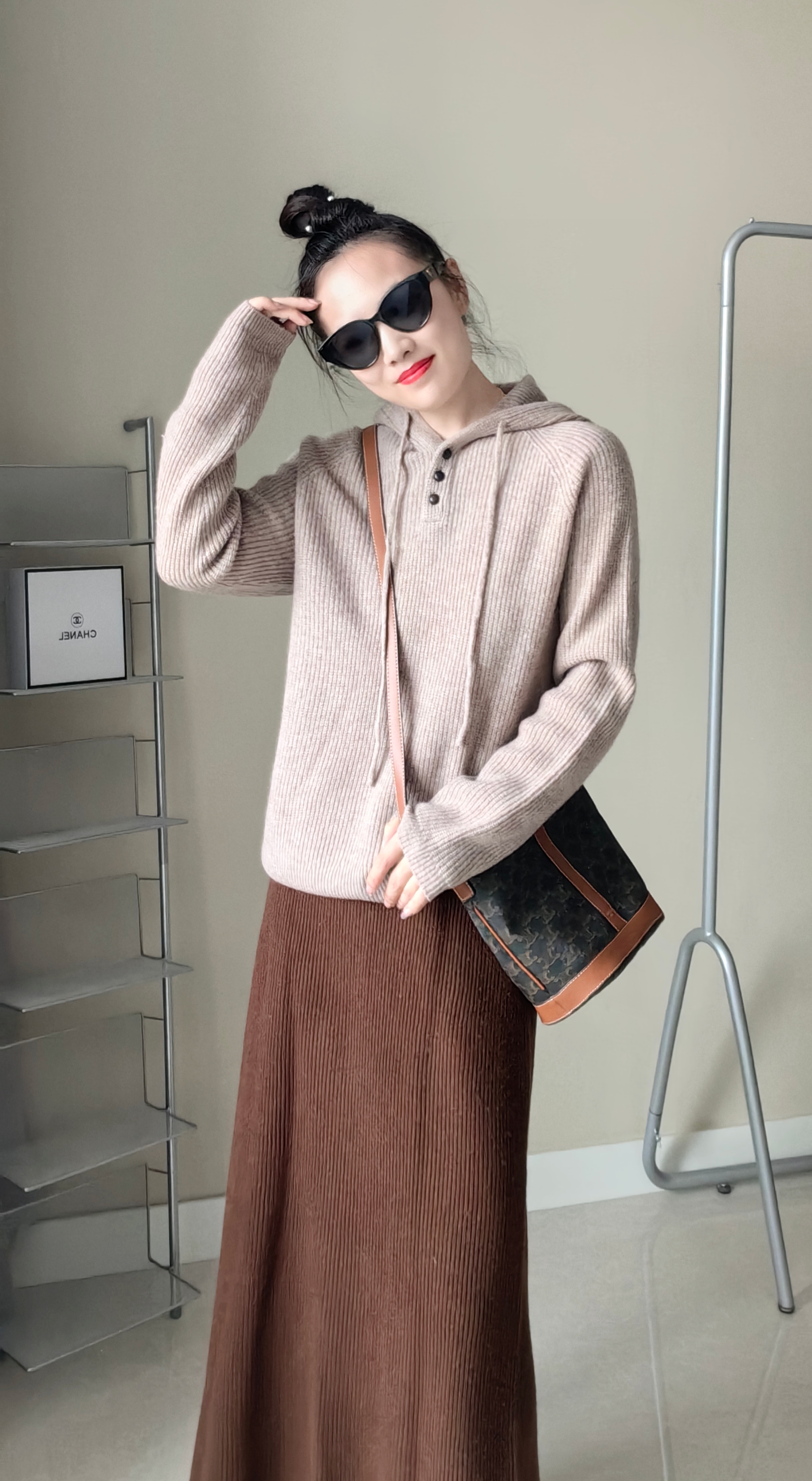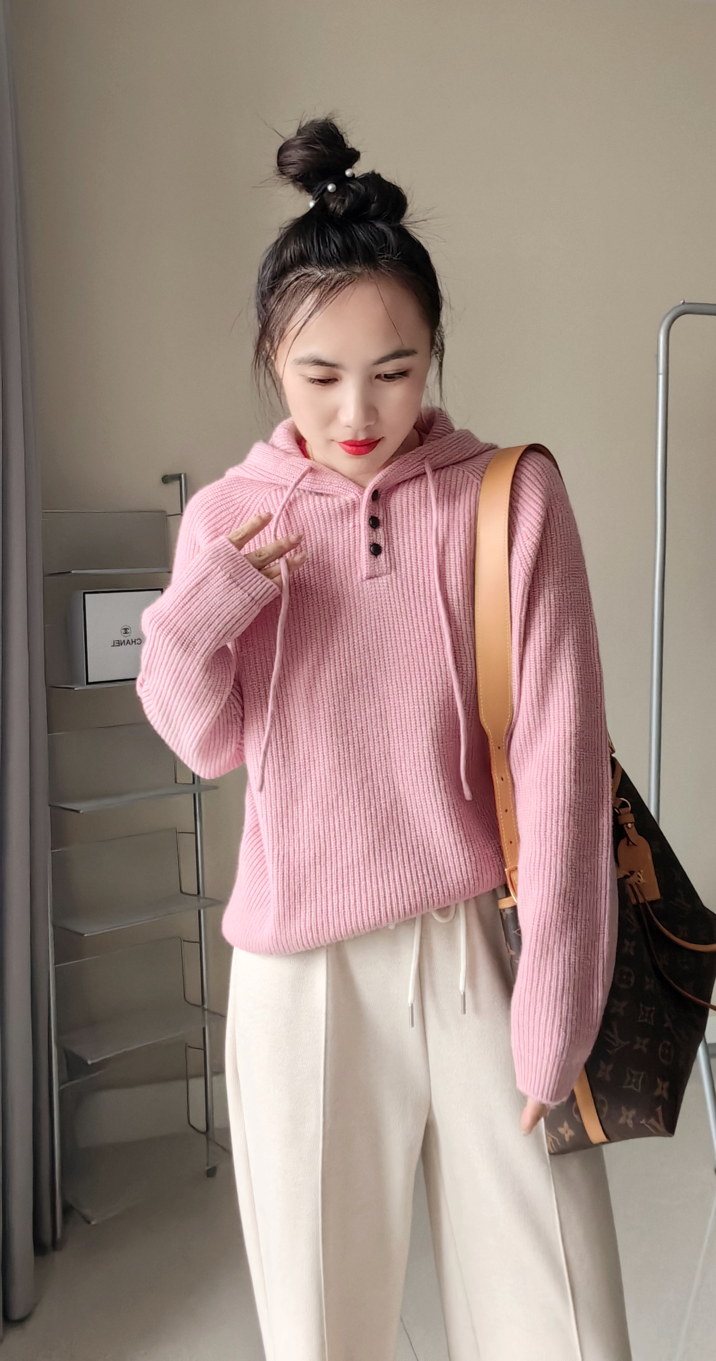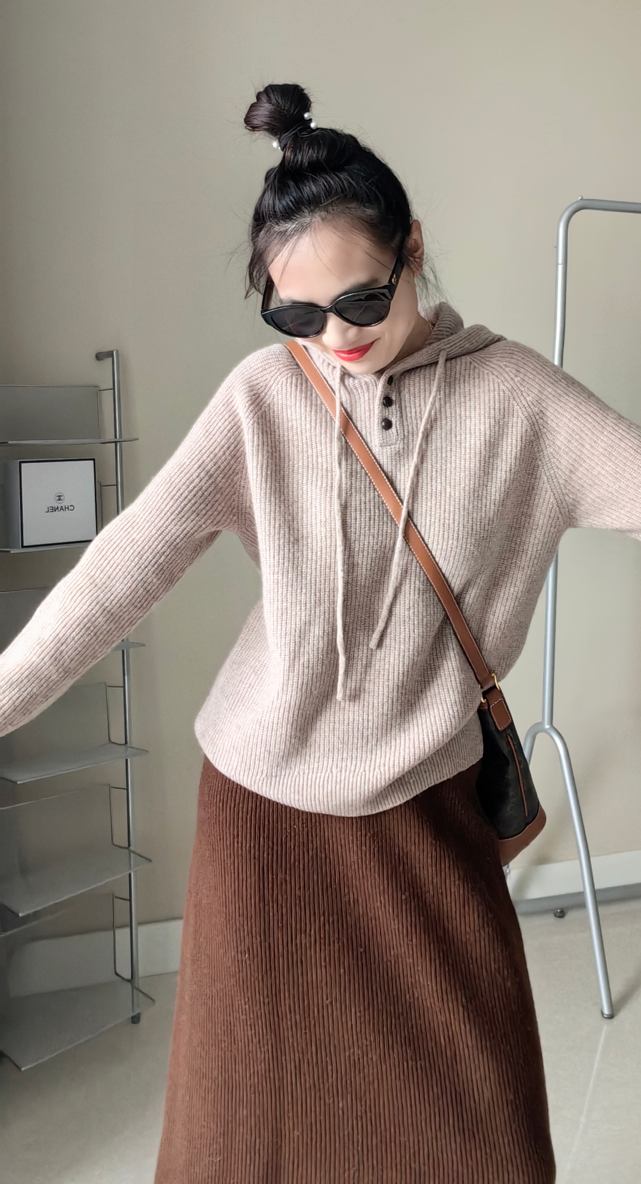 85%羊毛15%羊绒高品软糯体感,坑条织随身版型显瘦。每一个颜色单穿,打底都很好看!