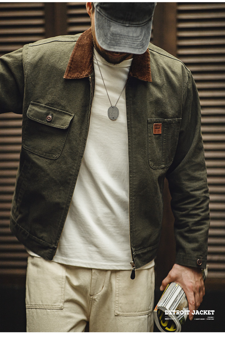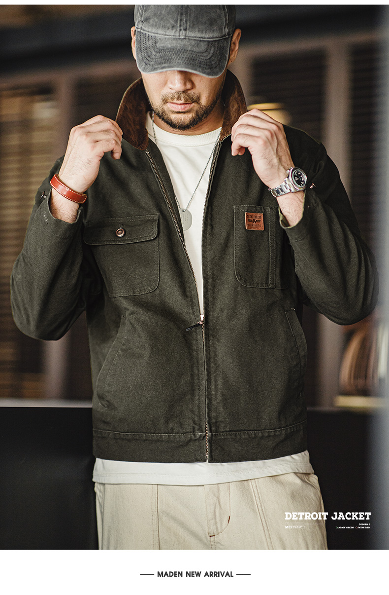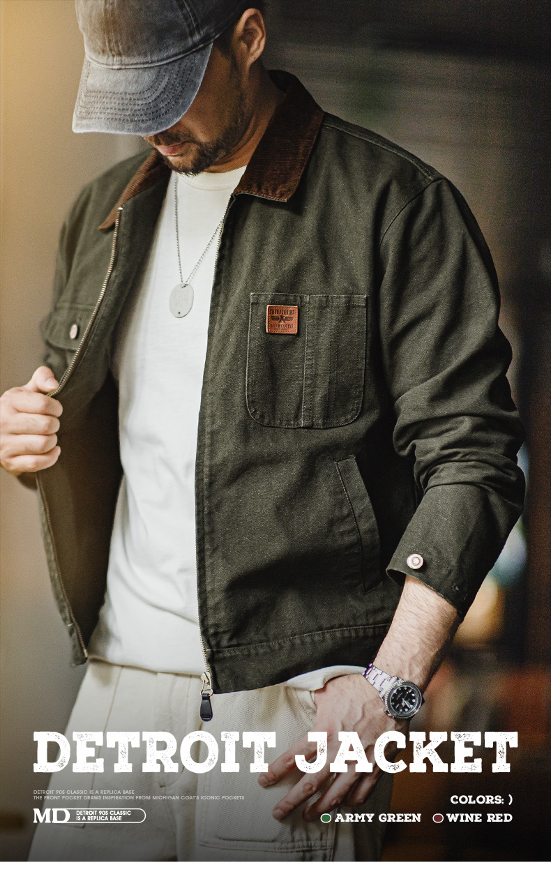 工装优选美式复古重磅帆布底特律夹克硬汉翻领猎装短款外套男秋季