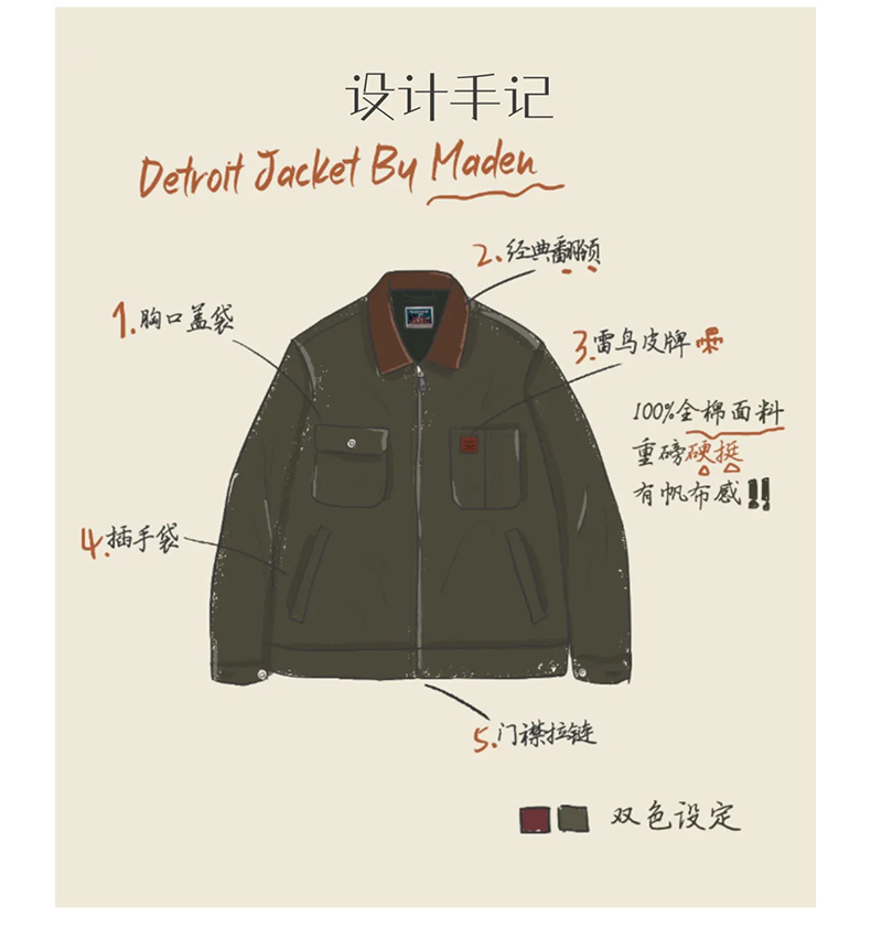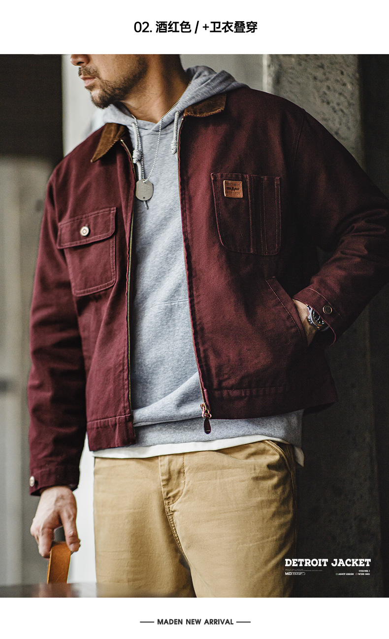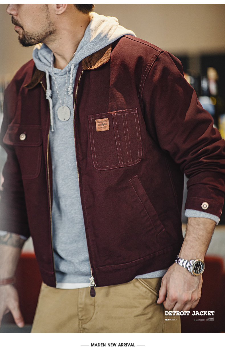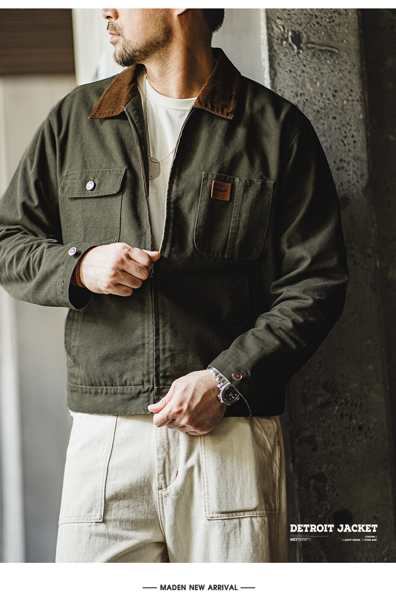 工装优选美式复古重磅帆布底特律夹克硬汉翻领猎装短款外套男秋季