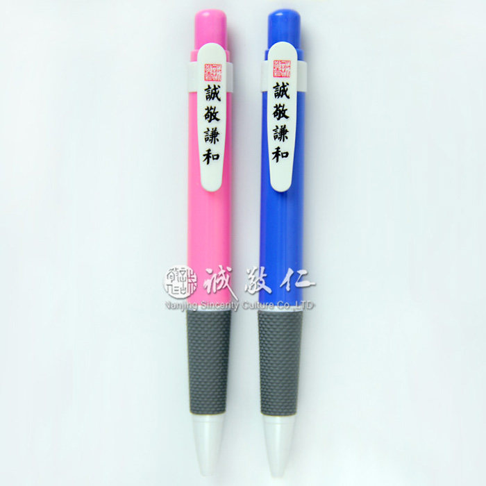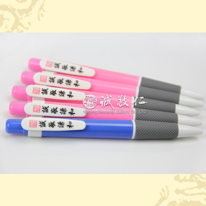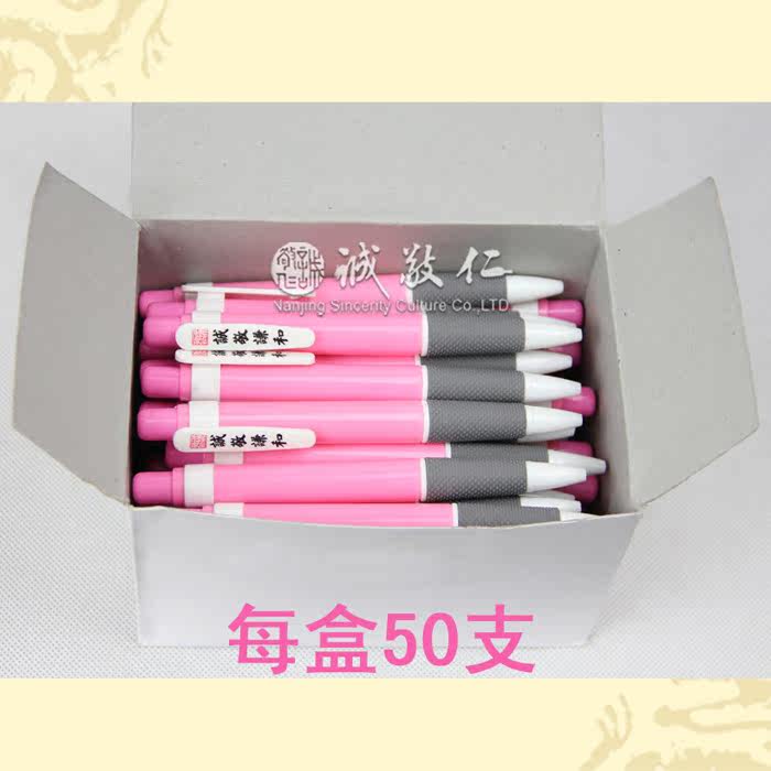 超值优惠盒装,40元50支! 【基本信息】 产品名称:【诚敬谦和】圆珠笔 50支盒装 产品材质:普通塑料+磨砂外壳 产品尺寸:笔长13.5厘米 产品规格:粉红、蓝色两种颜色 笔芯型号:0.7蓝色笔芯 包装规格:50支/盒 产品价格:40元/盒 【产品文化】 诚敬谦和 白话易解:诚敬谦和,即诚恳恭敬谦虚平和,是我们做人处事应有的正确态度,只有做到诚敬谦和我们的道德修养才能更上一层楼,我们的人生才会幸福美满。 【卖家推荐】 1、本款圆珠笔款式大方实用,可以作为传统文化课程学员用品; 2、书写流畅,粉红、蓝色外壳两款可供选择; 3、也可作为学生文具或办公用品,50支一盒起售,超值优惠价! |