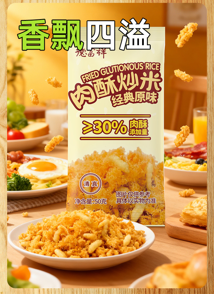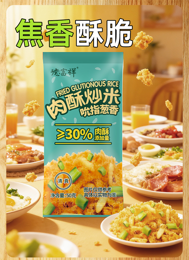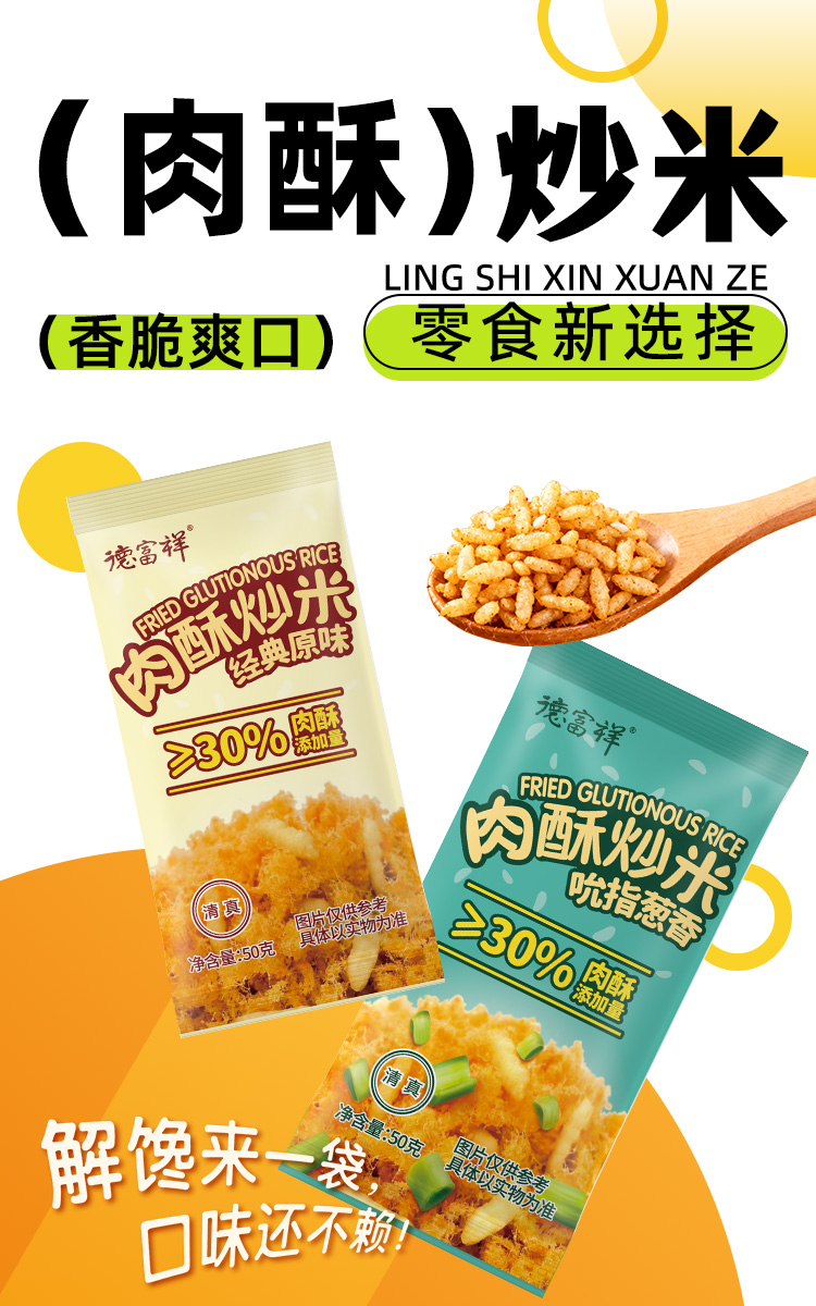 德富祥肉酥炒米清真吮指香葱原味解馋零食散装小袋50g