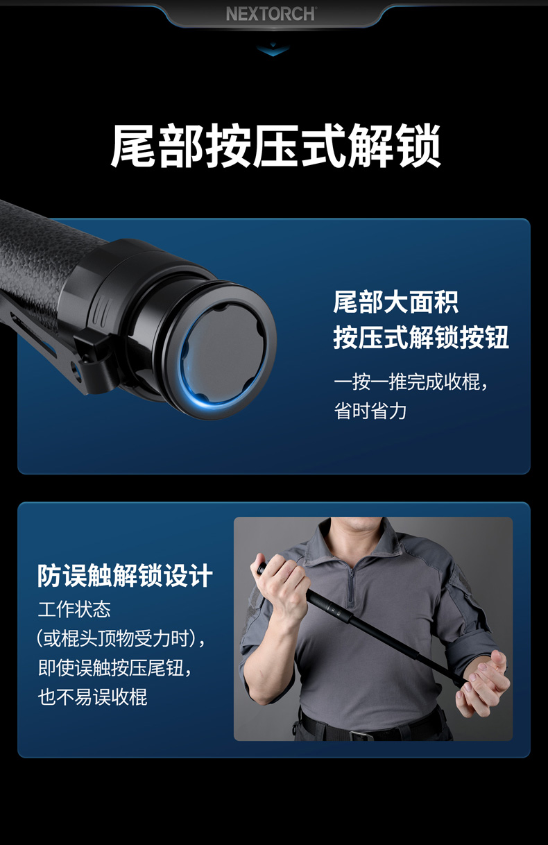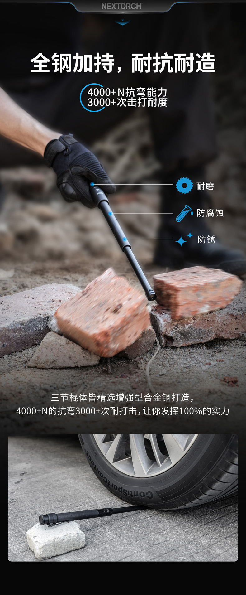 纳丽德(NEXTORCH)NEX18英寸重机伸缩棍车载防身三节机械棍皮手柄