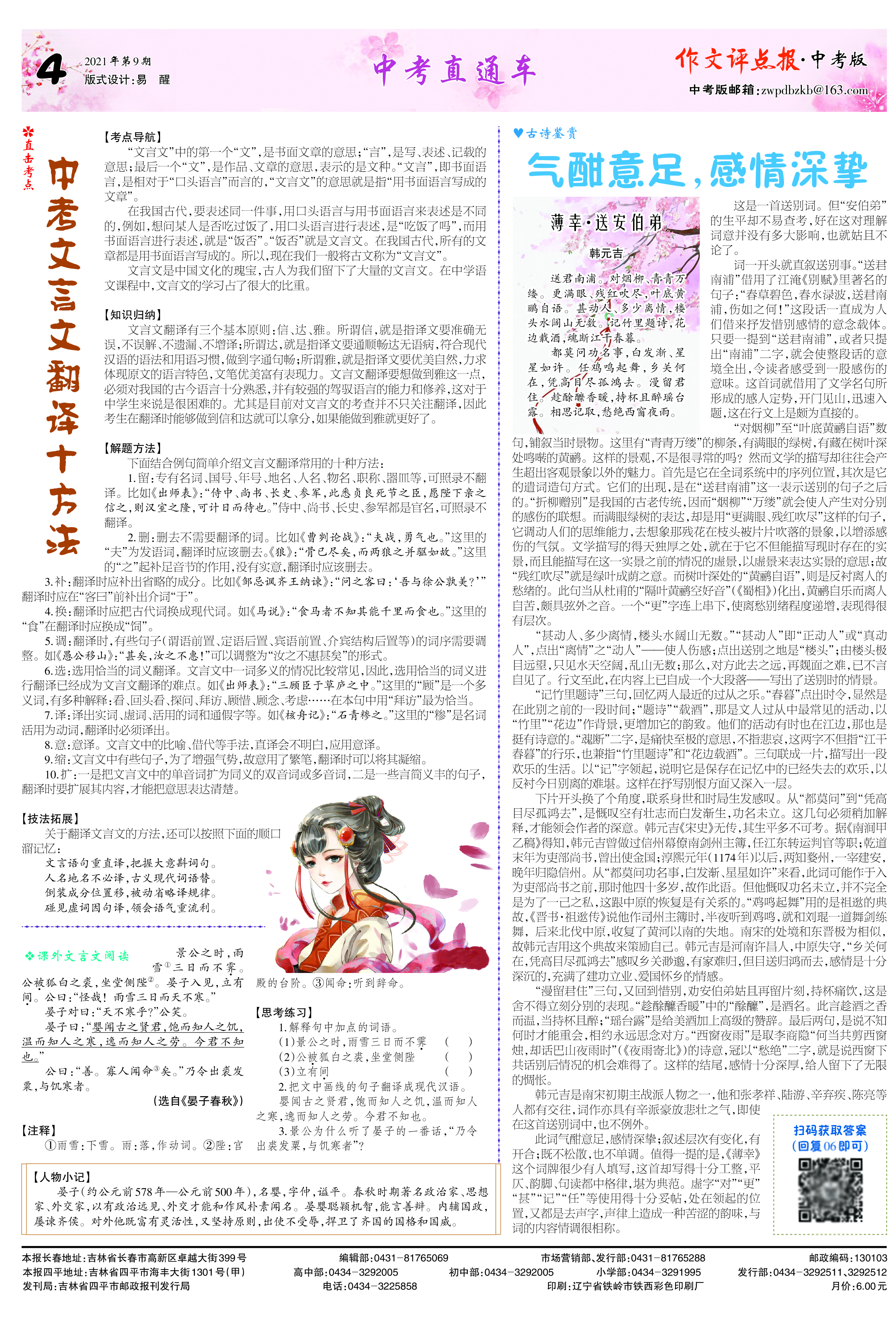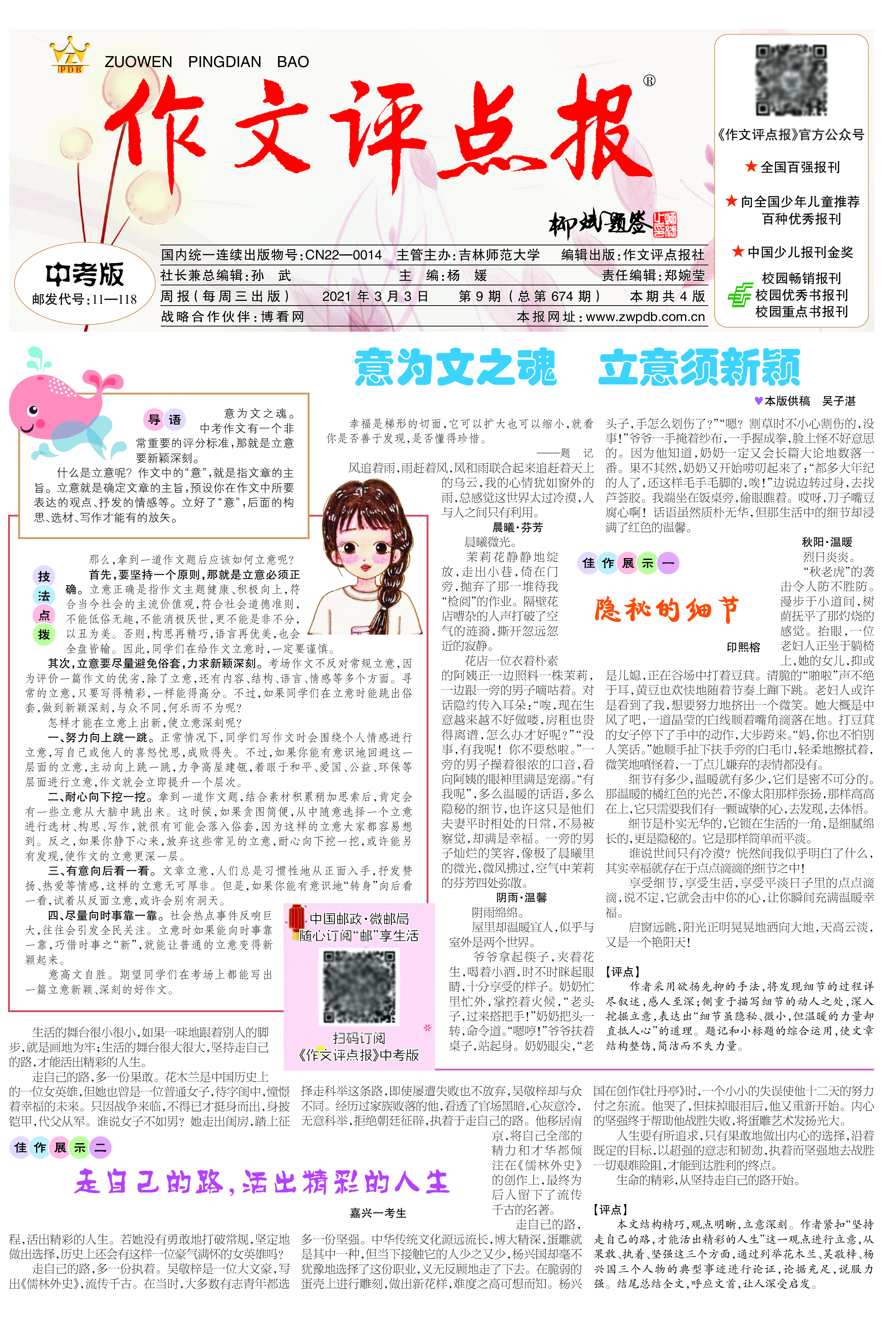 三、增值服务。订阅《作文评点报》,每月可获赠“作文支招”微课、作文素材包或中考、高考考前押题卷等,扫码获取。