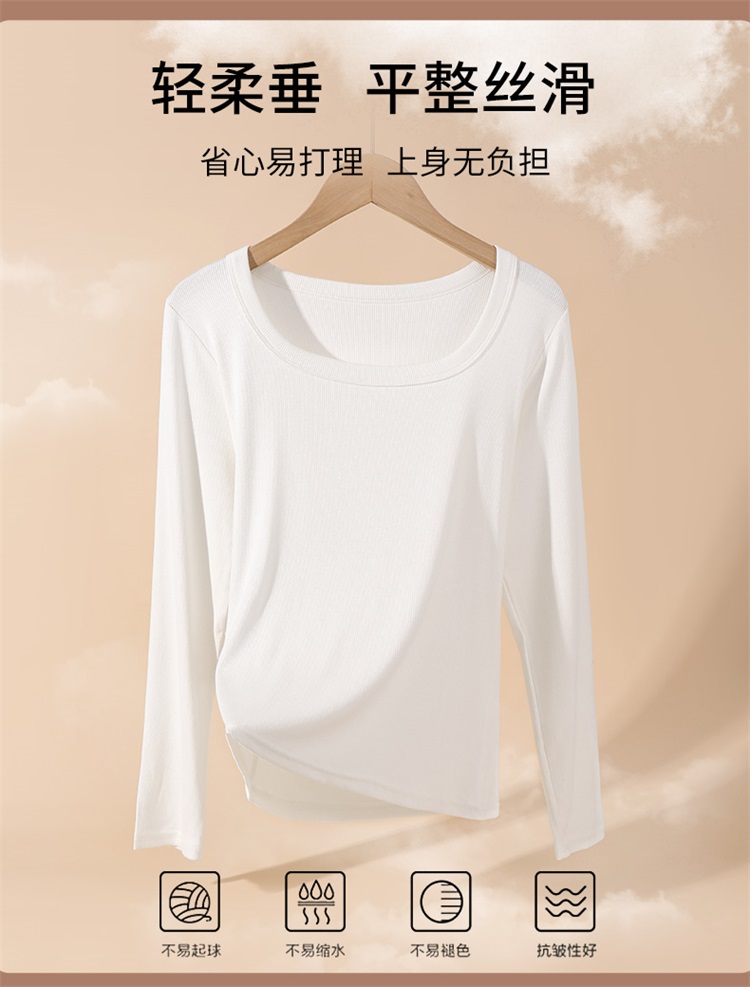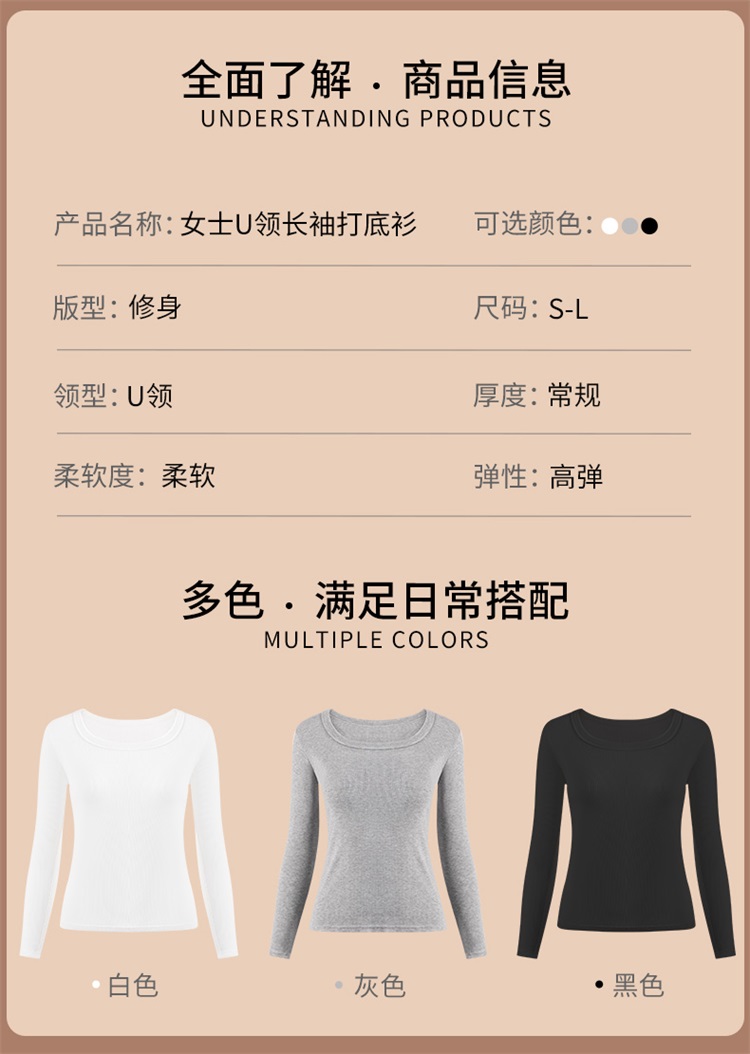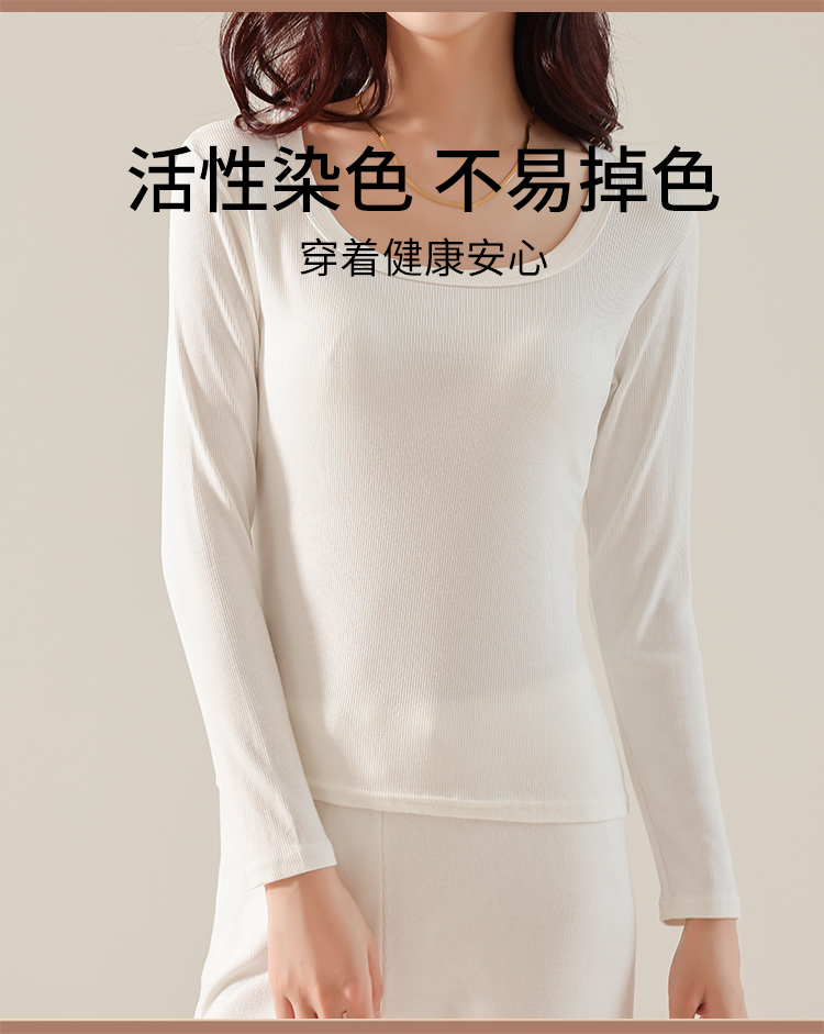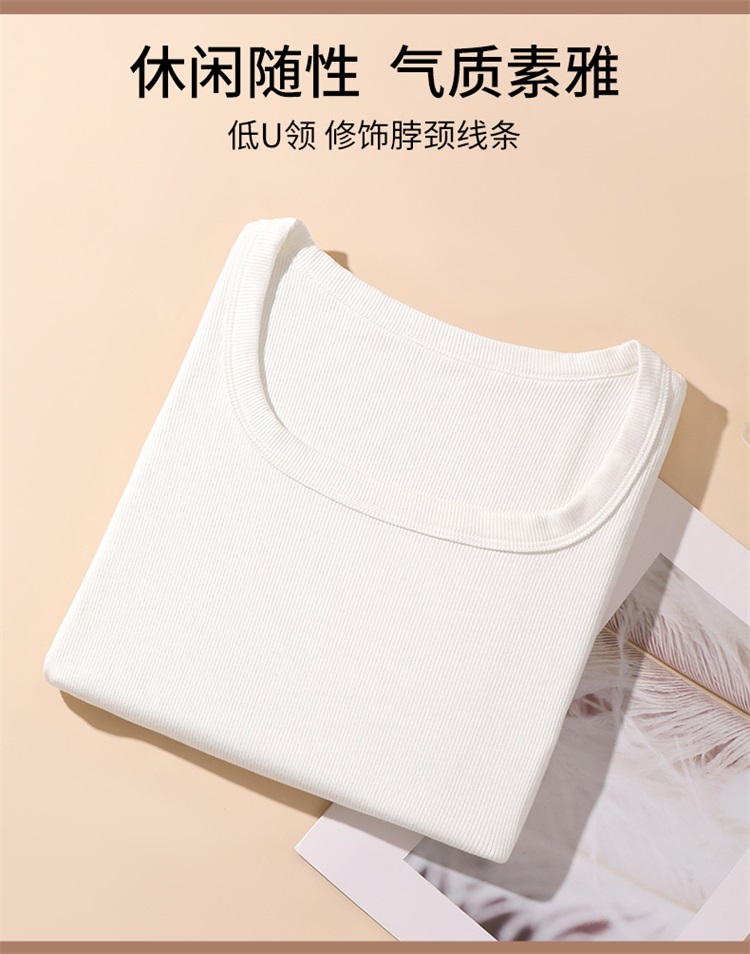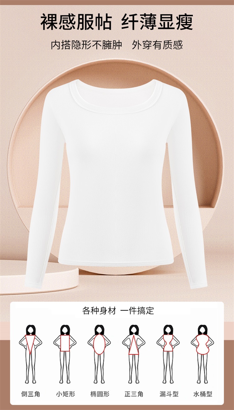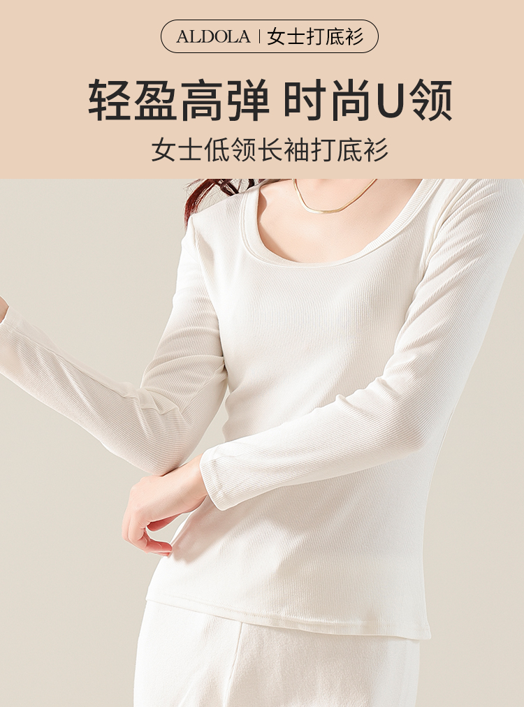 雅黛丽保暖上衣内穿薄款打底衣简约舒适透气圆领高弹保暖内衣女