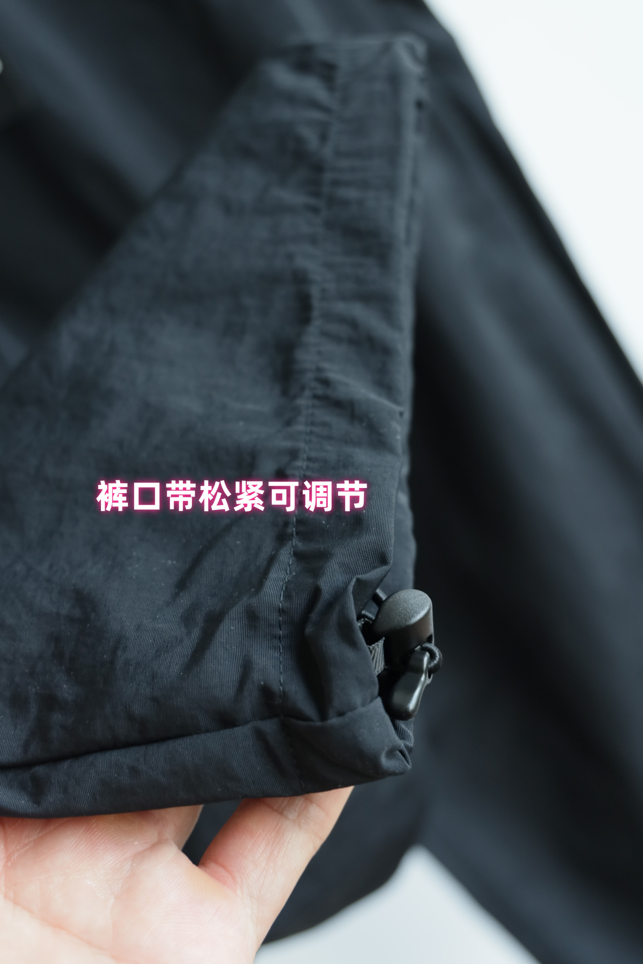 可调脚踝束口:微压抽绳设计,一秒切换束脚/直筒造型,防风防尘,利落有型