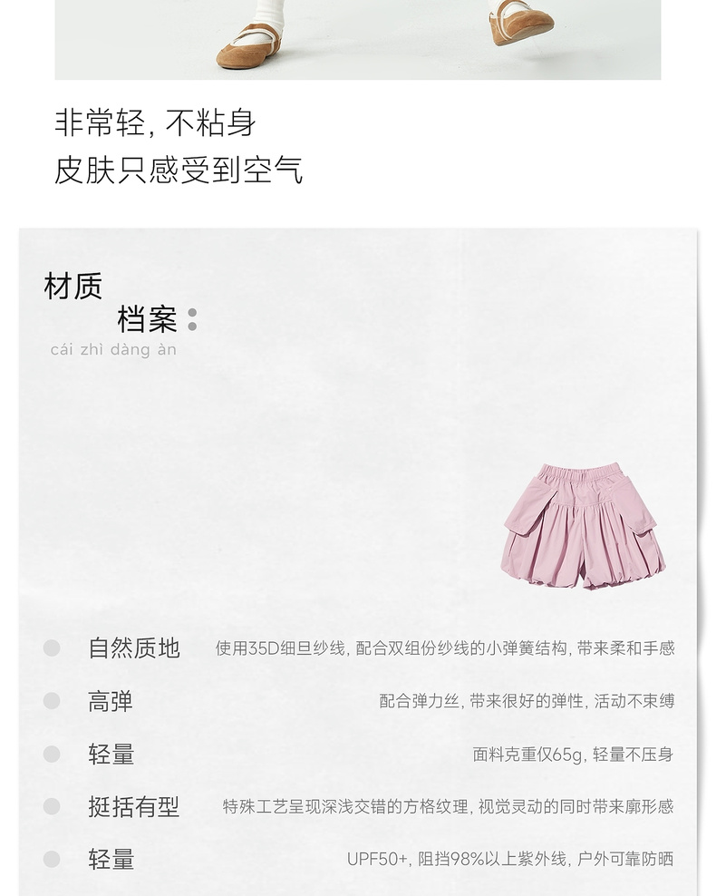 【春Vol.3】allblu幼岚【弹纸 花苞裙裤】女童裤子26春季新品轻量防泼水ZY