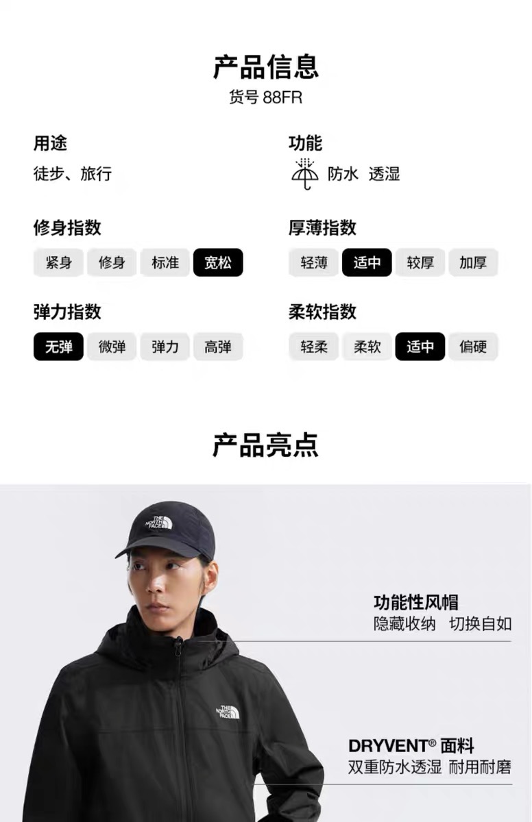 【春上新】6楼The North Face北面经典黑武士普通冲锋衣,吊牌价1498