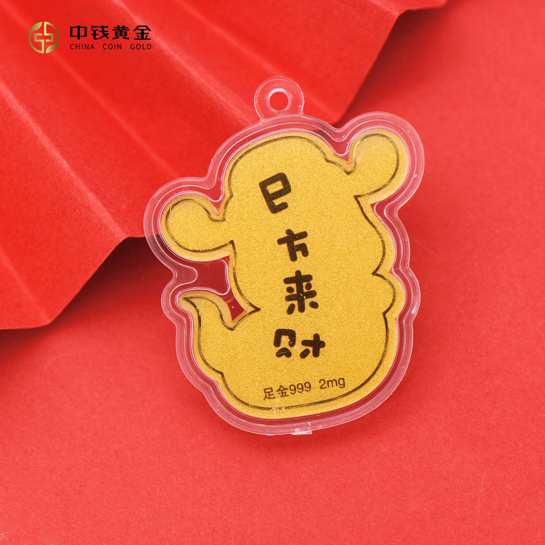 蛇年来财足金999手机贴 2mg 巳方来财 新年红包手机贴 带鉴定证书