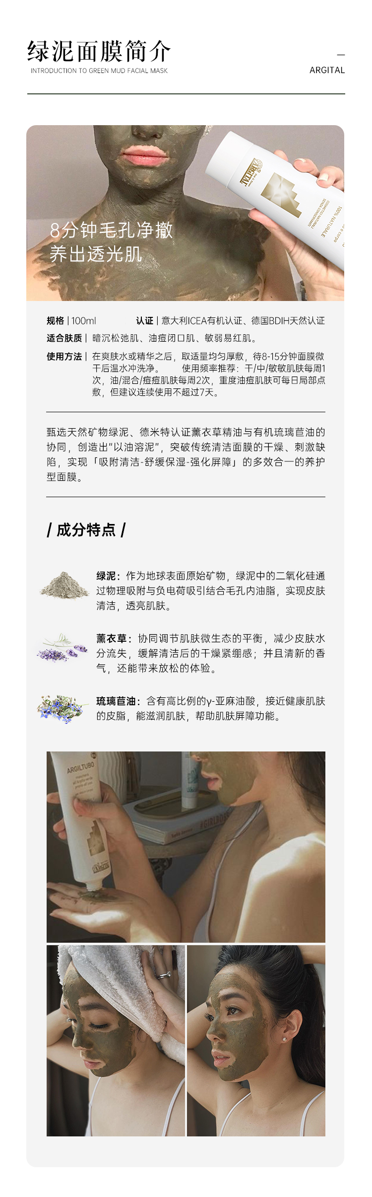 雅琪朵:绿泥面膜 水洗面膜 补水 去黑头粉刺深层清洁