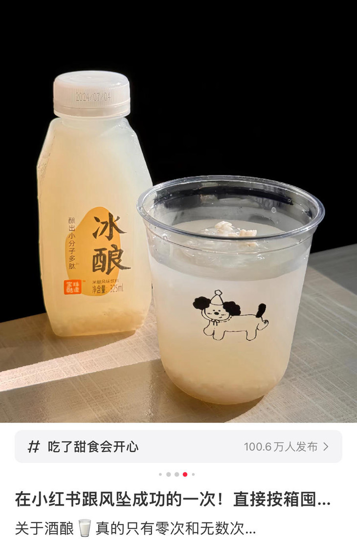 宝珠奶酪家的冰酿,里面是有真实的酒酿哦,用的是五常有机糯米,再有新鲜桂花的加入,经过5天的精心酿造,让香气完美交融,成就独特的甜润米饮,清爽解腻,酸酸甜甜,相当好喝!