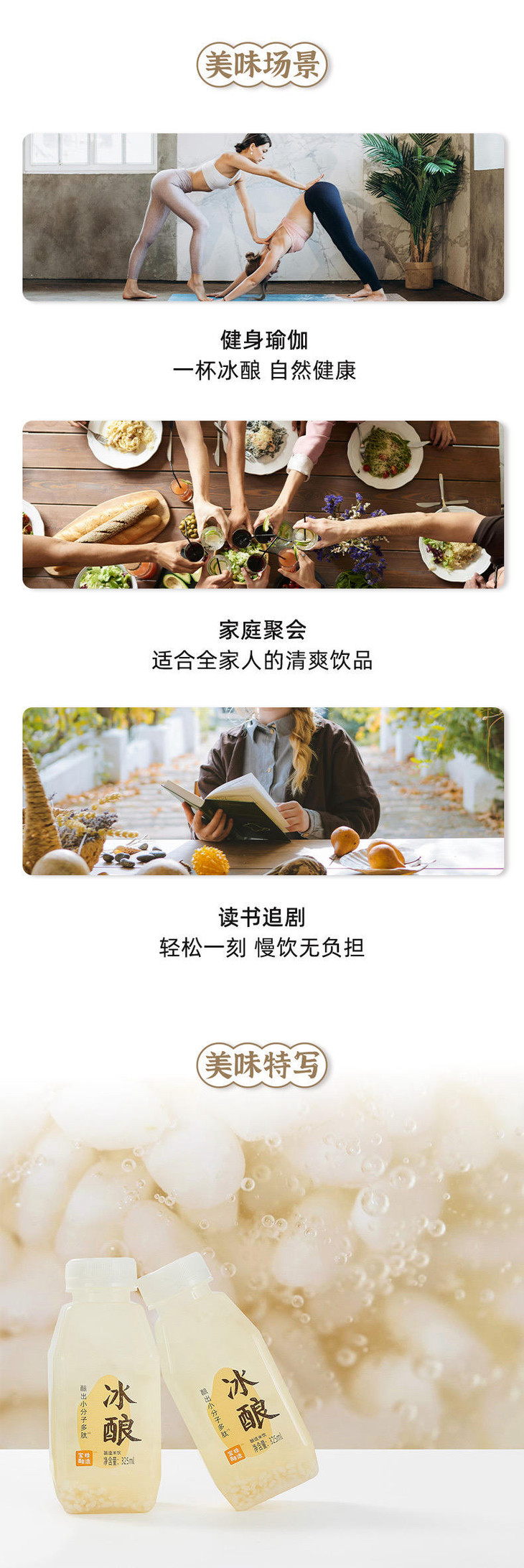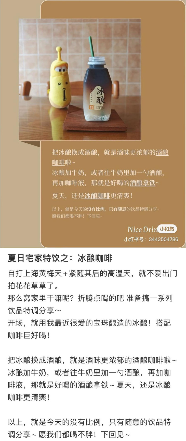 宝珠冰酿是要冷藏的哦,冰冰的更好喝!口感清爽宜人,淡淡的酸甜在舌尖跳跃,解腻又解渴!它没有酒精的刺激,却能让人品尝到酒酿的回味,绵绵的酿米在口中化开,带来独特的满足感,很值得喝喝!直接就很不错,也可以自己加冰,加水味,加咖啡,加茶!