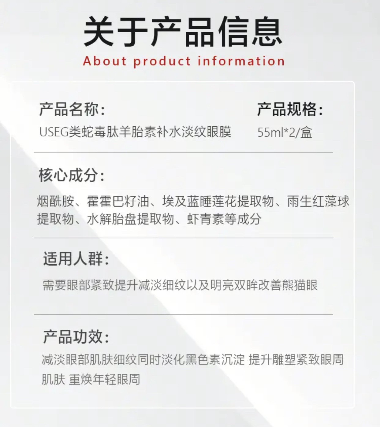 【USEG类蛇毒肽羊胎素补水淡纹眼膜】嫩眼高端局!韦雪同款"胶原蛋白灌注" 补胶原/淡眼纹/保湿锁水/提亮紧致!!