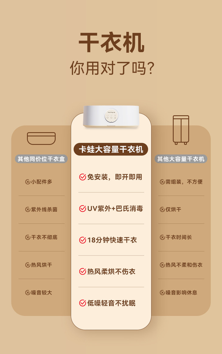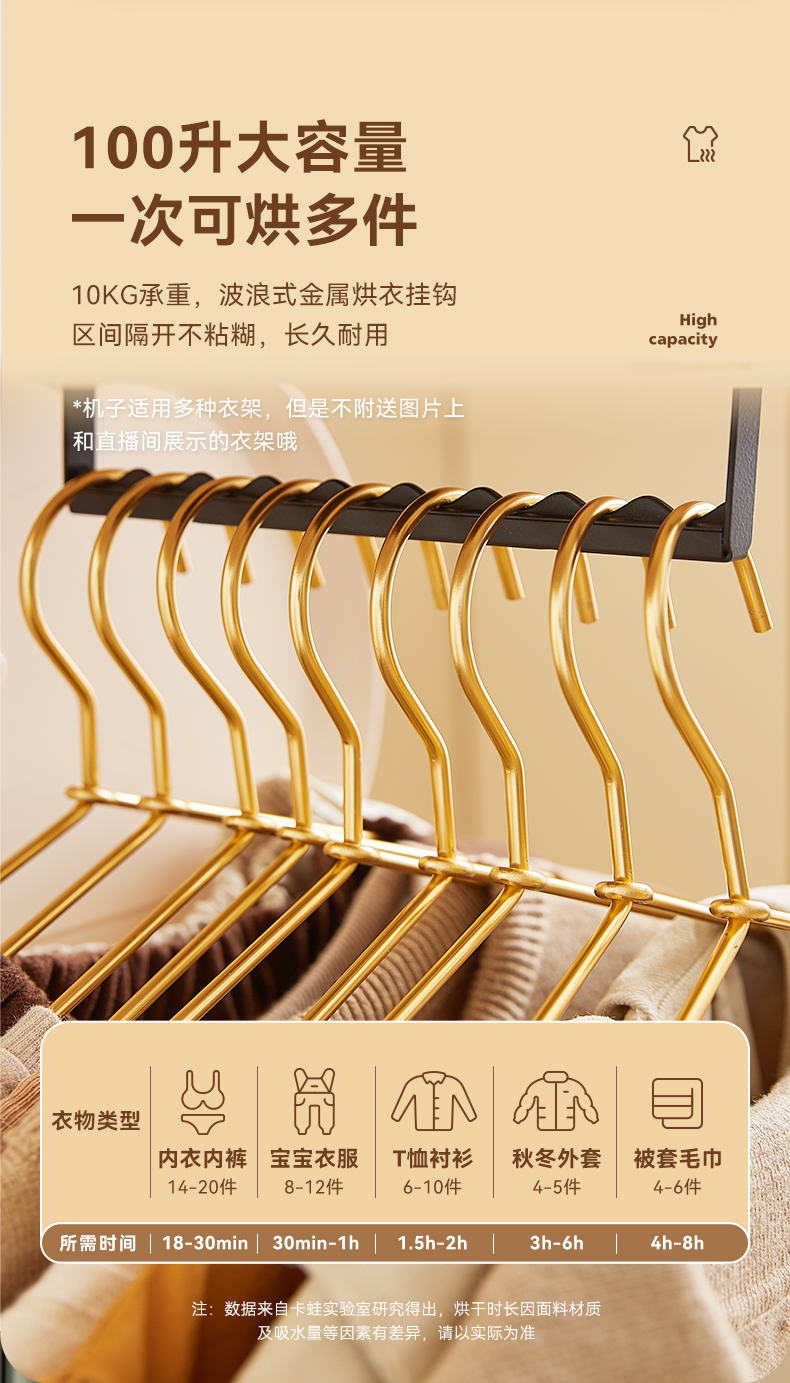 【升级款】卡蛙 衣小宝收纳干衣机 衣物烘干机 双重mie菌 18分钟快速干衣 8H定时 100升大容量 10KG承重