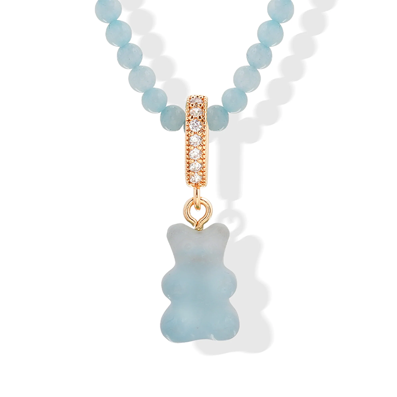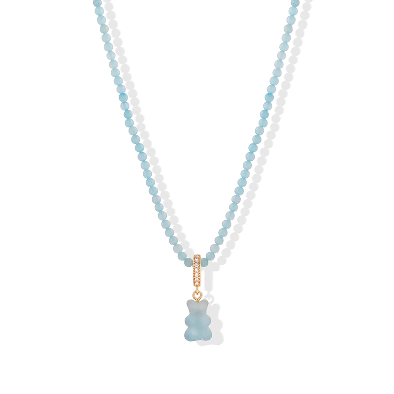 订购4周到|CRYSTAL HAZE-Crystal-pave-海蓝宝小熊 项链(金色环扣)[挪威设计师]