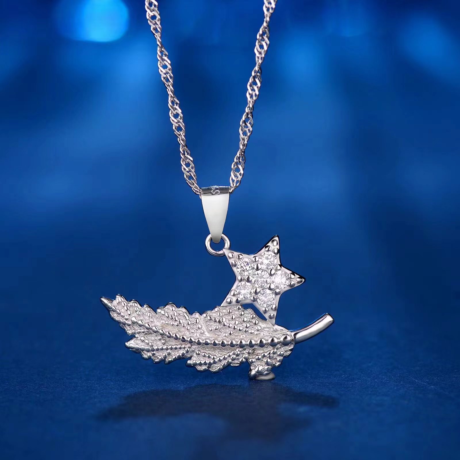 【单叶橄榄枝五星系列】新款925银锆石项链戒指耳钉手镯ss