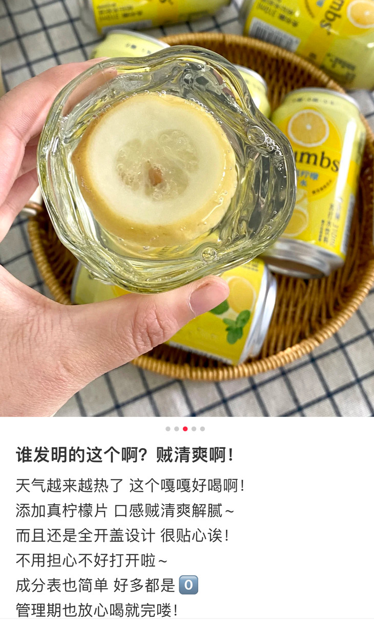 “咔嗒”一声拉环弹起,细密的气泡迫不及待地往上涌,开罐的刹那,真实果香便肆意释放。当嘴唇贴上瓶口,裹挟着柠檬香的气流感直冲喉咙,瞬间唤醒昏沉的神经,酸甜中带着一点点新鲜柠檬皮和籽特有的微苦感,新鲜!带上露营徒步钓鱼,和朋友小聚,或是健身后大汗淋漓时来一罐,真的爽,连控糖期,也能毫无顾忌!还可以随心调成鸡属酒,做成鲜柠苏打美式,也是惬意又自在哦!