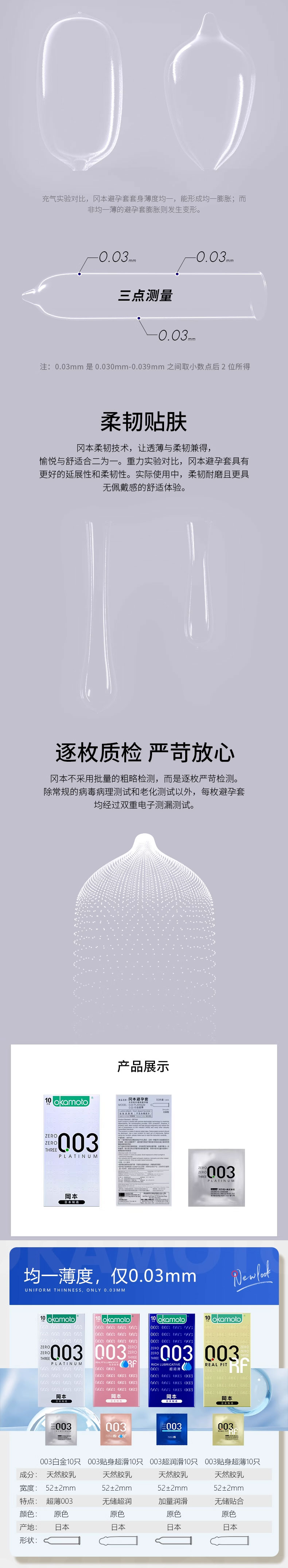 【白金003超薄】冈本OK避孕套0.03白金超薄 10片装/6片装/3片装安全套 男女计生用品套套