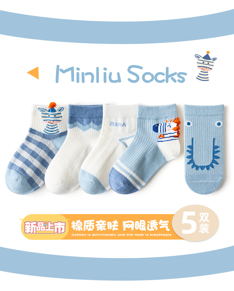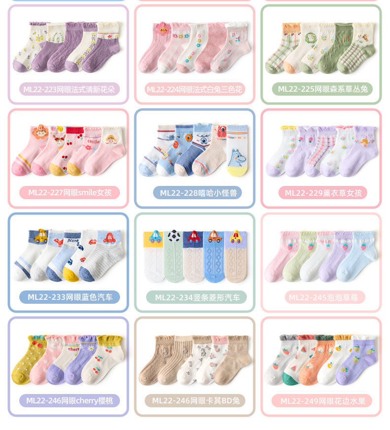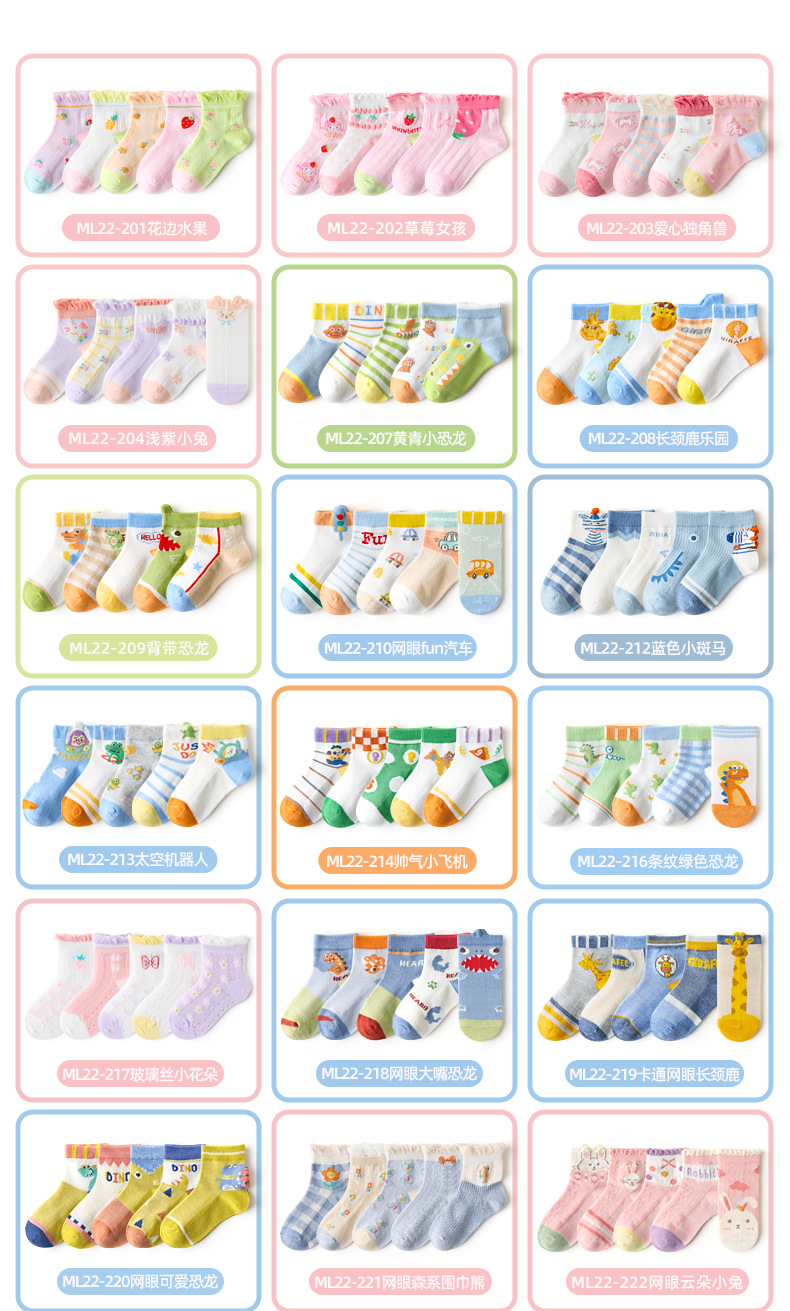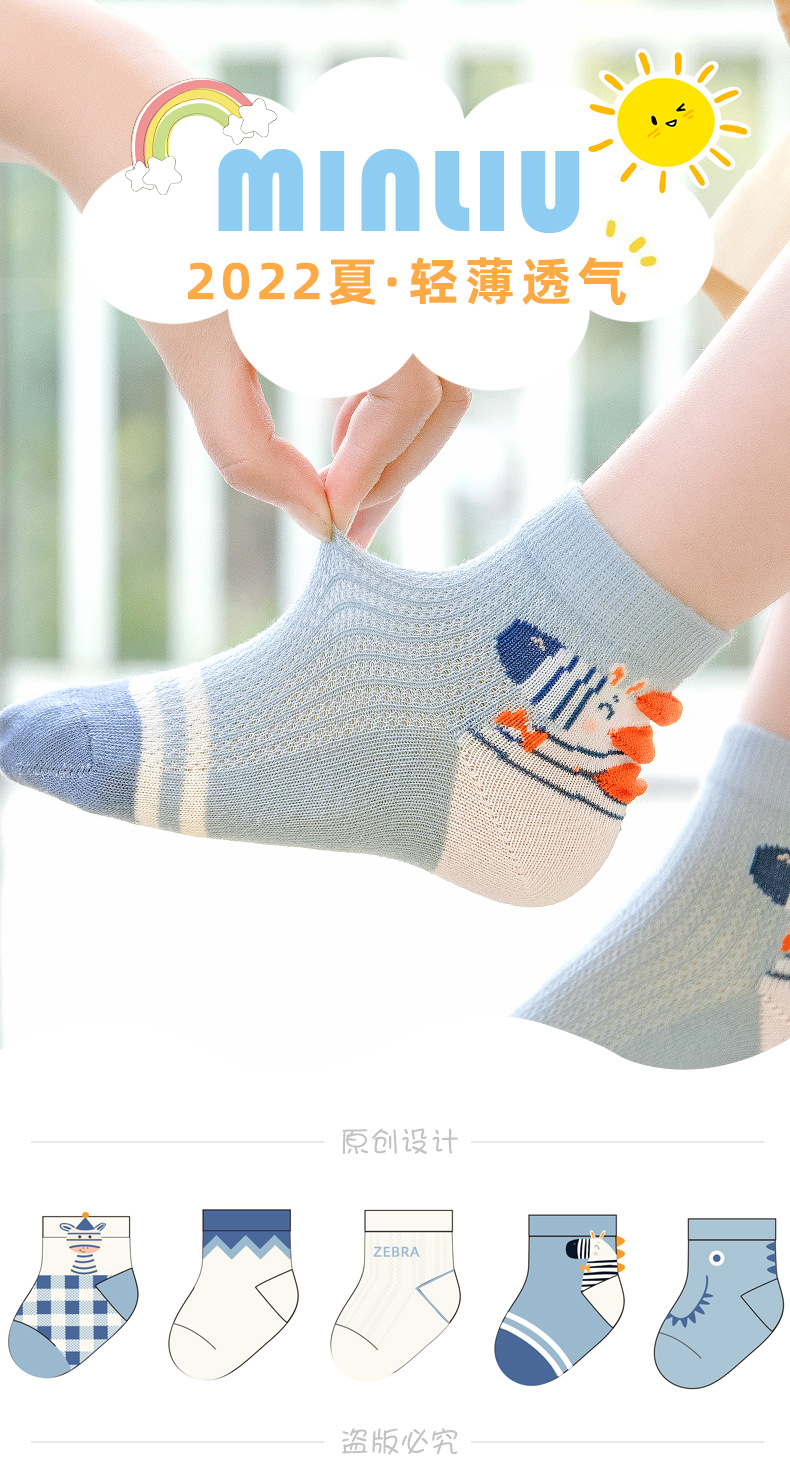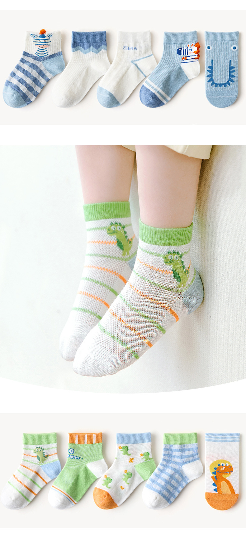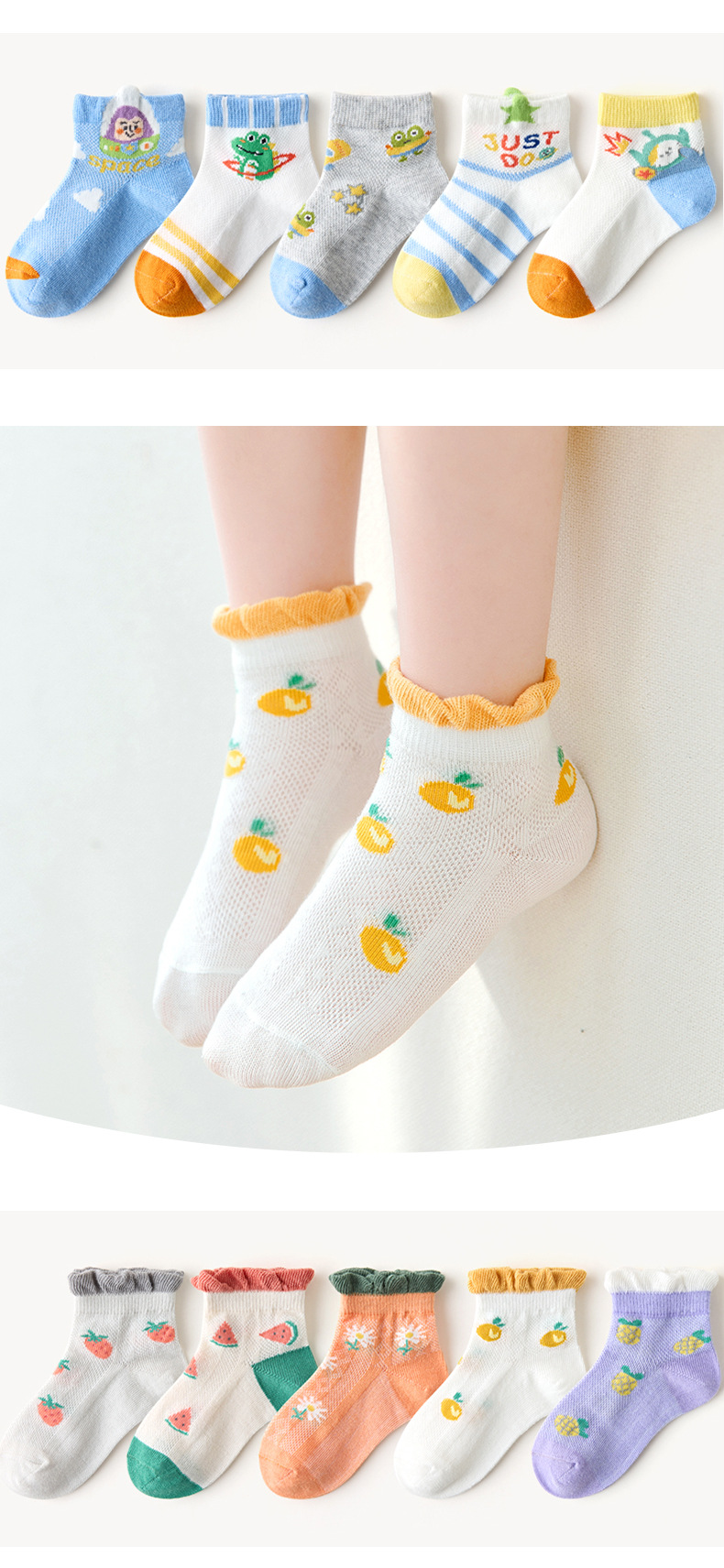 【5双装 棉质亲肤 网眼透气】A类宝宝袜子春夏网眼轻薄吸汗童袜1-12岁中大童棉袜儿童袜子