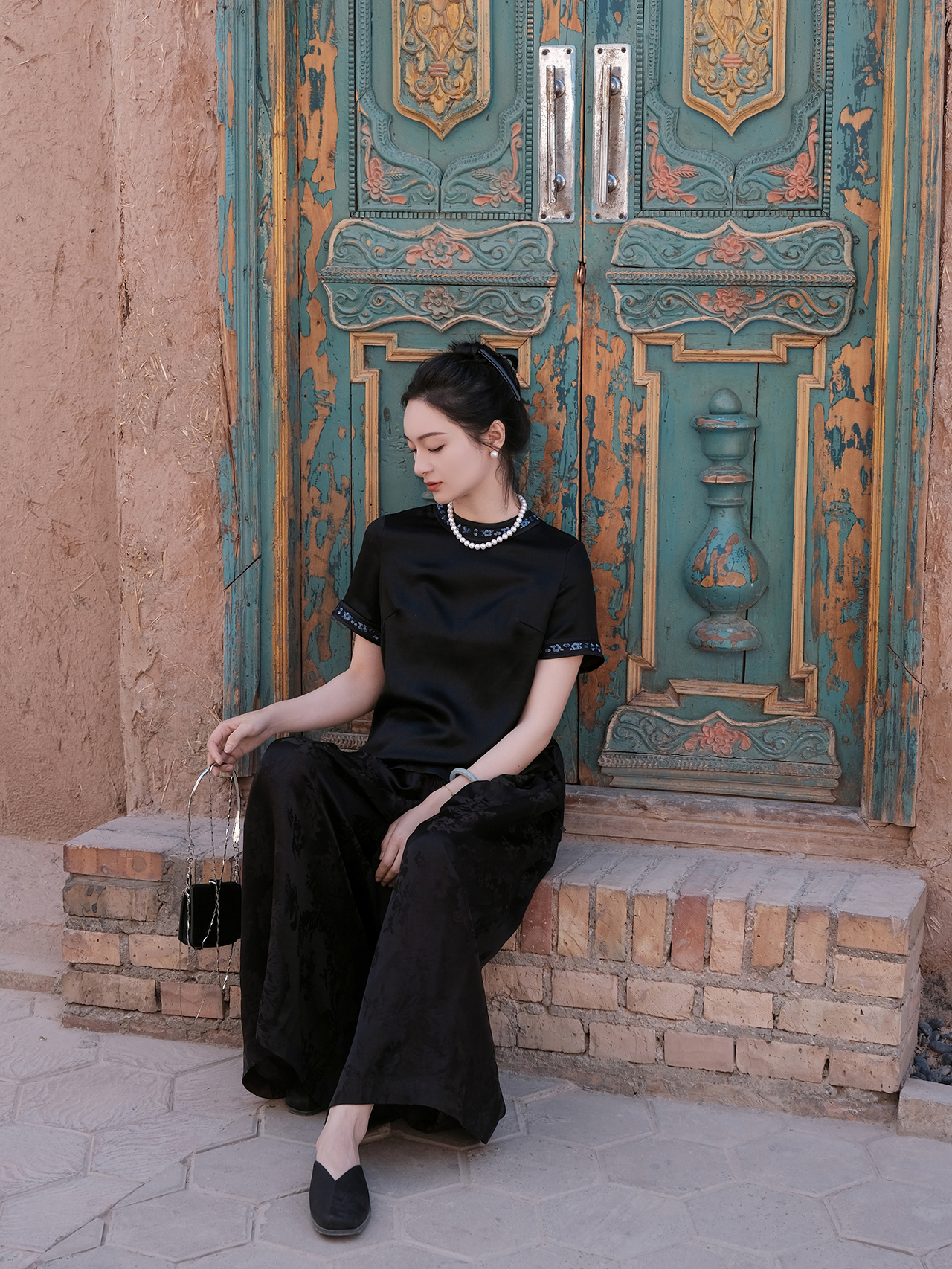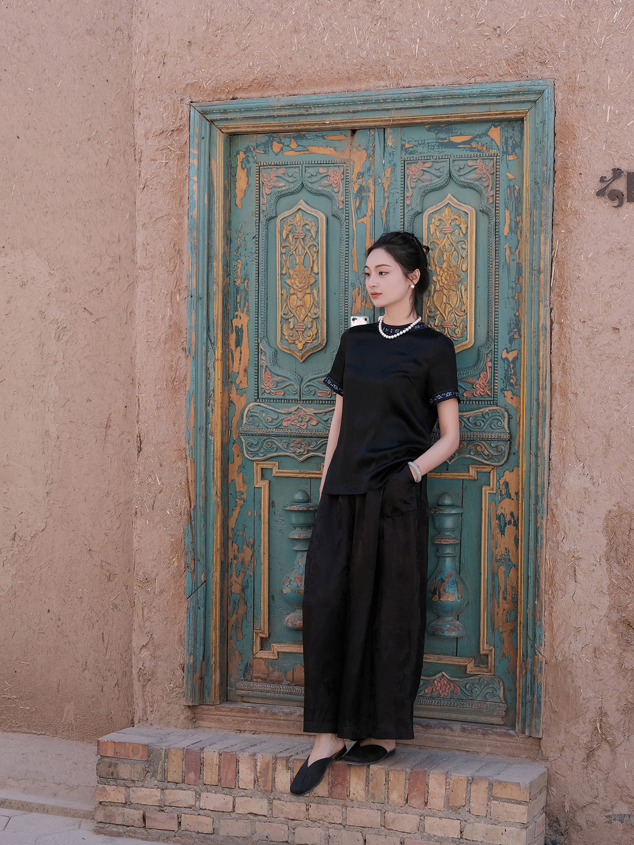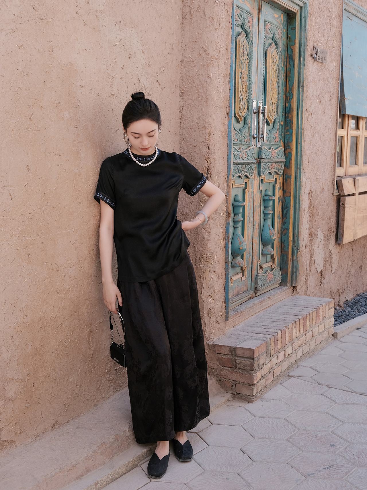 盛唐牡丹 | 真丝绸缎圆领上衣