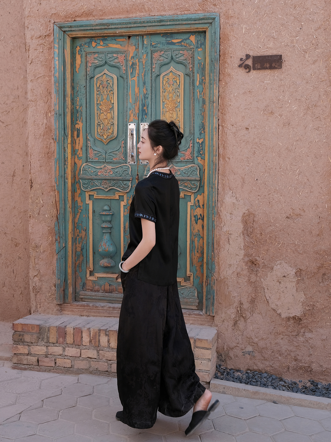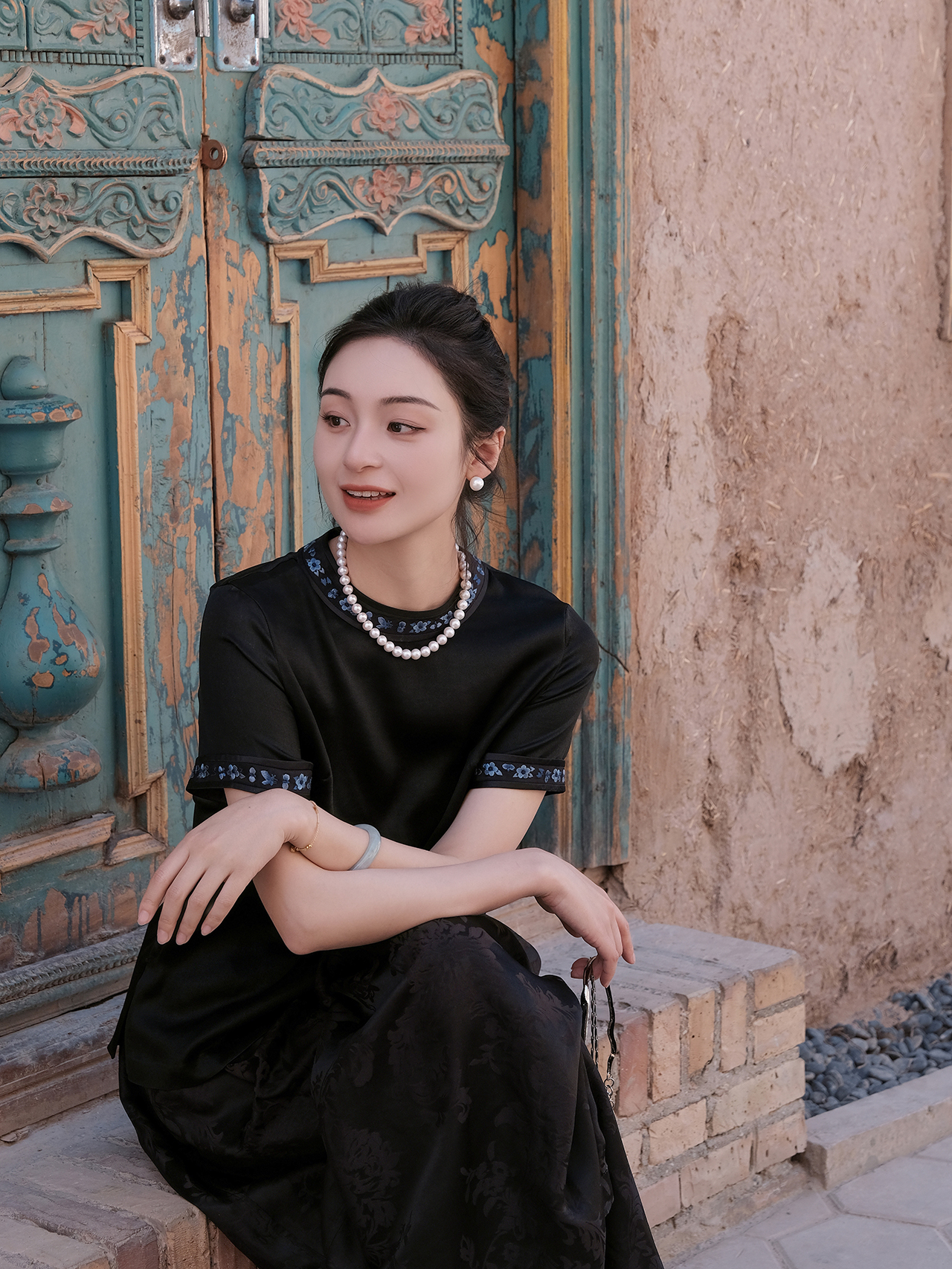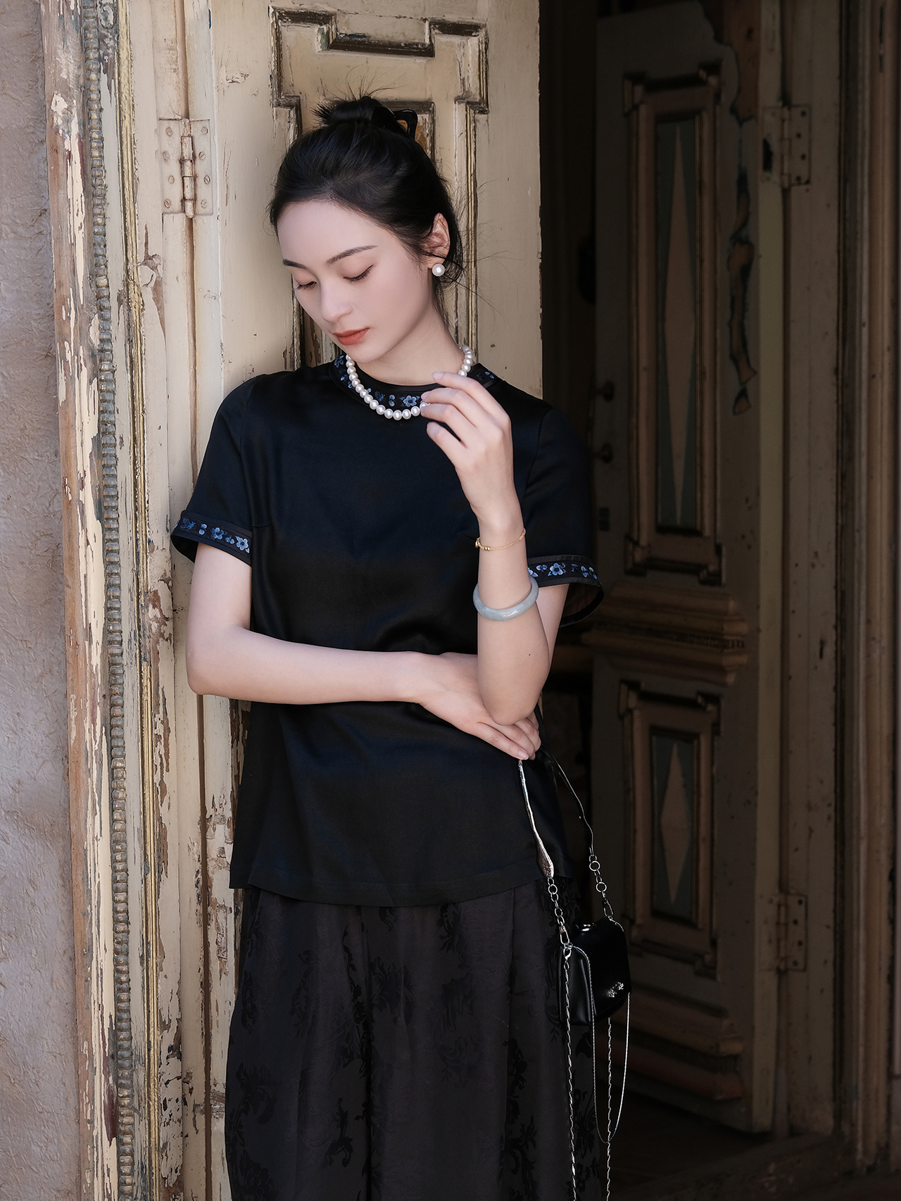 盛唐牡丹 | 真丝绸缎圆领上衣