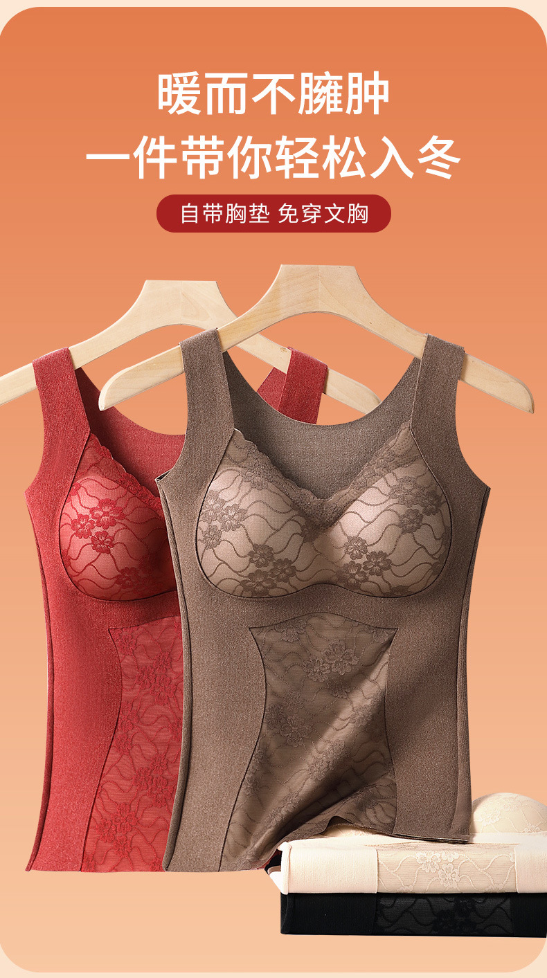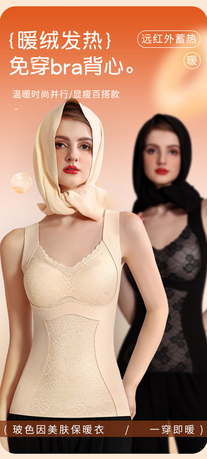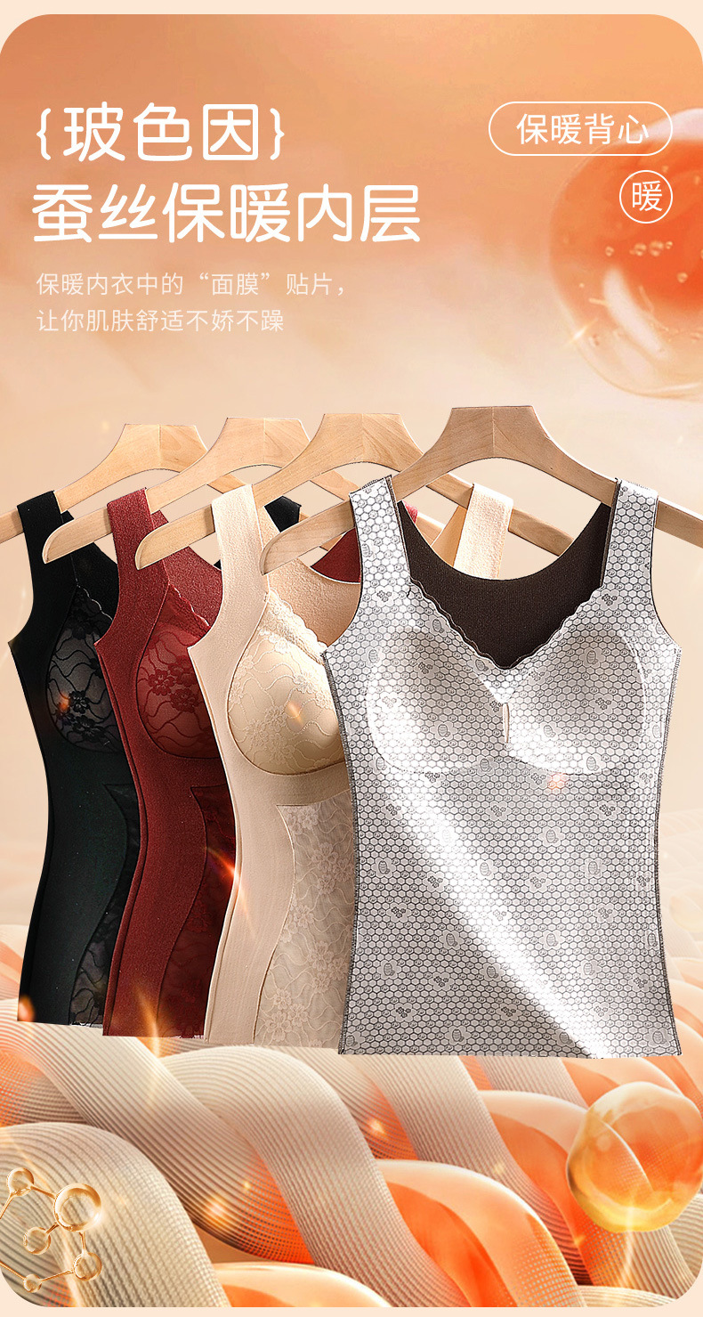 【暖绒发热❗️玻色因美肤保暖背心】桑蚕丝润养+绵羊毛,自带胸垫,免穿内衣文胸垫,超舒服❗️女冬上衣内穿内衣加厚德绒打底秋衣