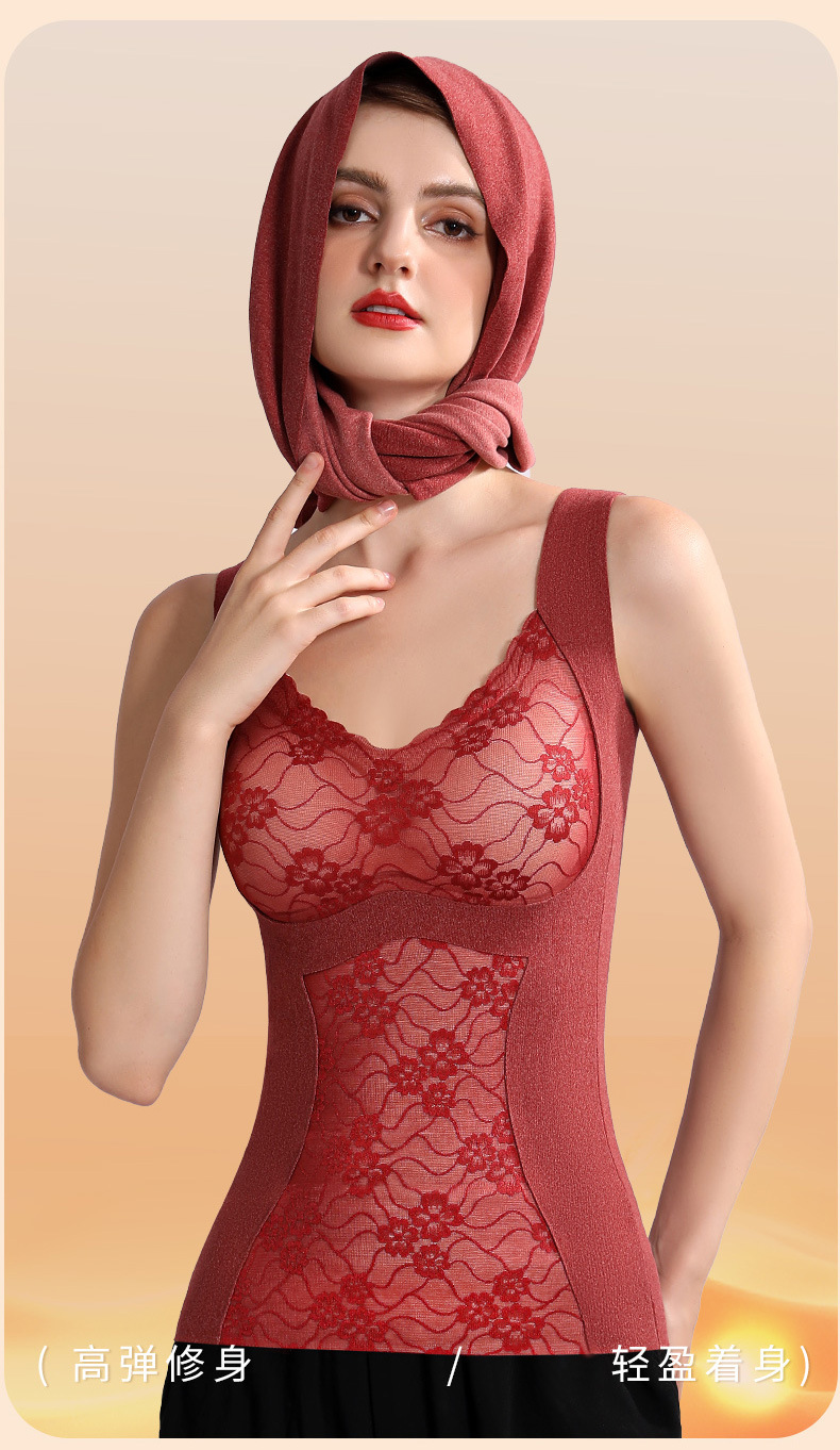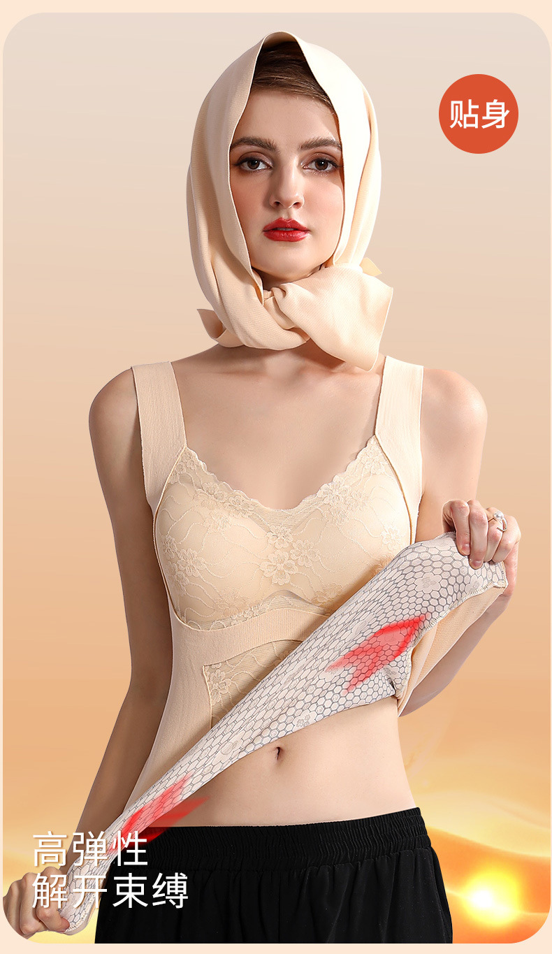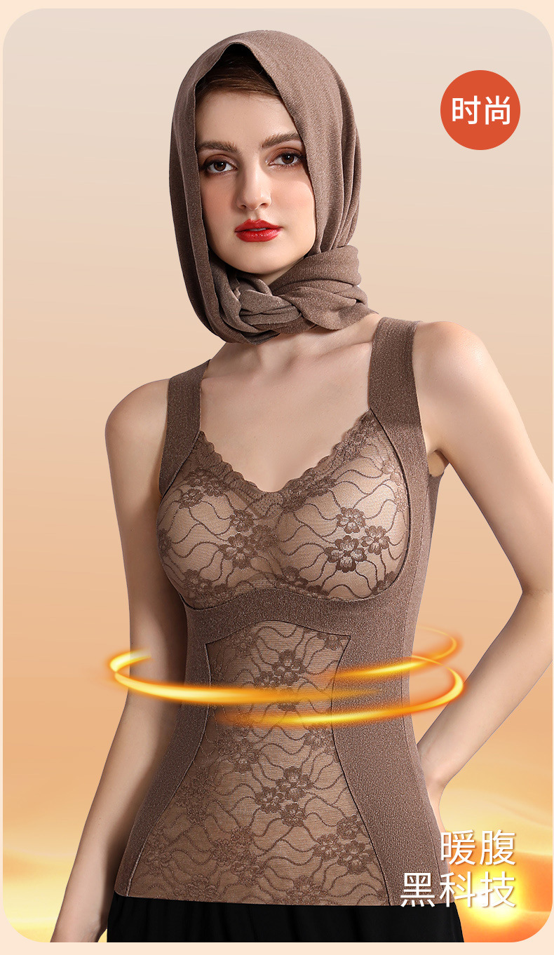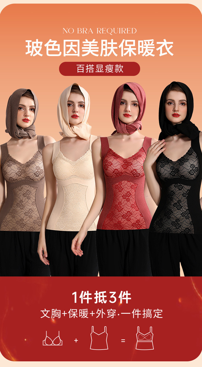 【暖绒发热❗️玻色因美肤保暖背心】桑蚕丝润养+绵羊毛,自带胸垫,免穿内衣文胸垫,超舒服❗️女冬上衣内穿内衣加厚德绒打底秋衣
