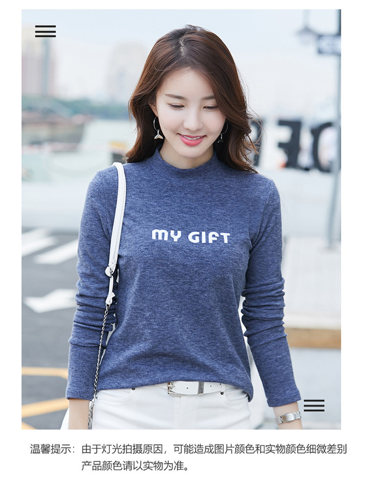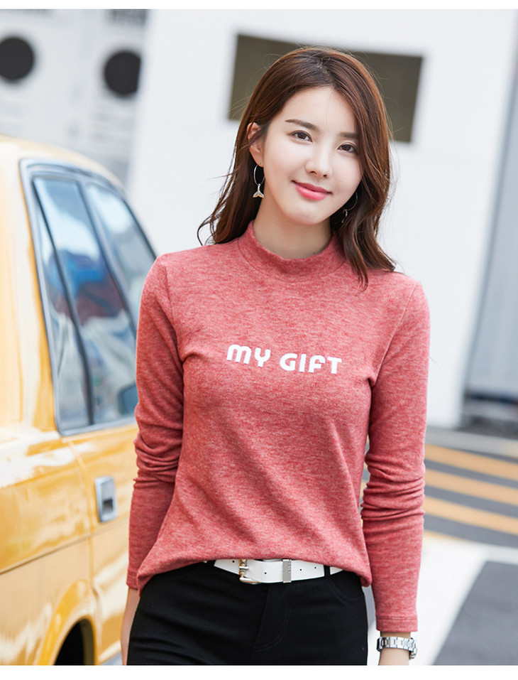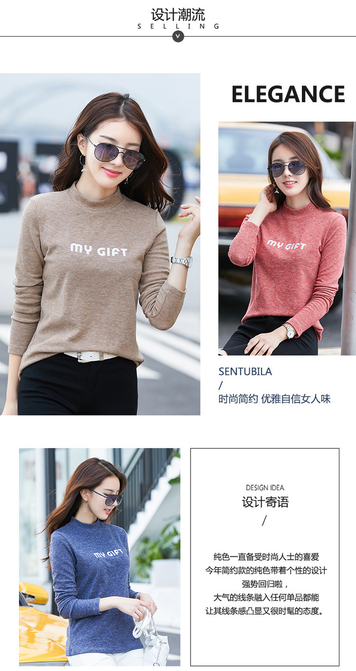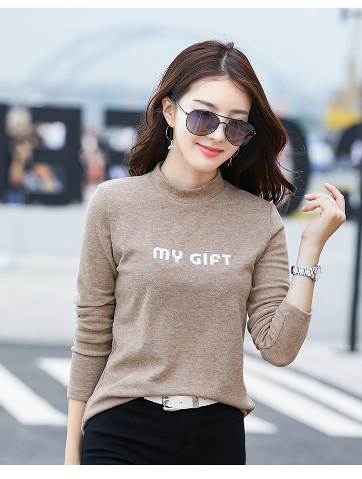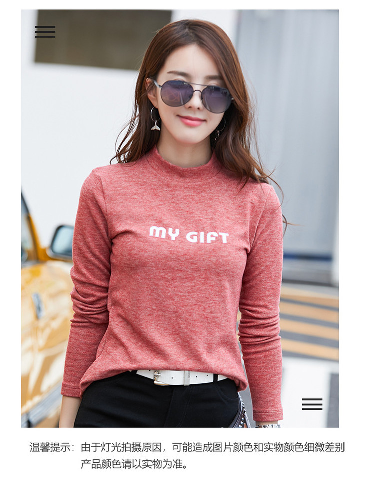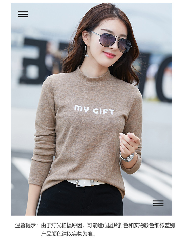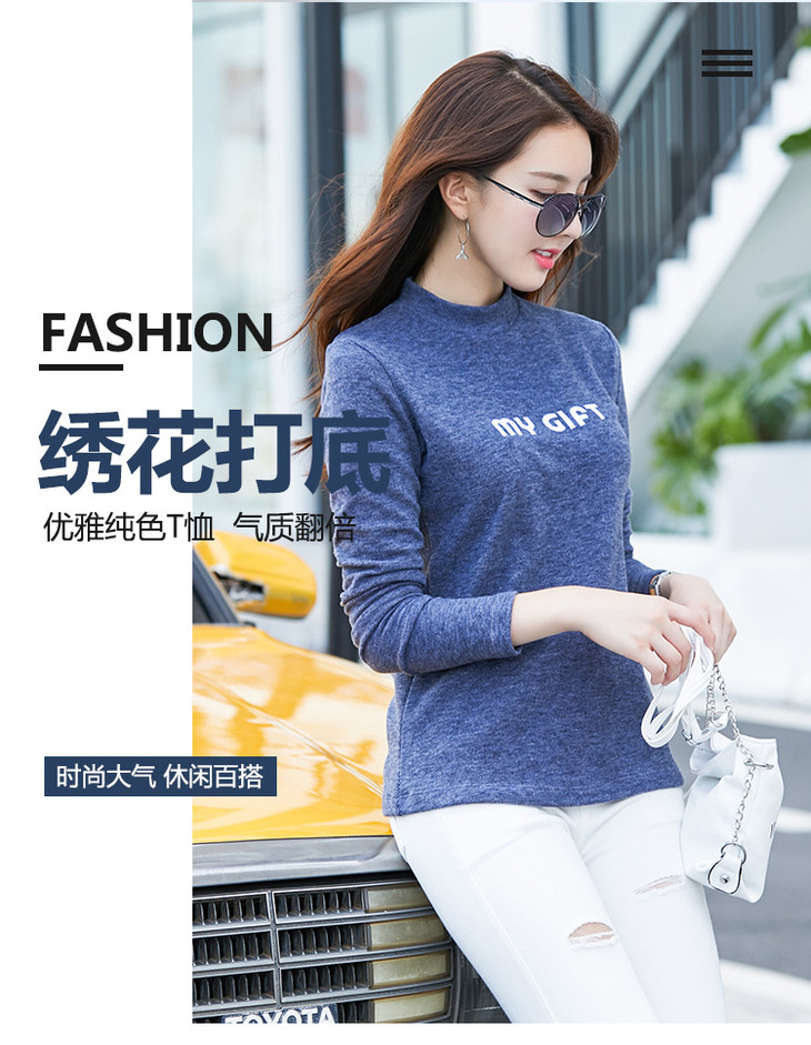 【服饰鞋包】.半高领打底衫长袖T恤女时尚百搭秋冬加绒舒适大码绣花上衣