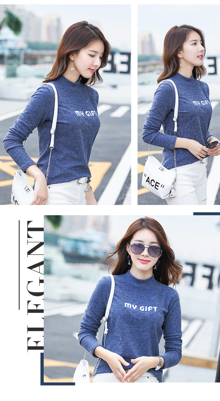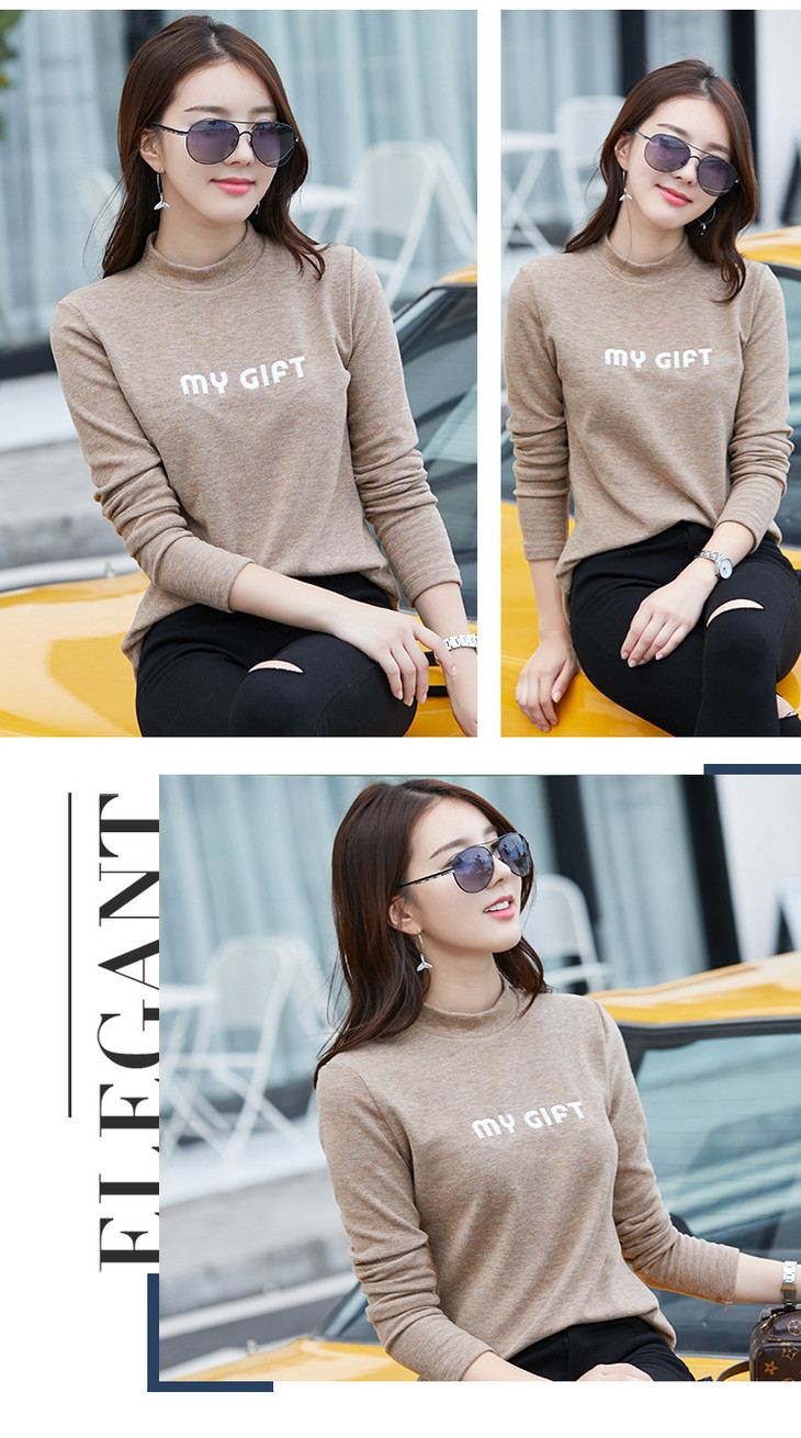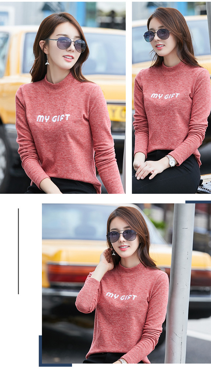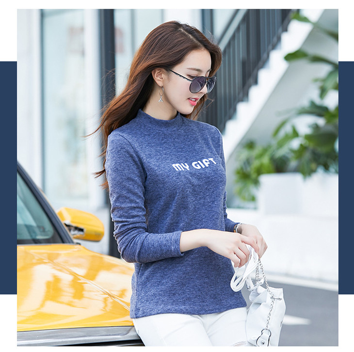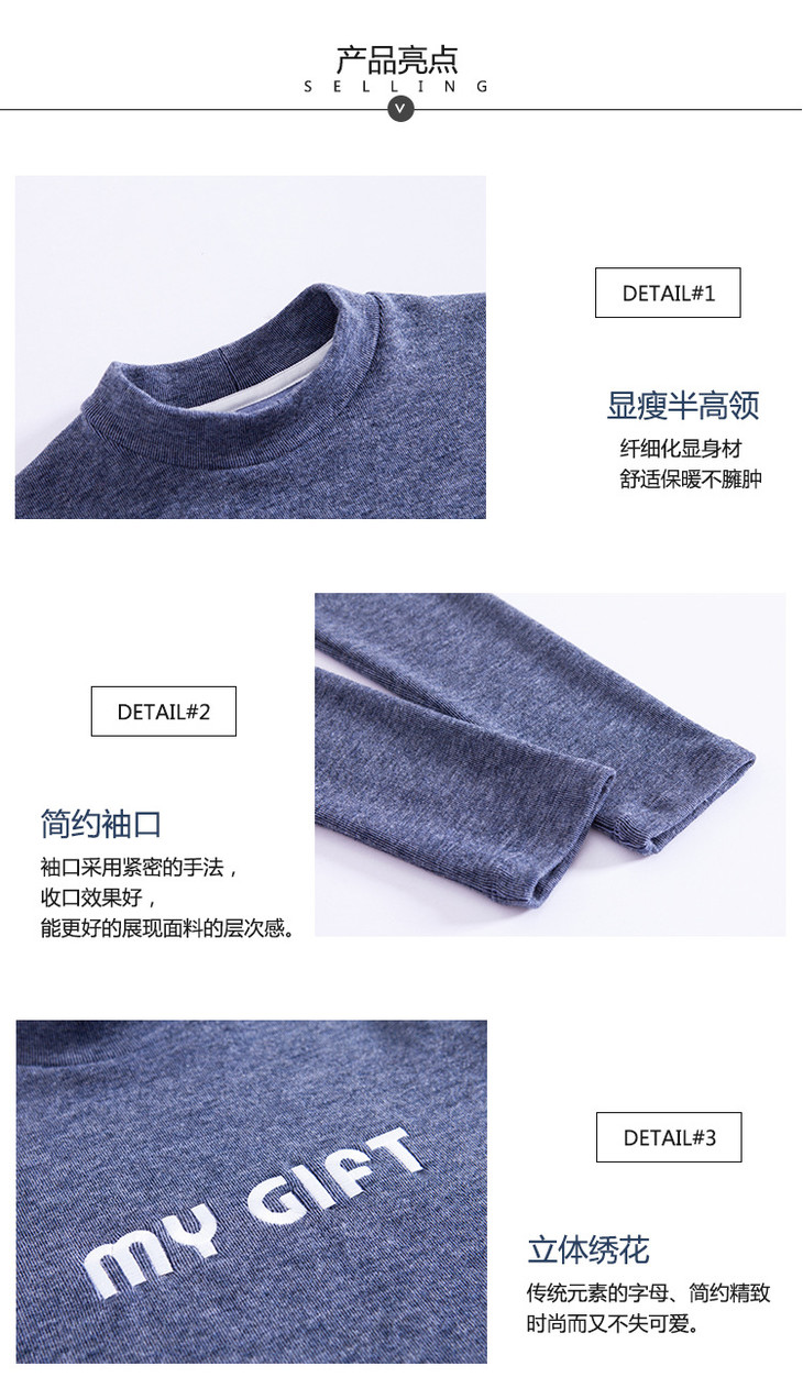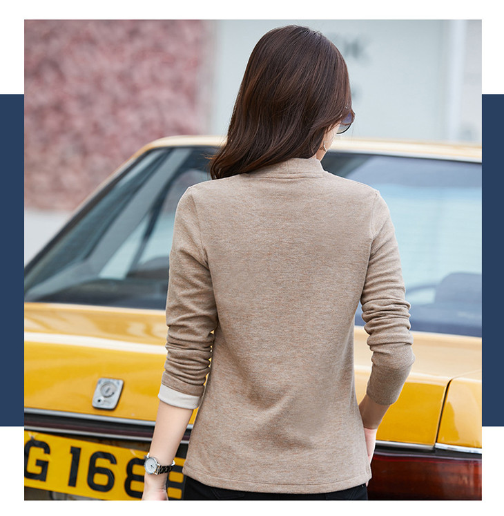 【服饰鞋包】.半高领打底衫长袖T恤女时尚百搭秋冬加绒舒适大码绣花上衣