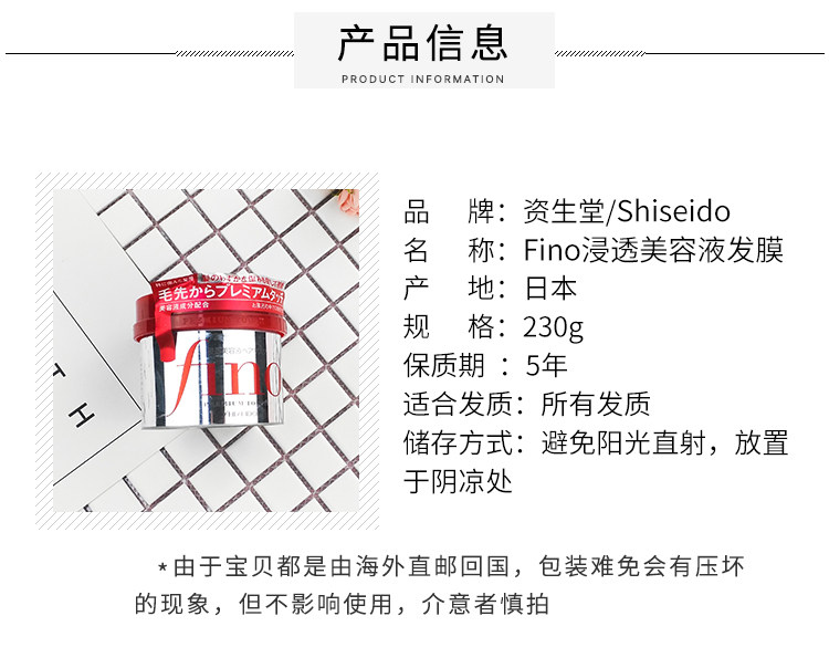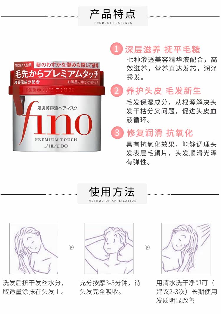 日本 Shiseido资生堂 Fino渗透护发膜230g 护发素 柔顺保湿
