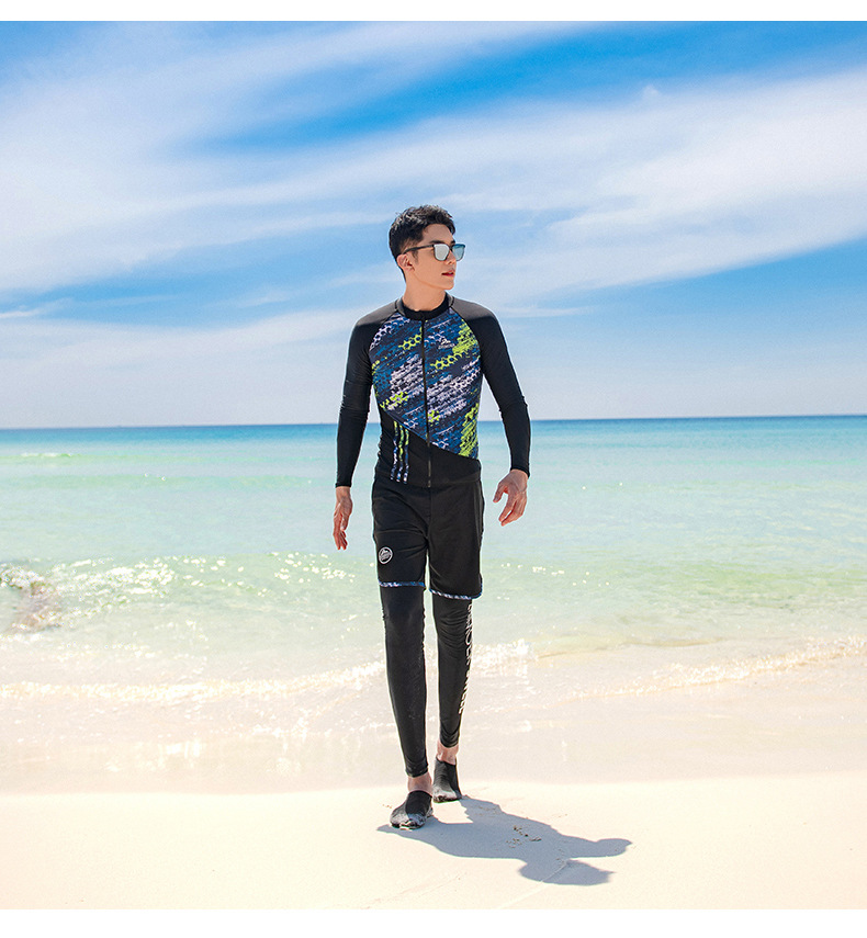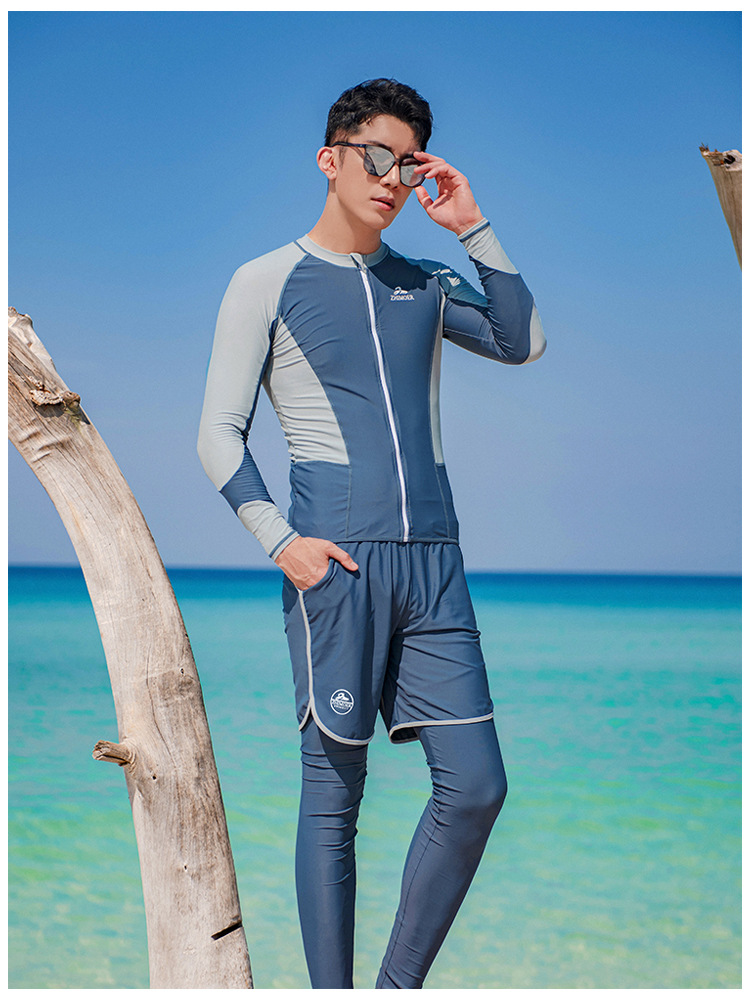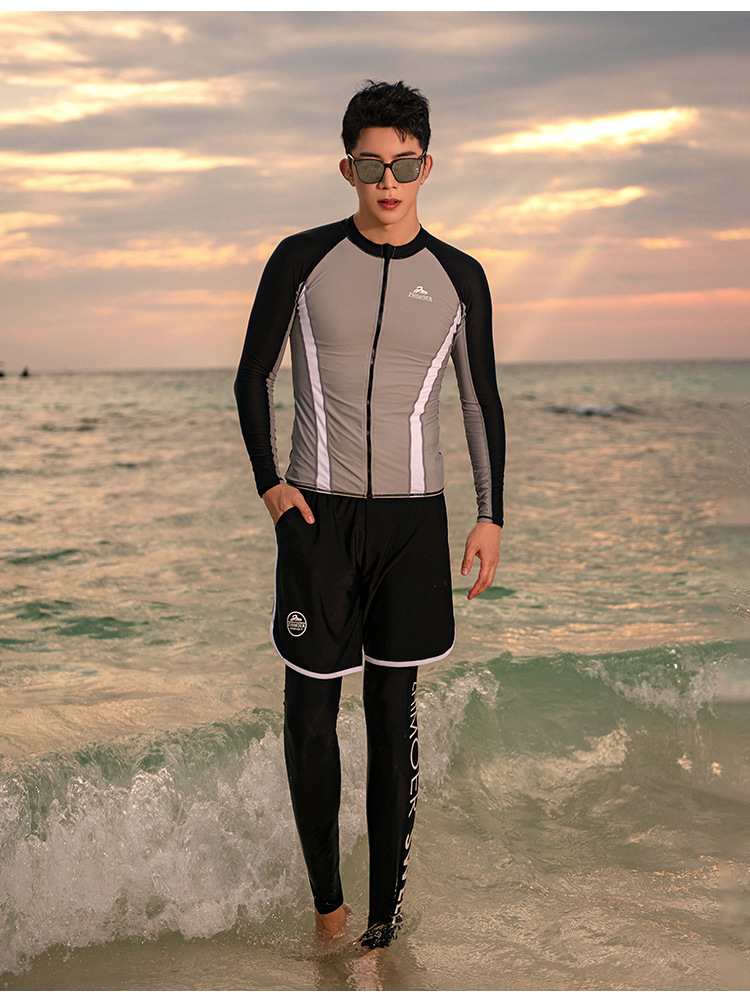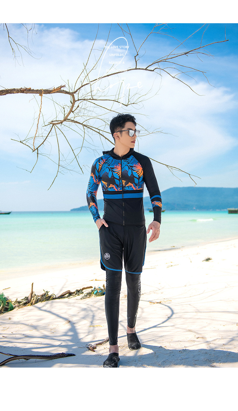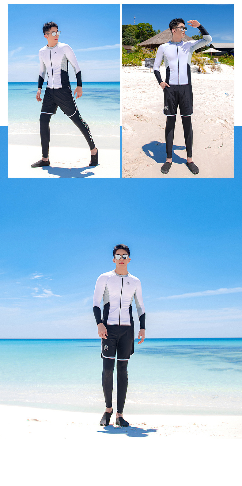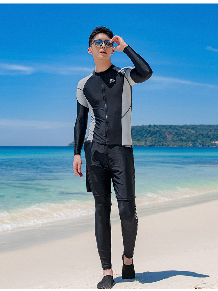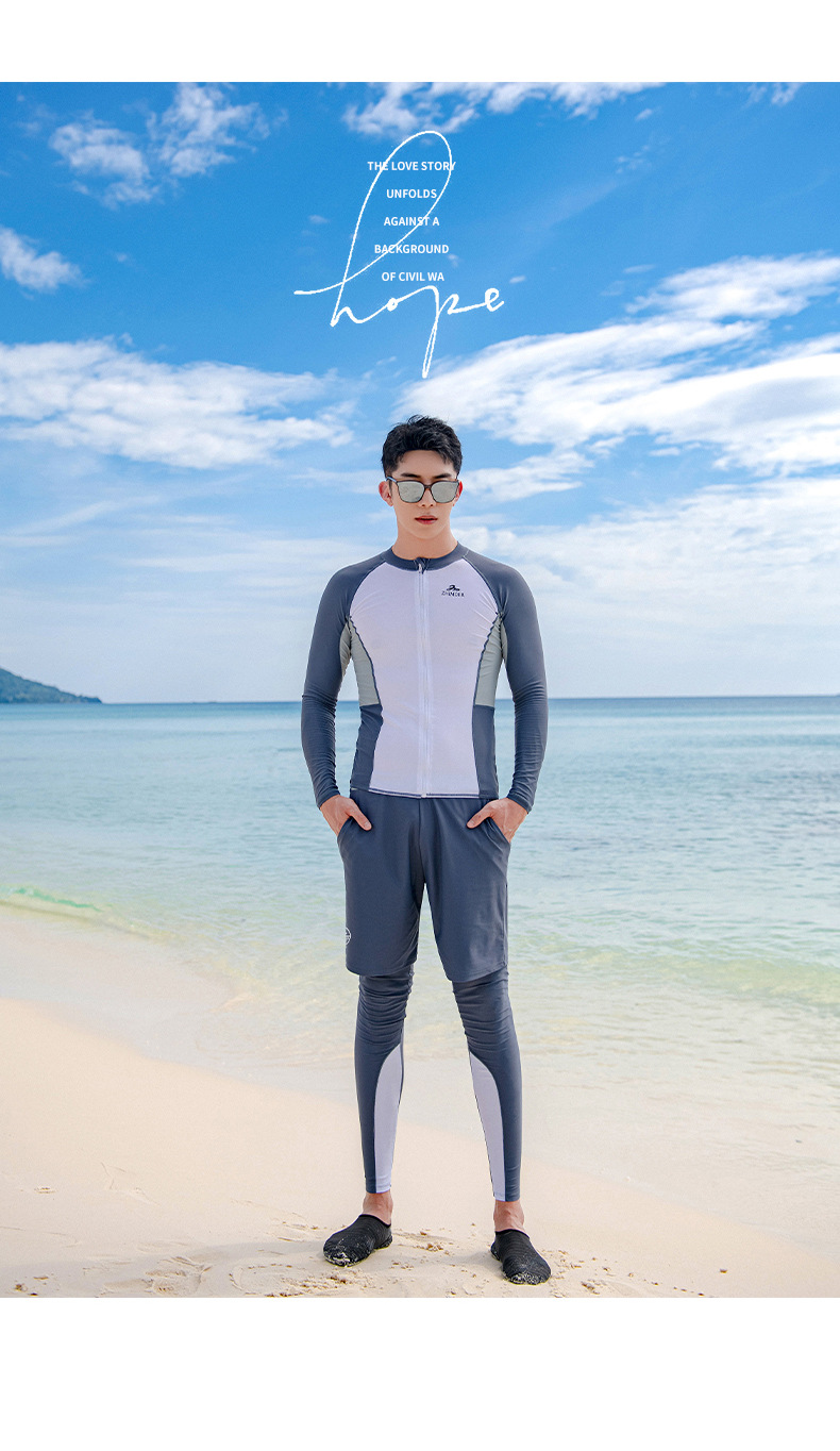 运动户外-男分体长袖泳衣大码浮潜服速干温泉冲浪水母衣沙滩泳装