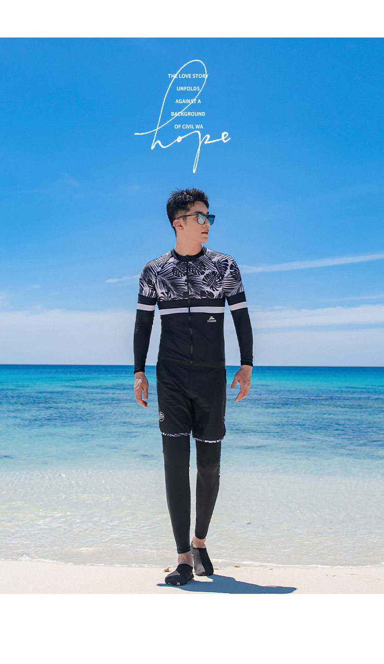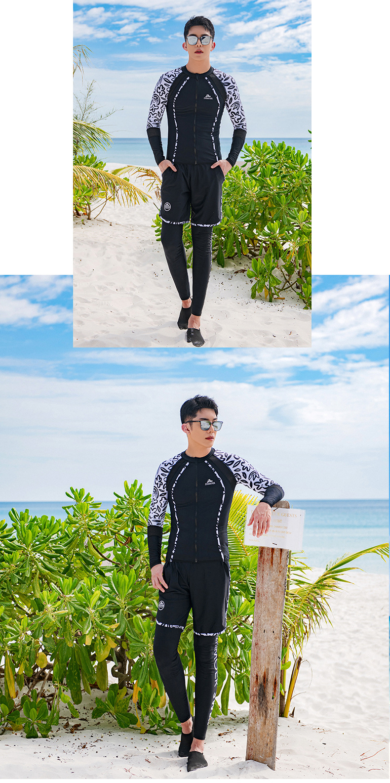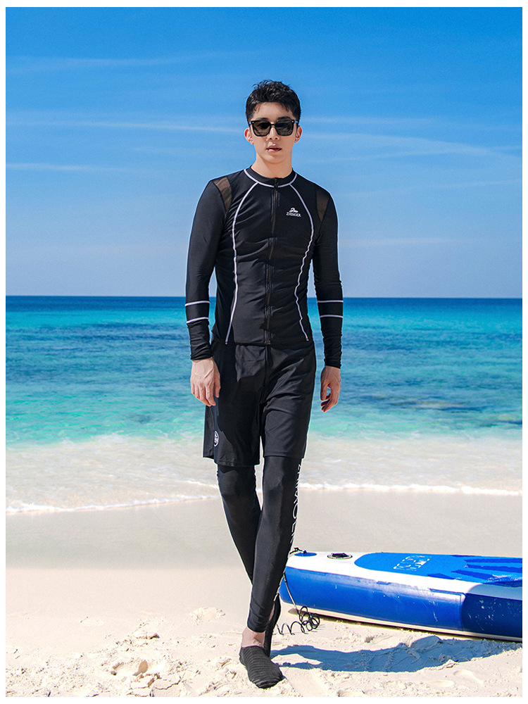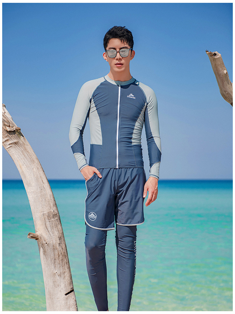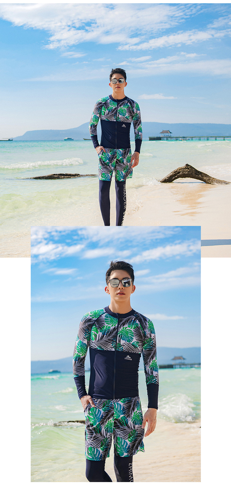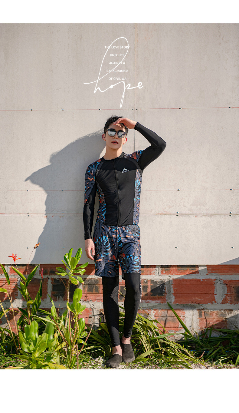 运动户外-男分体长袖泳衣大码浮潜服速干温泉冲浪水母衣沙滩泳装