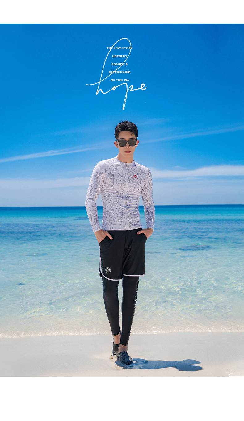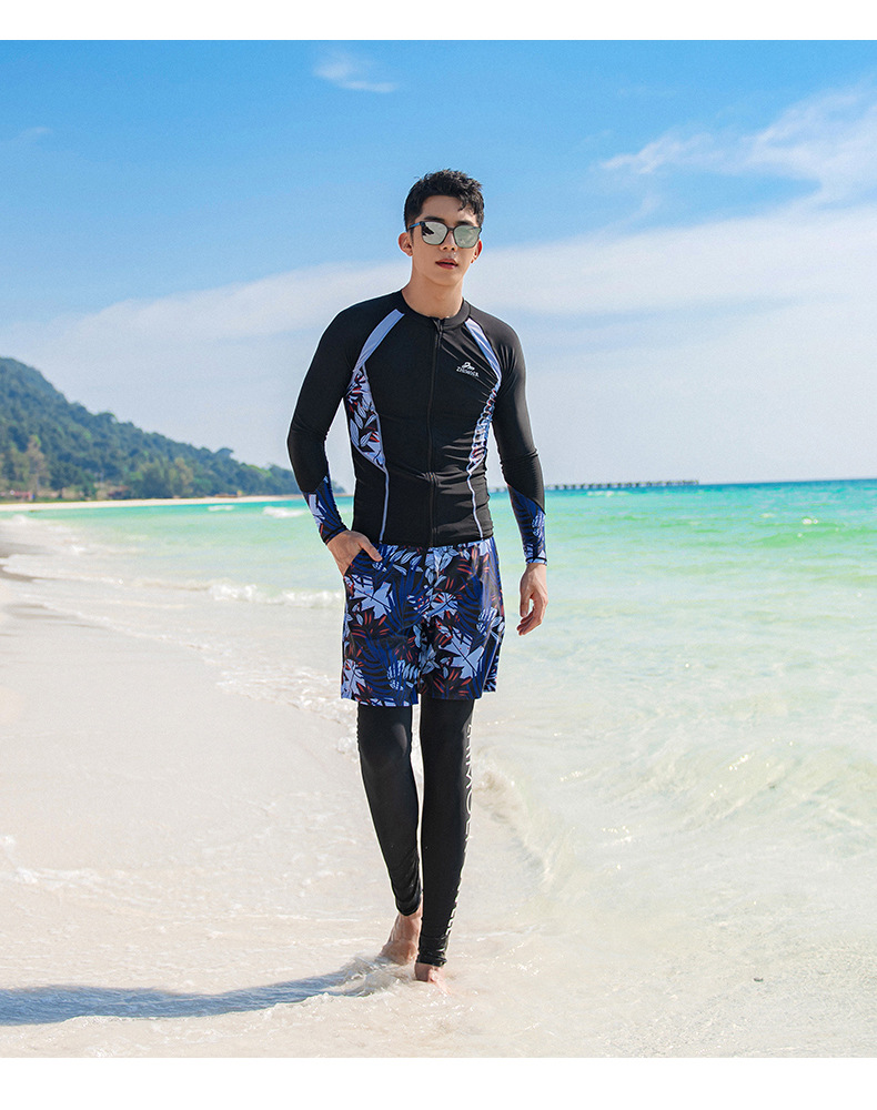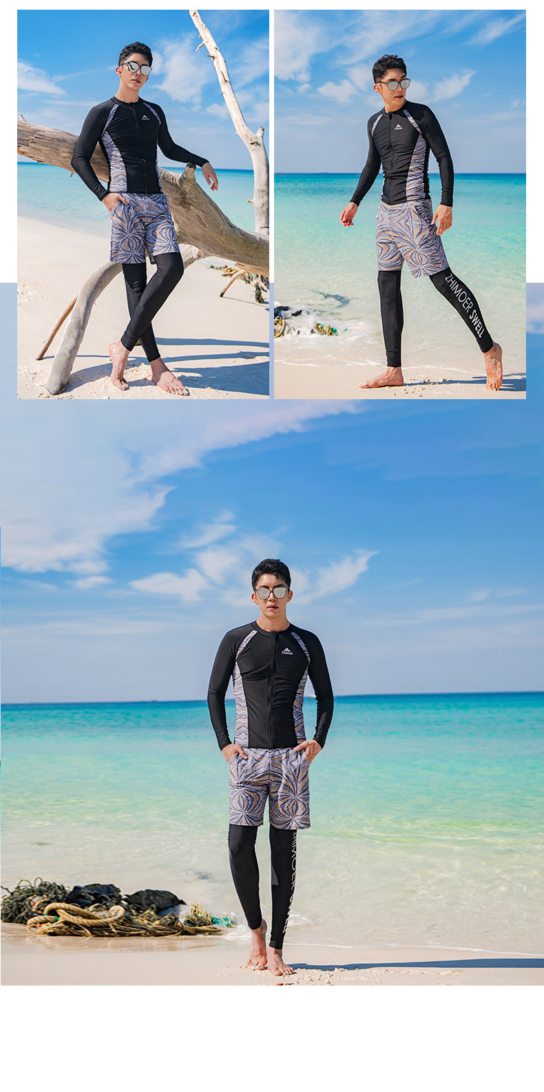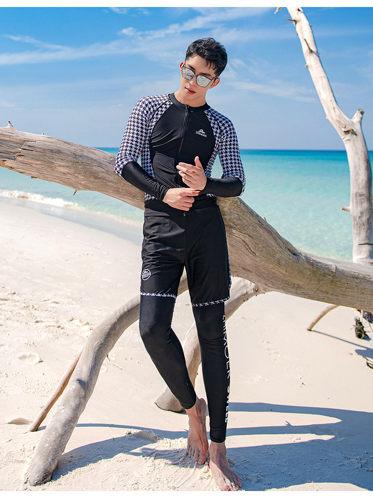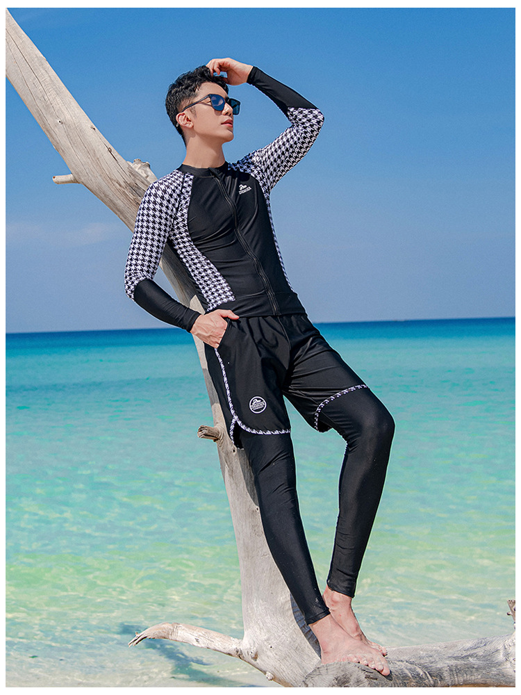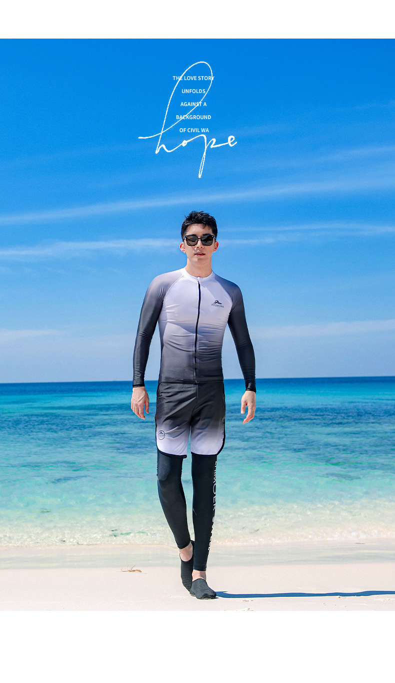 运动户外-男分体长袖泳衣大码浮潜服速干温泉冲浪水母衣沙滩泳装