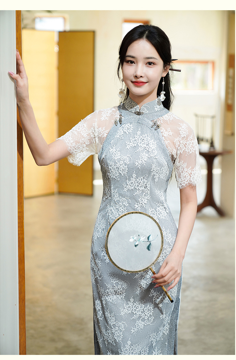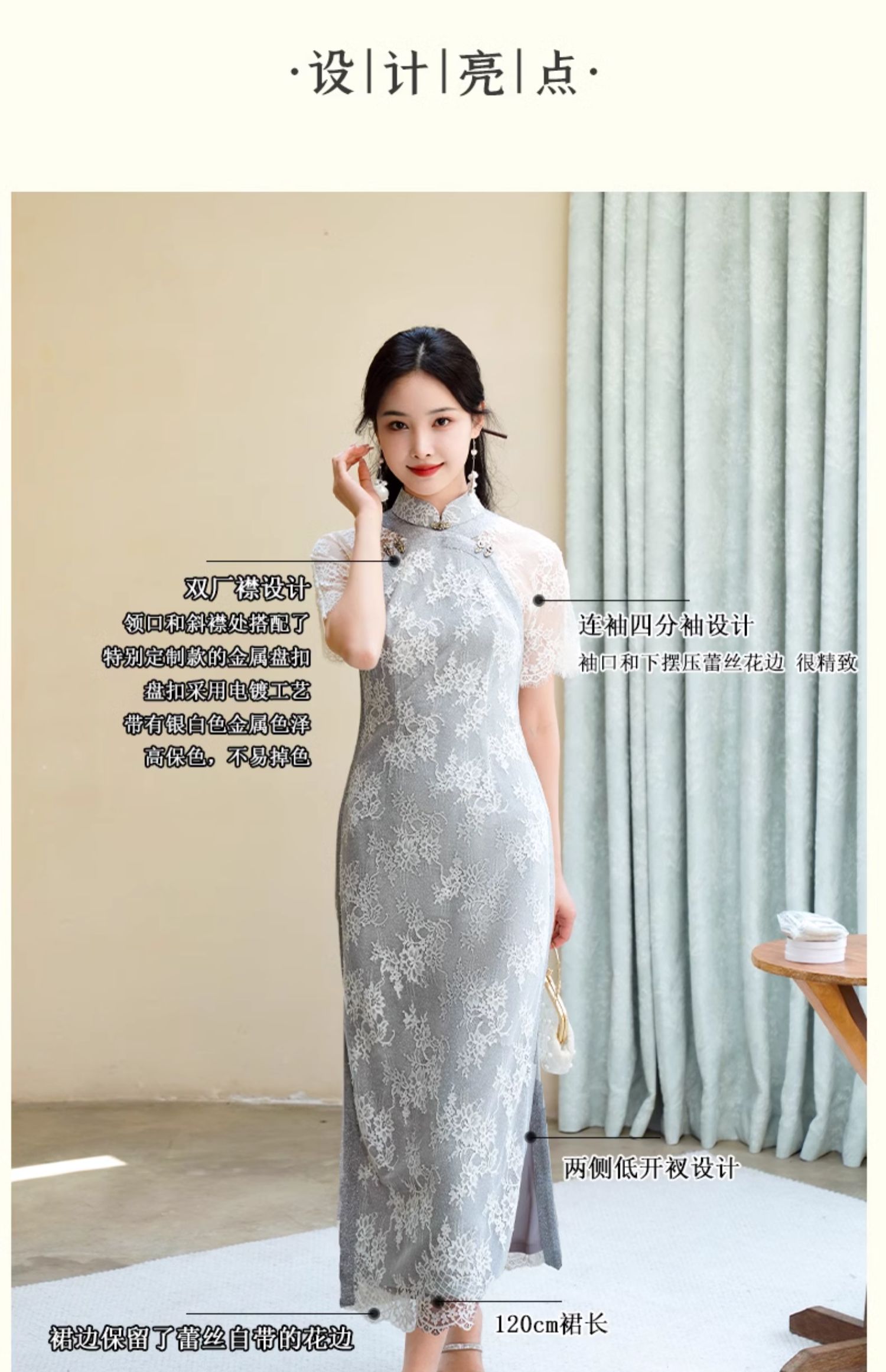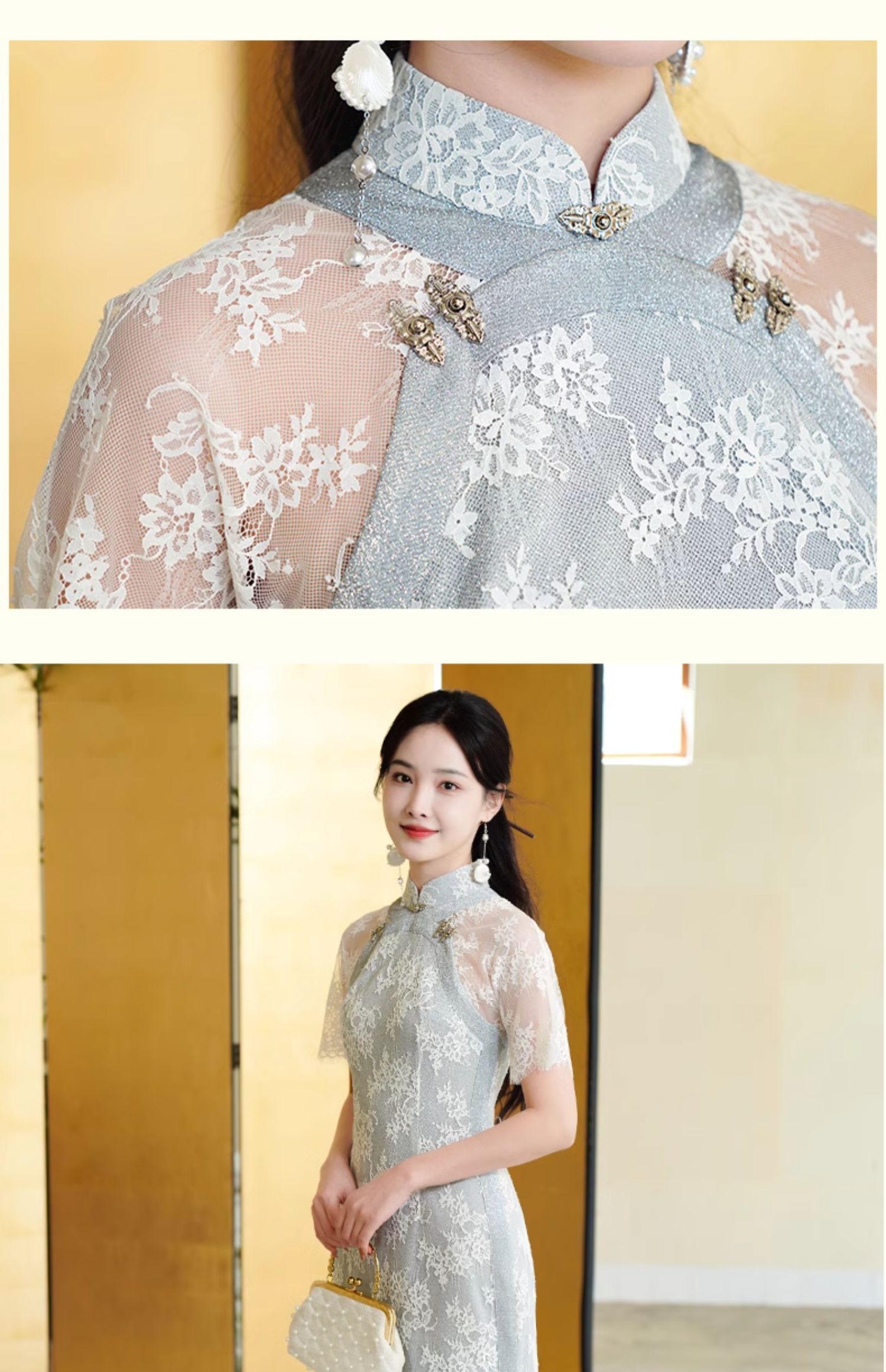 上海逸红颜莹烁2025年夏季新款骨线蕾丝朱珠同款轻奢定制旗袍礼服