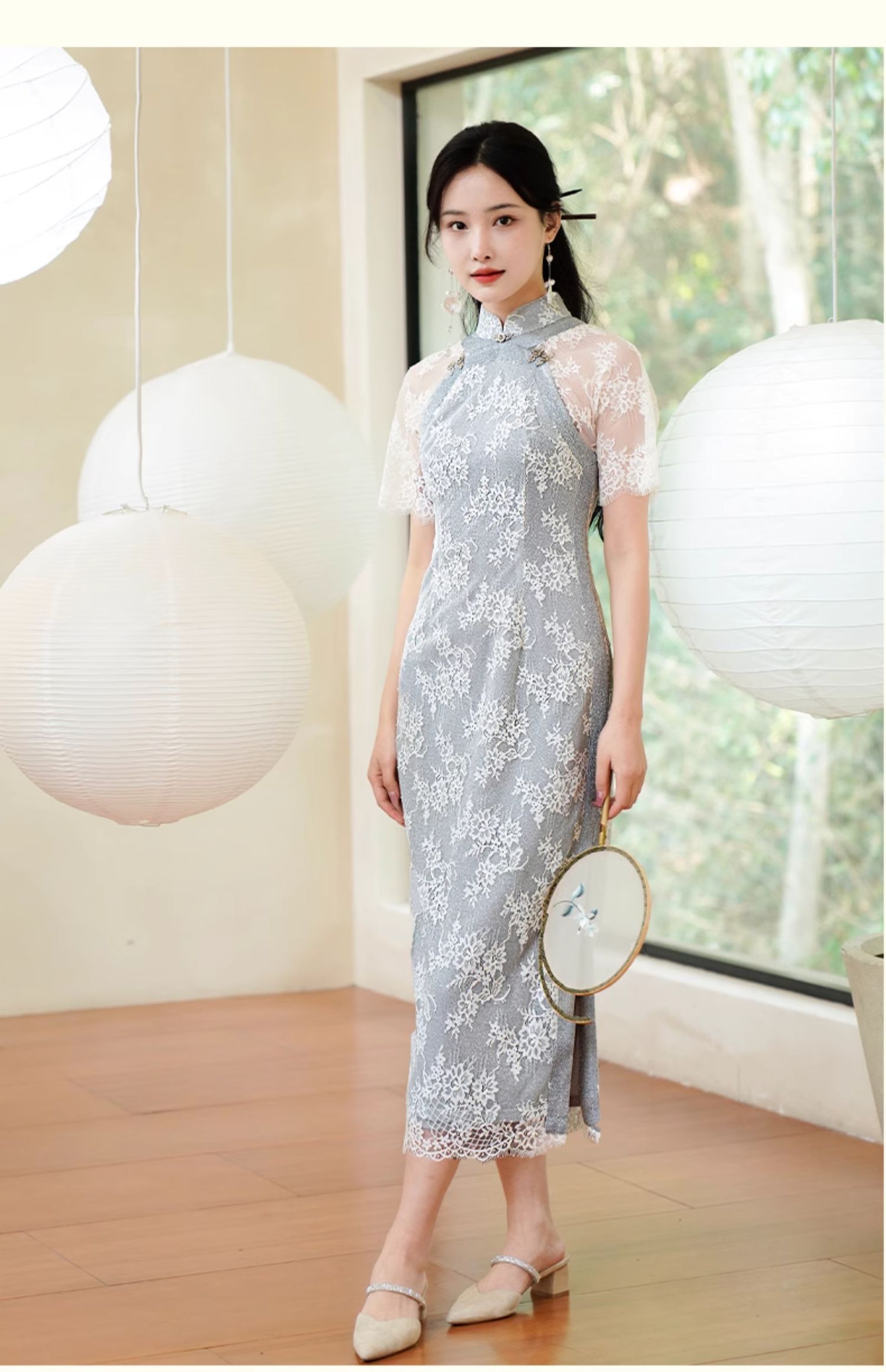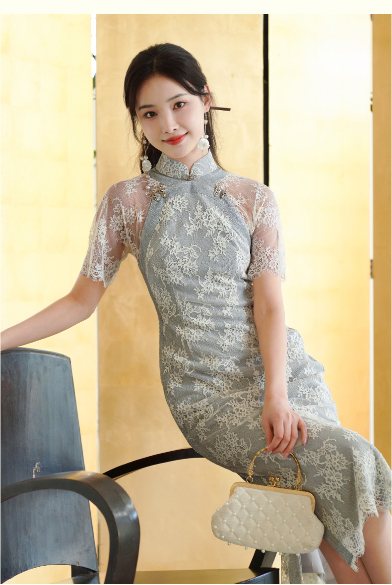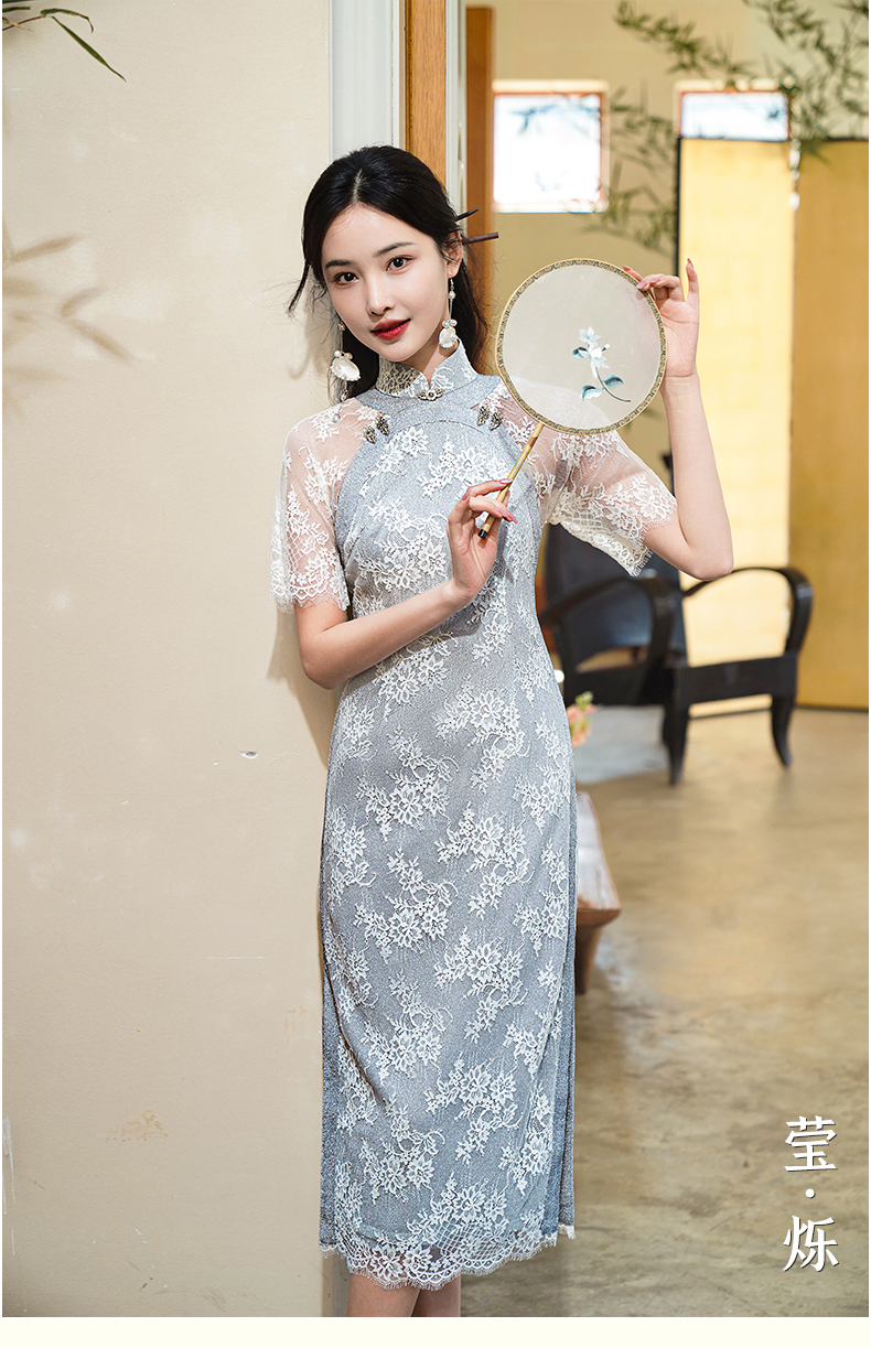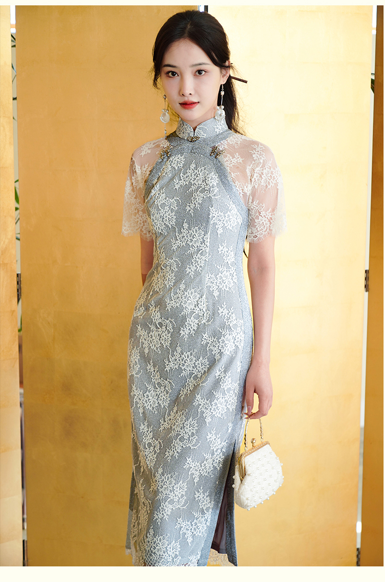 上海逸红颜莹烁2025年夏季新款骨线蕾丝朱珠同款轻奢定制旗袍礼服